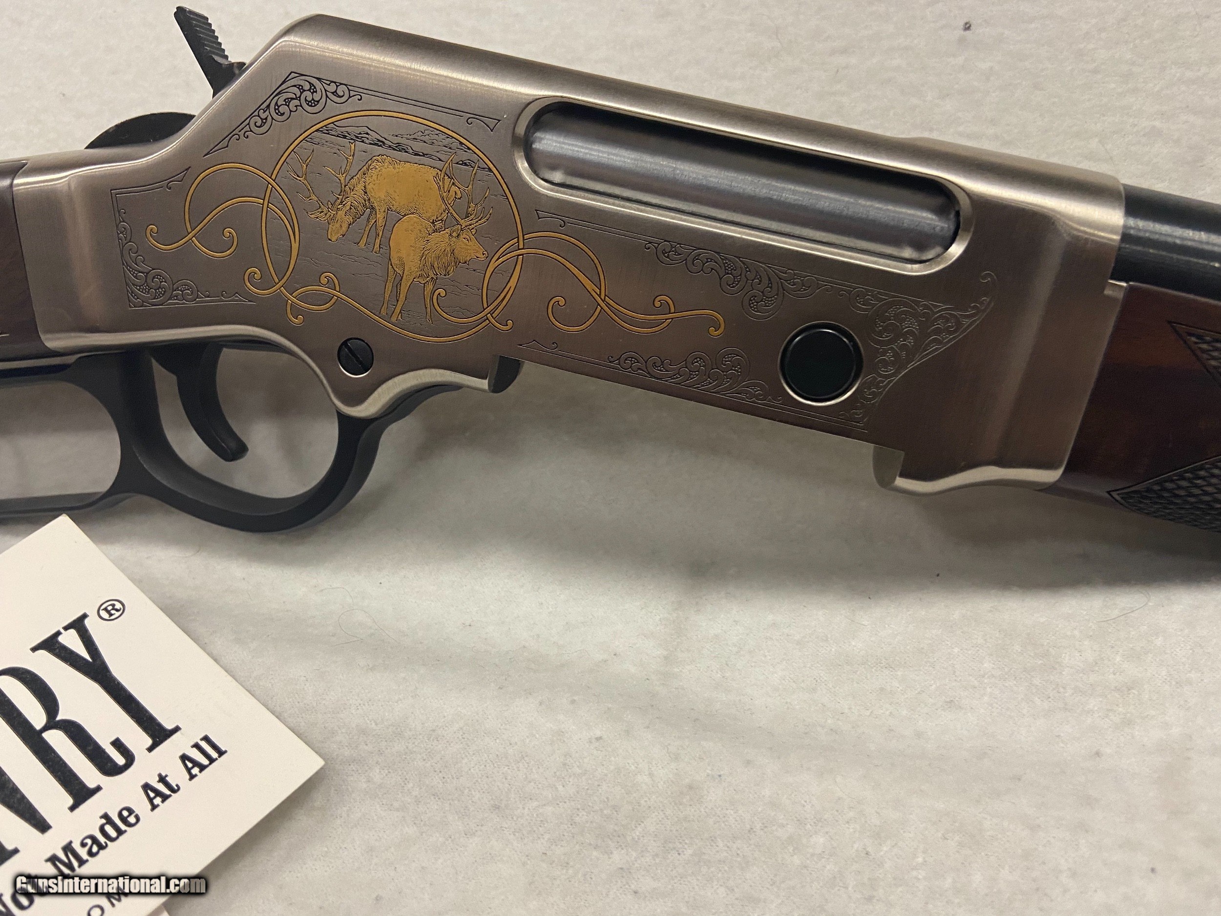 Description: This is a new Henry Wildlife Longranger Deluxe in 308 winchester. The rifle has a 20" barrel and drilled for a optic. The wildlife scene has a elk and 24k good inlay. Shipping is $40.00. Only FSFA aka The Gun Shop! 302-322-1126 SOLD Rifle Caliber: .308 Winchester Manufacturer: Henry Model: Longranger Wildlife Deluxe Barrel Length: 20” Condition: New |