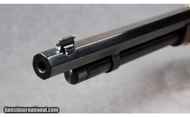 Description: SOLD Caliber Info: .357 Magnum Metal Condition: Very minor handling marks Wood Condition: Very minor handling marks Bore Condition: Bright with sharp lands Barrels: 16 1/2" Octagon Stock: The sraight-grip stock and forearm are crafted of select American walnut accented with a brass barrel band Stock Dimensions: 14 1/2" LOP Butt Pad: Brass buttplate Weight: 7 Lbs. 12 Oz. Sights: Semi-buckhorn rear sight with a reversible white diamond insert and a brass beaded front-sight. Extras: Box, papers. Item Location: Billings, MT |