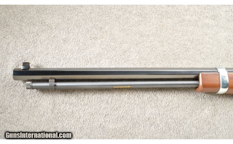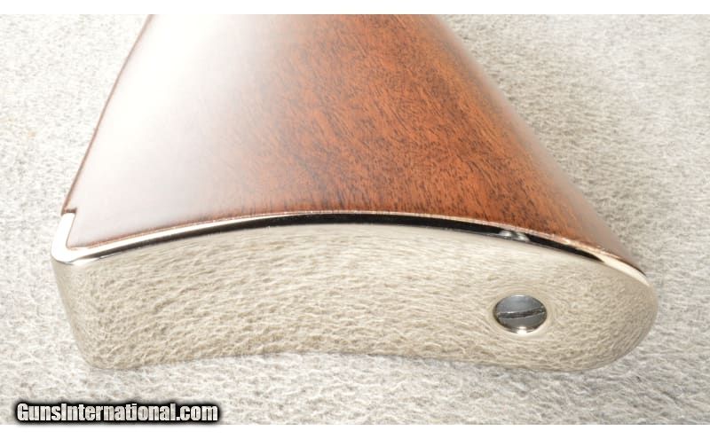 Description: This Henry Model H004S Silver Boy is a lever action rifle made for the Rocky Mountain Elk Foundation. It has a 20" octagon barrel, a polished silver engraved receiver with the right side of receiver marked "RMEF/ Life Member". The front sight is a serrated brass bead blade dovetailed to the barrel. The rear sight is a buckhorn elevator sight that is dovetailed and screw set to the barrel. The stocks are two-piece walnut with straight grip, straight comb, with a polished silver buttplate and barrel band. This gun appears unused and comes in the matching factory box with papers. .22 Short/Long/Long Rifle SOLD Chambers: Lever action. Metal Condition: As new. Wood Condition: As new. Bore Condition: As new. Barrels: 20" barrel. Triggers: Single. Stock Dimensions: LOP Fore End: Smooth. Butt Pad: Metal. Sights: Adjustable. Chokes: LOP 14". Item Location: Owatonna, MN |
