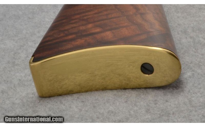 Description: Henrys Big Boy Deluxe is crafted with American walnut stock. Its solid brass receiver and barrel band feature graceful elegant scrollwork inspired by the famed 19th-century engraver Louis Nimschke. The traditional 20" octagonal barrel is outfitted with classic fully adjustable semi-buckhorn rear sights with a reversible white diamond insert and a brass beaded front sight. Production of this rifle will be limited to just 1,000 units of each caliber. .44 Remington Magnum SOLD Chambers: Tubular Magazine fed Lever action. Metal Condition: May have minor handling or display marks. Wood Condition: May have minor handling or display marks. Barrels: 20 Inch. Triggers: Single. Stock Dimensions: LOP 14 1/4 Inches. Fore End: Uncheckered nicely figured walnut. Butt Pad: Brass. Weight: 7 lb 15 Oz Sights: Rear Buckhorn Front Bead. Drilled and tapped for scope mounts. Item Location: Anchorage, AK |