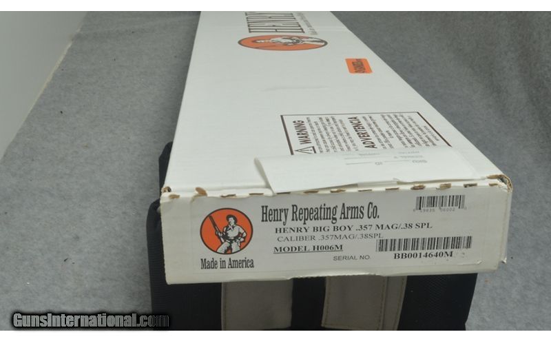 Description: Henry Big Boy model H006M, chambered in .357 mag/ .38 spec. Overall condition is new in box, never fired. Gun came from a customers collection. Serial # BB0014640M. manufactured 20211 SOLD Chambers: .357 Mag/ .38 Spec. Metal Condition: Excellent Wood Condition: Excellent Bore Condition: Excellent Barrels: 20 Stock Dimensions: LOP 14.5 Fore End: Wood Butt Pad: Metal Weight: 7 LB 14 OZ Item Location: Sun Prairie, WI |