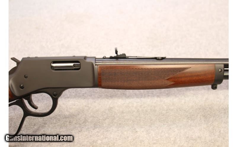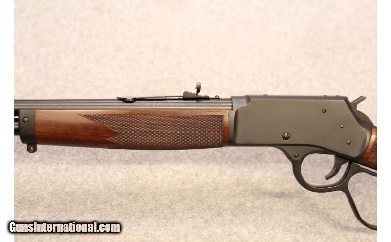 Description: This Henry Model H012M chambered in .357 Mag features, blue finish, iron sights, tapped receiver, enlarger lever, rubber recoil pad, and hardwood checkered furniture. .357 Mag SOLD Metal Condition: Excellent Wood Condition: Excellent Bore Condition: Bright Barrels: 16.5 Weight: 6.6 lbs. Item Location: Hoffman Estates, IL |