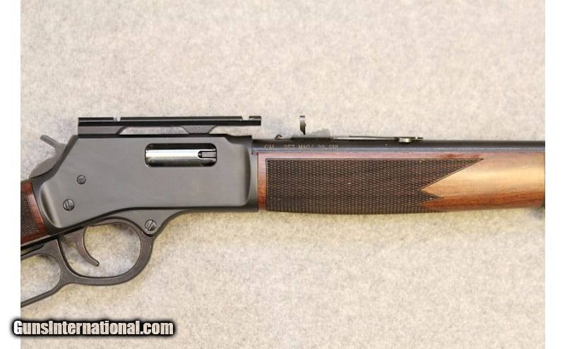 Description: This Henry Model H012M chambered in .357 Mag is in great shape. The finish has little to no wear with a bright bore, and the wood furniture has no cracks. .357 Mag Metal Condition: Great Wood Condition: Great Bore Condition: Bright Barrels: 20 Weight: 7.1 lbs. Item Location: Hoffman Estates, IL Price: $659.99 Contact Seller |