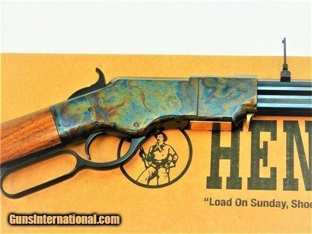 Description: Manufacturer: Henry Repeating Arms Co. Model: New Original Henry Iron-Framed SKU: H011IF Action: Toggle Link Lever Action Caliber: .44-40 WCF Capacity: 13 Rounds Barrel Length: 24.5" Octagonal Blued Steel Rate of Twist: 1:36" Receiver: Color Case Hardened Steel Overall Length: 43" Stock: Fancy American Walnut Buttstock with Color Case Hardened Buttplate Length of Pull: 14" Sights: Folding Ladder Rear, Blade Front Weight: 8.62 lbs All items are factory new in box unless otherwise stated. Based on the information available to us, the above specifications describe this item to the best of our knowledge. For further information, please contact or visit the manufacturer's . SOLD |