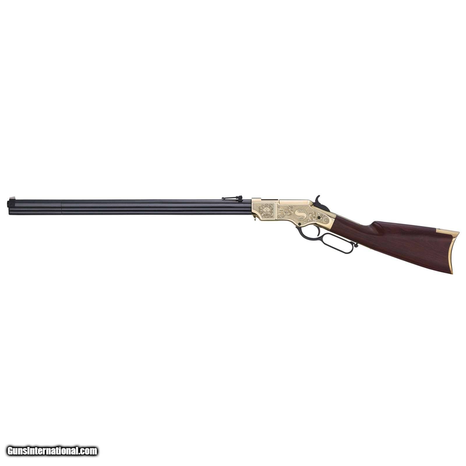 Description: Guns Listing ID: prod254185 Henry Repeating Arms Original Deluxe Lever Rifle, .44-40 Winchester, 24.5\" Octagon Barrel, Rosewood Stock, Engraved Receiver, Folding Ladder Rear/Blade Front Sight, 13 Rounds SOLD Manufacturer: HENRY Model: ORIGINAL DELUXE Caliber Info: .44-40 WIN Condition: new Barrels: 24.5 BARREL Finish: BRASS |