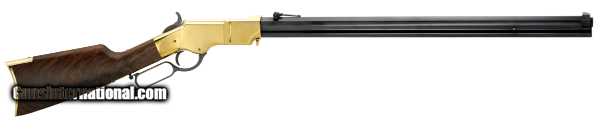 Description: Guns Listing ID: 50759 The Original Henry is a reproduction of Benjamin Tyler Henry‚‚s original lever action breech loading repeating rifle. Known for its role in the Civil War and use on the American frontier, the Original Henry features an American walnut stock with brass buttplate, hardened brass receiver and octagonal blued steel 24.5\" barrel. This rifle additionally sports folding ladder rear and blade front sights half-cock safety hammer notch and tubular magazine. Details Action Type Lever Toggle Link System - Caliber 45 COLT - Capacity 13 rounds - Length 43\" - Barrel Length 24.5\" - Weight 9 lbs. - Stock Fancy American Walnut Buttstock with Hardened Brass Buttplate - Sights Folding Ladder Rear Blade Front - Finish Hardened Brass Receive SOLD Manufacturer: HENRY Model: ORIGINAL HENRY Caliber Info: .45 LC Condition: new Barrels: 24.5" barrel Finish: BLUED |
