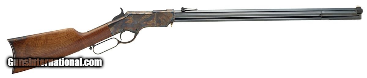 Description: Guns Listing ID: 294828 The iron-framed 1860 Henry rifle was manufactured in less than 400 units, but this Iron-Framed Original (actually steel-framed) makes it possible to acquire your own example of this short-lived piece of history. The Iron-Framed Henry Original is true to Henry‚‚s 1860 patterns and patents, and virtually identical aside from concessions necessary to adapt to the .44-40 centerfire rounds that replaced the long-obsolete rimfires. This rifle uses a thoroughly modern steel receiver with a striking color case hardened finish and a matching, period-correct, crescent buttplate. It is fitted with a one-piece blued steel octagonal barrel and magazine, fancy grade American Walnut stock, a classic folding ladder rear sight and blade front, traditional half-cock safety hammer notch, and no modernized manual safety SOLD Manufacturer: HENRY Model: ORIGINAL IRON FRAME Caliber Info: .44-40 WIN Condition: new Barrels: 24.5 BARREL |