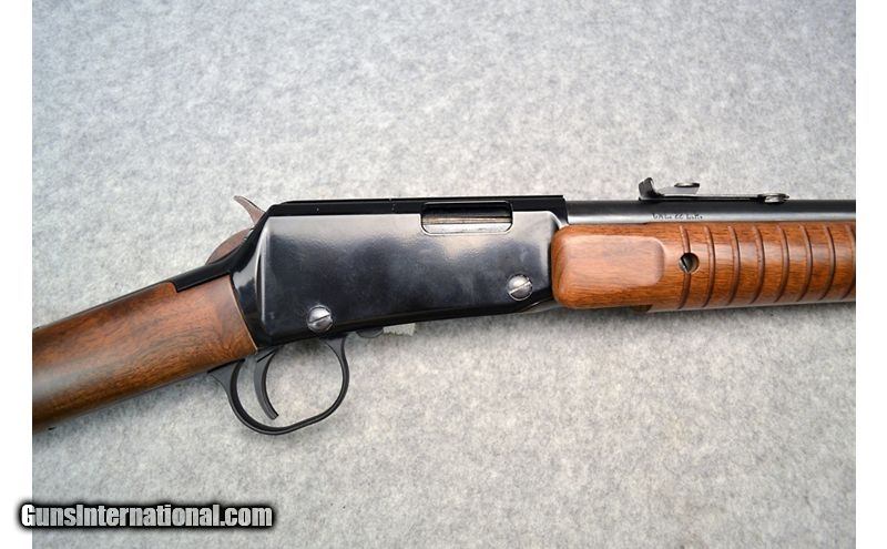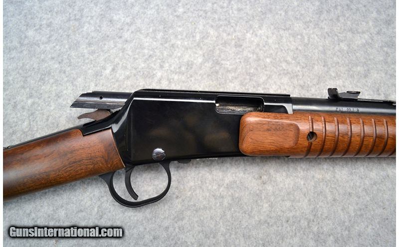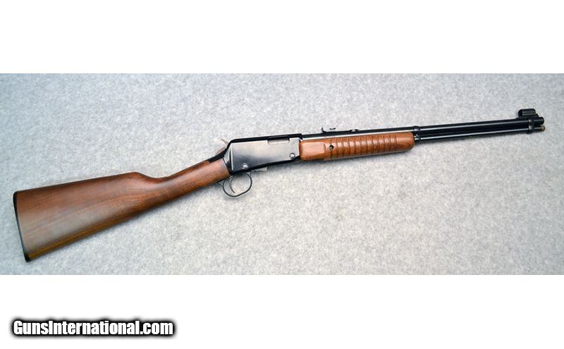 Description: The Henry Pump Action .22LR is one gun that is built for fun. It sports a grooved receiver for mounting a scope, and Marbles semi-buckhorn fully adjustable rear sights with standard 3/8" dovetail slots enabling you to change sights if you choose to do so. It also comes with a hooded front sight. Beautifully finished American walnut is used for the stock. The .22LR version can hold 15 rounds of .22LR. If you must extract an unfired cartridge from the chamber, we have included a grooved release button at the right front of the trigger guard. When pressed back, the lever unlocks the forend allowing it to be retracted to eject the unfired round. This gun is in excellent overall condition. Includes factory box. .22 Long Rifle SOLD Barrels: 18" with 1:16 Twist Weight: 6 lbs. Sights: Marbles Semi-Buckhorn Adjustable Rear and Fix Hooded Blade Front Item Location: christiana |