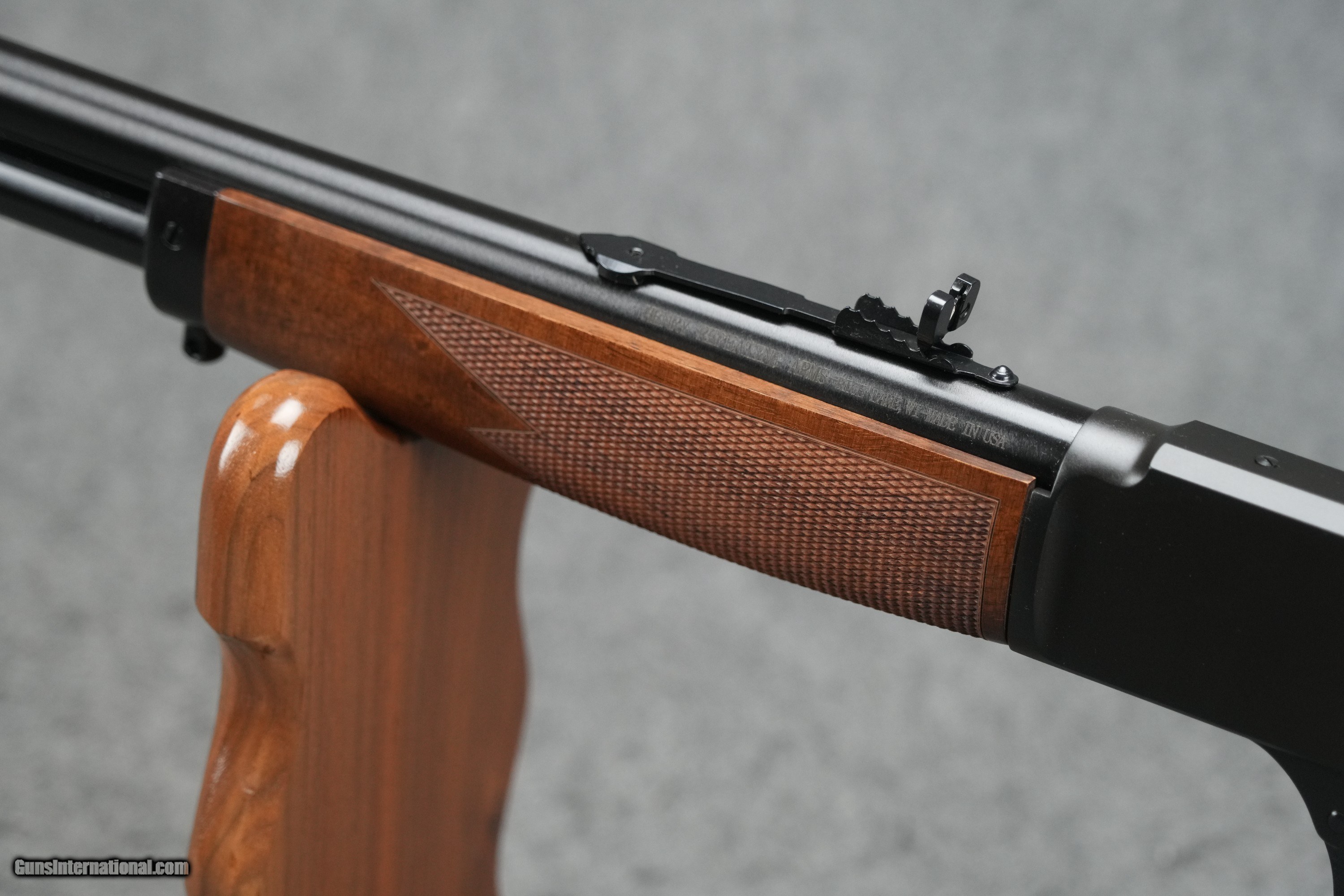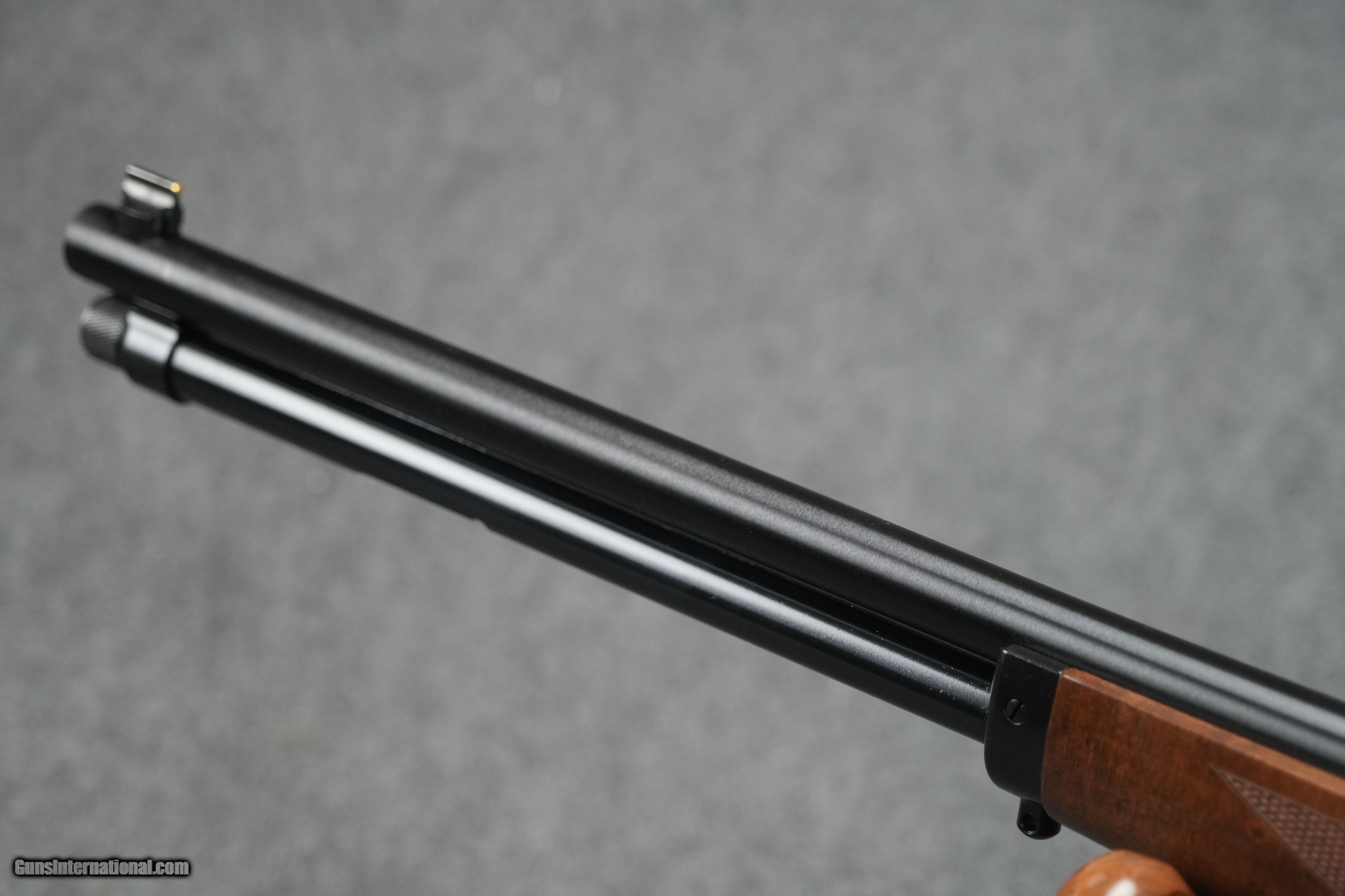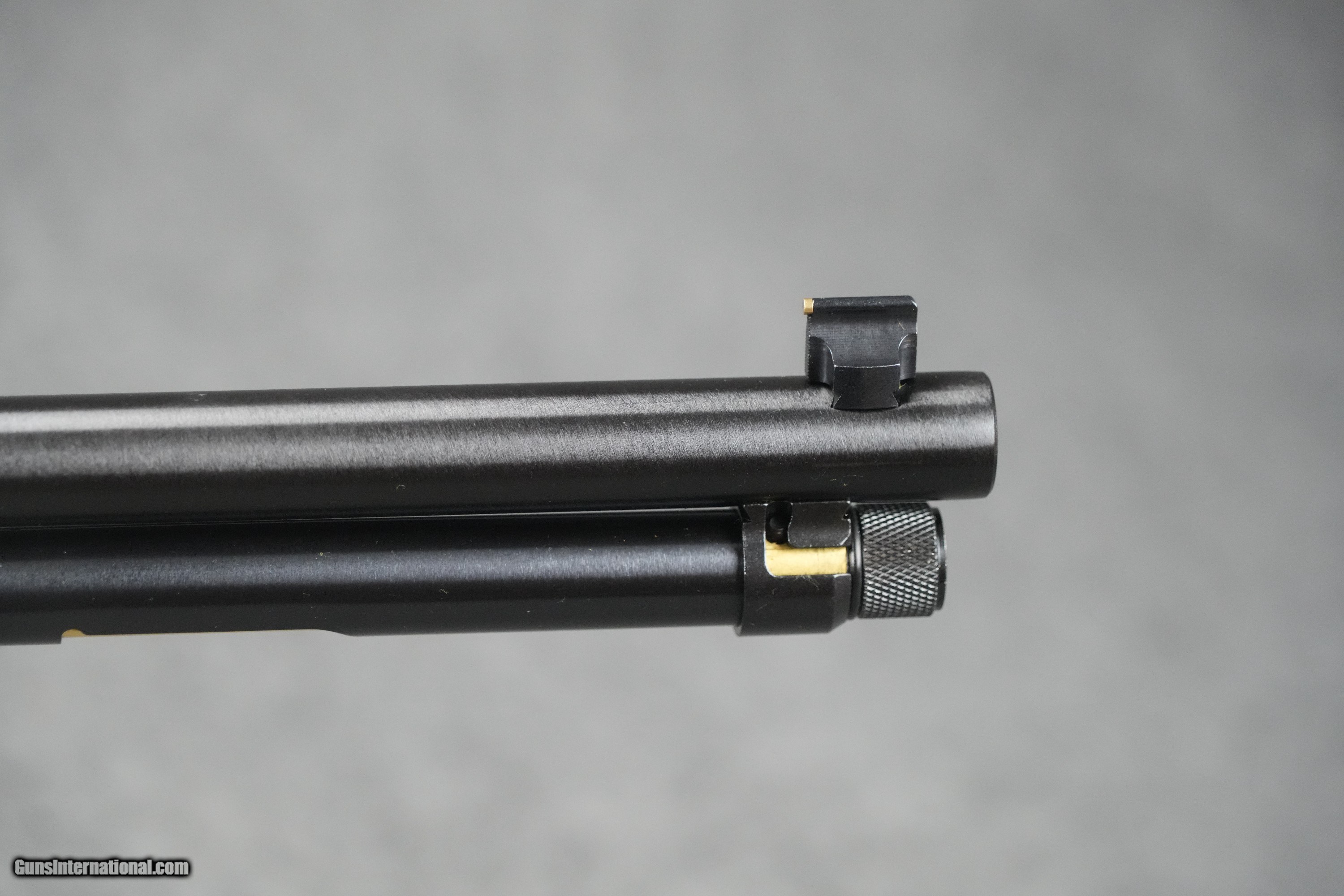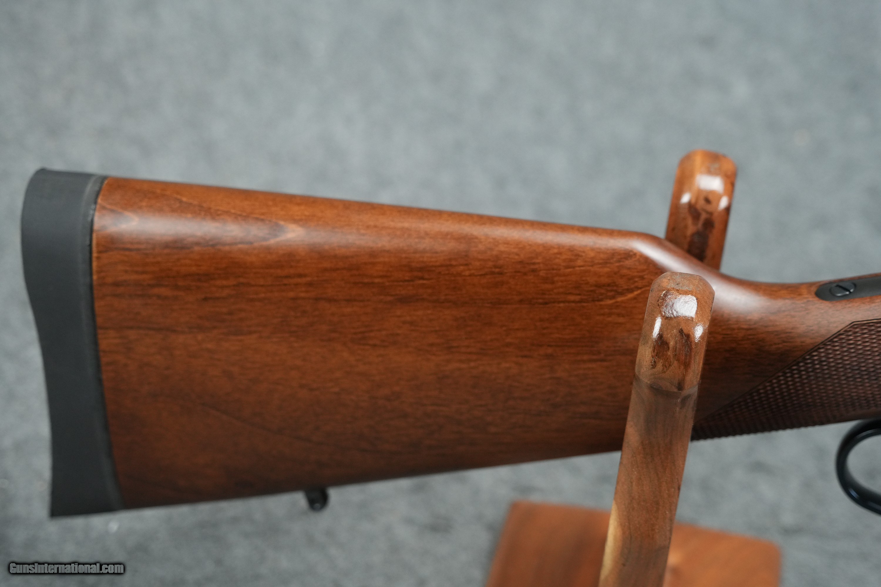 Description: H012GCL Action Type Lever Action Caliber .45 Colt Capacity 10 Rounds Additional Specifications Barrel Length20" Barrel TypeRound Blued Steel Rate of Twist1:16 Overall Length37.5" Weight7.00 lbs. Receiver FinishBlued Steel Rear SightFully Adj. Semi-Buckhorn w/ Diamond Insert Front SightBrass Bead ScopeabilityDrilled and Tapped Scope Mount TypeBB-RSM Stock MaterialAmerican Walnut Buttplate/PadBlack Solid Rubber Recoil Pad Length of Pull14" SafetyTransfer Bar Embellishments/ExtrasSwivel Studs, Side Gate, Large Loop Lever SOLD Rifle Caliber: .45 Colt Manufacturer: Henry Repeating Arms Model: Big Boy Steel Side Gate Barrel Length: 20" Barrel Condition: BRAND NEW |