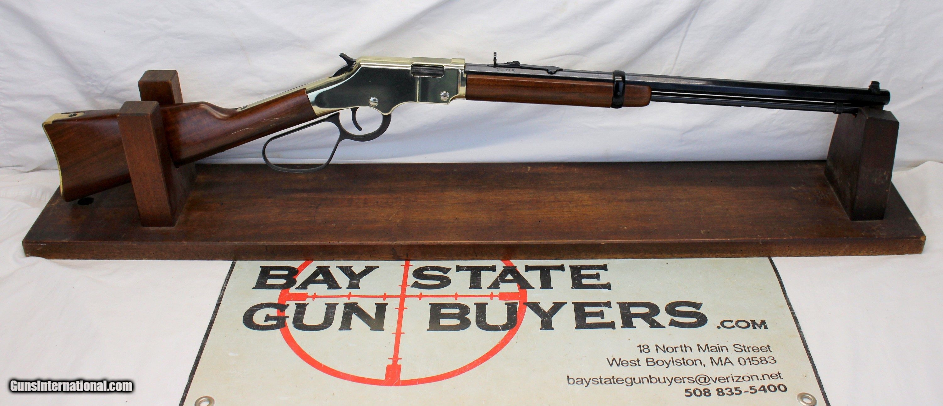 Description: We are offering for sale a Henry Repeating Arms GOLDEN BOY Model H004 lever action rifle chambered in .22 S L LR calibers. This is a classic style LEVER ACTION rifle with brass receiver, large loop lever and octagon barrel. 20" octagon barrel is very good with nice blued finish. The bore is bright with crisp rifling. The receiver is good with scattered handling marks. Lever action functions flawlessly. The original shoulder stock is good with a few scatered field marks, scratches. Forend is very good with light wear. Brass buttplate good with light wear. NICE HENRY SHOOTER!! SHIPPING IS $34.95 USPS GROUND WITH INSURANCE **** PLEASE NOTE: WE ONLY ACCEPT MASTERCARD AND VISA AS PAYMENT OPTIONS (please note we charge a non-negotiable 3% CC fee) **** **** WE TAKE CREDIT CARD PAYMENT OVER THE PHONE. WE DO NOT TAKE PAYMENT THROUGH THIS **** PLEASE LOOK AT ALL PHOTOGRAPHS FOR CONDITION Please know the legality of any weapon in your state before . If a gun can’t be transferred to you we will charge a 15% re-stocking fee. We are in the shop MODAY, WEDNESDAY, THURSDAY, FRIDAY and SATURDAY 8am-4pm EST. We will be in touch within 24 hours of your purchase. Please be ready to provide CC information. Please have your FFL email a copy of their license to: . No Face To Face Transfers! Please note: Clicking "buy" does not guarantee that this gun is yours, However clicking “Buy” will reserve this gun for you, if it hasn’t been sold in store. We will try to do our best to remove the posts as efficiently as possible, but sometimes delays may ensue. “Buy” is your safest bet to reserve a gun. Also please add 6.25% MA state sales tax (if from MA) and 3% credit card shop courtesy fee for all out of state buyers Before calling with concerns read these conditions and meet them accordingly. SOLD |