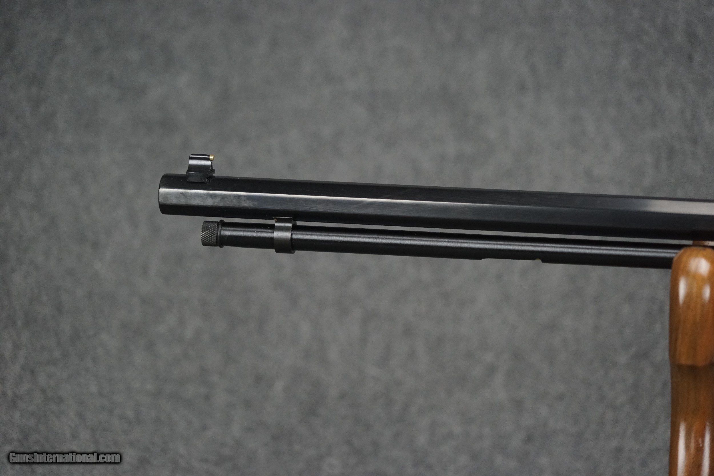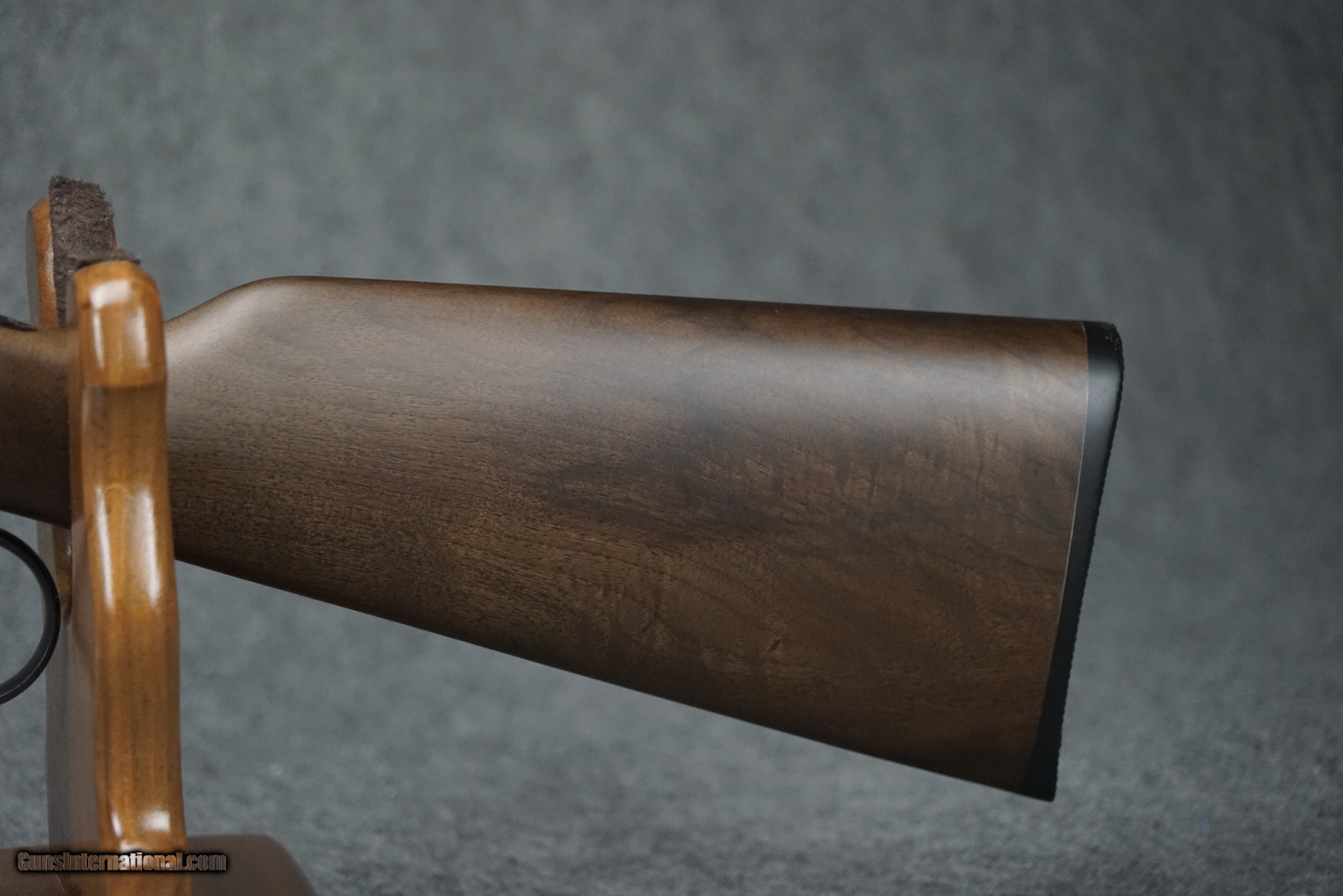 Description: Like stagecoaches, swinging saloon doors and Pony Express riders, there are many innovations of the Old West that have long faded from use and live on only in Western movies and history books. But there are still a few frontier staples that were so effective and ahead of their time that they remain in use today. Take, for instance, the intimidating octagonal barrels commonly found on the repeating rifles of that period. These heavy-duty workhorses sported added mass and extra weight to aid in heat absorption, making them the forerunners to the bull barrels used on modern target and varmint rifles. So as a tip of our Stetson in honor of this timeless barrel style, we replaced the standard round barrel normally used on our world-famous .22 LR and .22 Magnum rifles with a classic 20″ octagonal model, like those favored by the cowpunchers, lawmen, homesteaders and outlaws who blazed the trail westward across America. You can also opt for the 24″ barrel option to really tighten up those groups at the range. We rounded out this traditional look with an easy-to-adjust Marbles semi-buckhorn rear sight with a diamond insert and a highly visible brass beaded front sight seated in standard 3/8″ dovetail slots. A metal barrel band secures both the barrel and the high-capacity tubular magazine to the highgrade American walnut stock. If you prefer a more modern look, the receiver is grooved so you can top off any rifle in this line with your choice of scopes. Both the stock and forearm are crafted of the same richly grained hand-finished American walnut typically found on rifles costing up to three times as much. Barrel Length 20" Barrel Type Octagon Blued Steel Rate of Twist 1:16 Overall Length 38.5" Weight6.50 lbs. Receiver Finish Black Rear Sight Fully Adj. Semi-Buckhorn w/ Diamond Insert Front Sight Brass Bead Scopeability 3/8" Grooved Receiver Scope Mount Type Ringmounts for 3/8" Groove Stock Material American Walnut Length of Pull 14" Safety 1/4 Cock LARGE LOOP VERSION SOLD Rifle Caliber: .22 Long Rifle Manufacturer: Henry Repeating Arms Model: H001TL Frontier Barrel Length: 20" Barrel Condition: BRAND NEW |