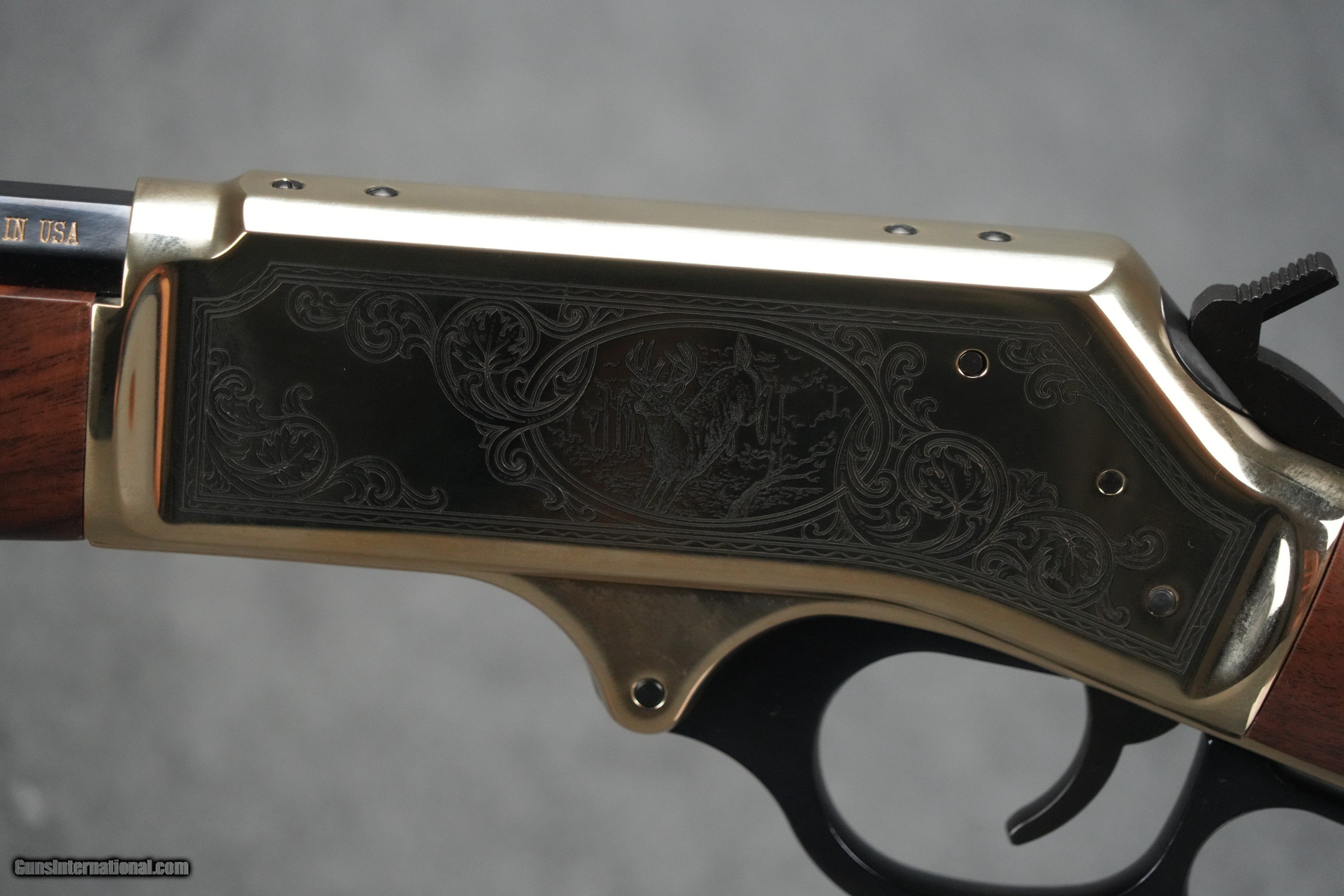 Description: *NOTE: The firearm pictured is the ACTUAL gun for sale! All images are of the ACTUAL item, unless specified otherwise. The item seen is the item you will receive. * Since the earliest days of American colonization, through the inevitable expansion of the Frontier driven westward by explorers, adventurers, and settlers, and on to modern times, the rifle has played a vital role in a part of life as old as mankind himself. Hunting to survive made it possible for Daniel Boone to become a legendary figure in blazing his Wilderness Road through the Cumberland Gap across the Appalachians into Kentucky in 1775, Lewis & Clark to travel 8,000 miles primarily on foot through unknown territories in 1804, for John Wesley Powell’s 1869 expedition mapping the Colorado River as the first non-natives to travel through the Grand Canyon, for the small homestead farmers of the great Oklahoma Land Rush of 1889 to establish and build on their claims, and for countless men to feed their families through the dark days of the Great Depression of the 1930s. Regardless of wealth or social status, hunting is an American tradition shared by all levels of society, and Henry Repeating Arms tips a hat to that tradition in these brass-framed, side-loading Wildlife editions. For today’s hunter who likes a campfire showpiece that still delivers in the woods, we offer a classic caliber in a highly polished hardened brass frame- the .30-30. The H009BGWL carries five of the time-proven mid-bore .30-30 rounds under its 20” octagon barrel. Combine the .30-30 caliber with our famously smooth action, high-polished metalwork, American walnut furniture, fully adjustable buckhorn/bead sights, drilled and tapped frame top for an optional scope, and highly engraved frames featuring American vine scroll and braided borders surrounding the portrait of a stately buck’s head on the right-side panel, with the same motif setting off a leaping buck on the left side, and you have a deer rifle that’ll turn heads anywhere. Barrel Length 20" Barrel Type Octagon Blued Steel Rate of Twist 1:12 Overall Length 39" Weight 8.30 lbs. Receiver Finish Polished Hardened Brass Rear Sight Fully Adj. Semi-Buckhorn w/ Diamond Insert Front Sight Brass Bead Scopeability Drilled and Tapped Scope Mount Type Weaver 63B Stock Material American Walnut Buttplate/Pad Brass Length of Pull 14" Safety Transfer Bar Best Uses Target/Hunting/Collector Embellishments/Extras Deer Receiver Engraving, Side Loading Gate SOLD Rifle Caliber: .30-30 Winchester Manufacturer: Henry Repeating Arms Model: Brass Wildlife Edition Barrel Length: 20" Barrel Condition: BRAND NEW |