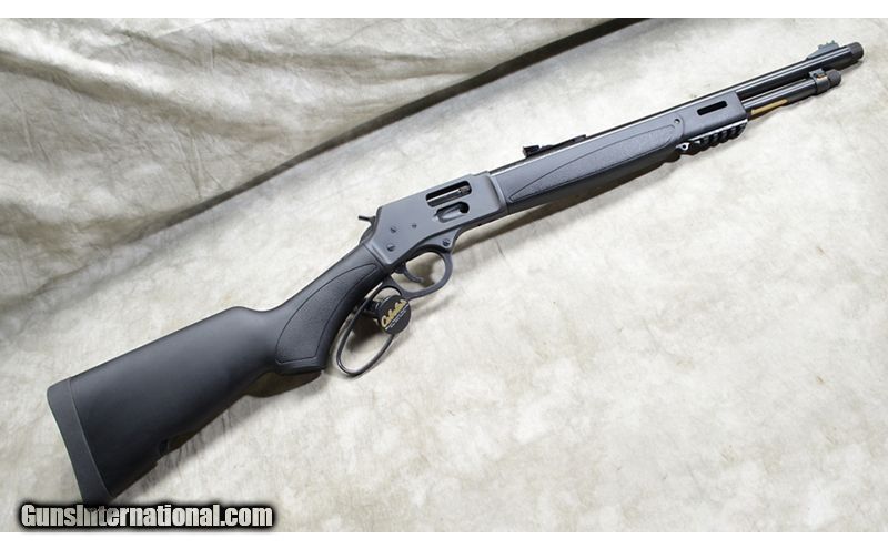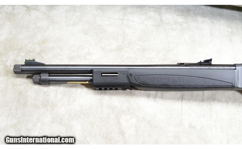 Description: Modern take on the traditional lever action featuring fiberoptic beads, black synthetic stock, under barrel rail for accessories and drilled and tapped for scope. The barrel is threaded for accessories as well. Loading through port in the side of the receiver and through a port in the tube. Appears unfired. .44 Magnum SOLD Chambers: 7 round capacity Metal Condition: As new in box. Wood Condition: As new in box. Bore Condition: Shiny and bright. Barrels: 17-1/2 inch with threaded muzzle. Triggers: Factory trigger. Stock Dimensions: 14-1/4 inch. Fore End: Black synthetic. Butt Pad: Thick rubber pad. Weight: 6 lb - 15 oz Sights: Post and notch with fiberoptic dots. Item Location: Rogers |