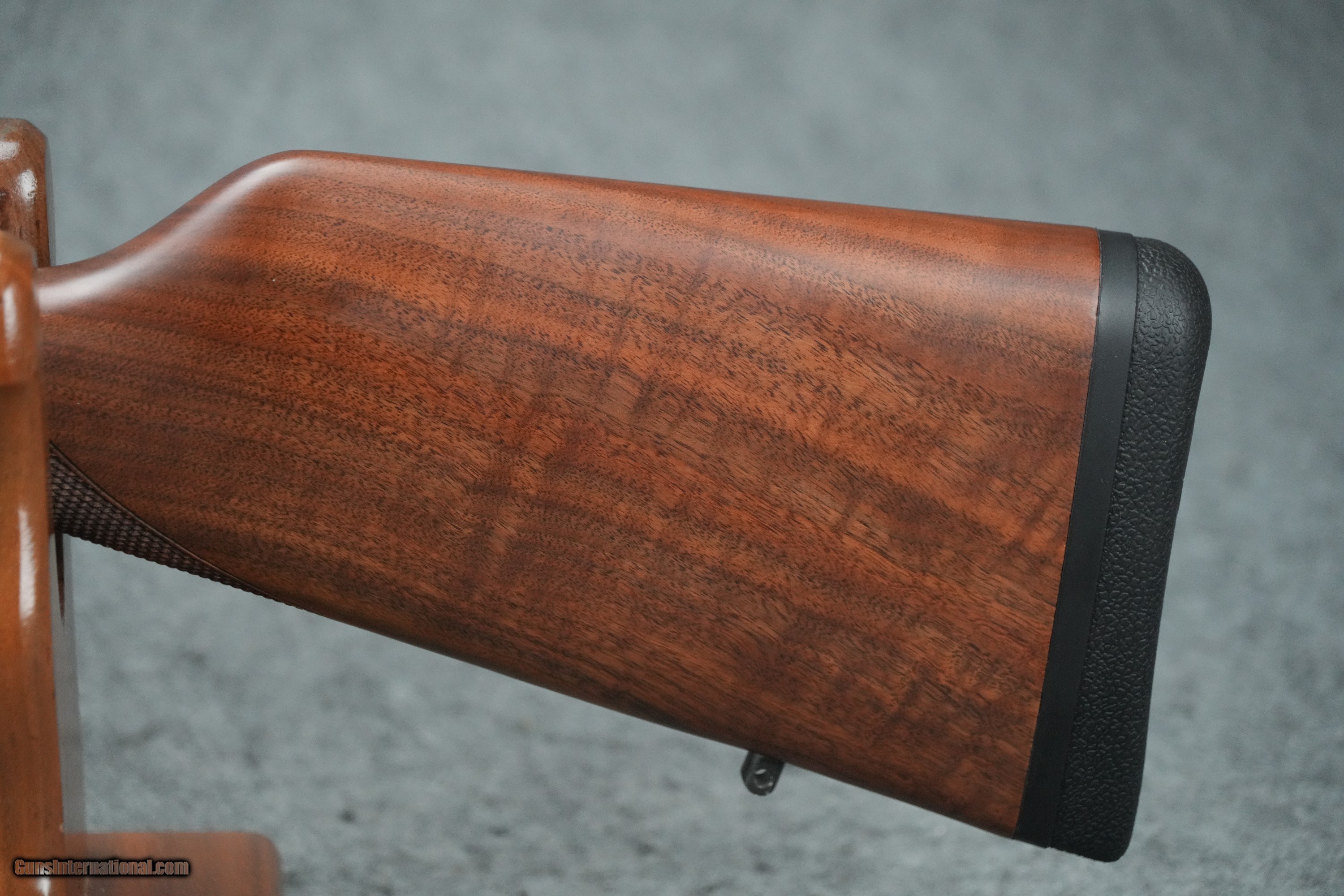 Description: Henry developed the Henry Long Ranger to stretch the envelope in a design that takes the hunt to the fur in popular calibers at longer distances. The Long Ranger retains traditional lever action operation with an exposed hammer and forged steel lever but updates it with a geared action. A machined and chromed steel bolt with a 6-lug rotary head is driven into a rear extension of the barrel for a strong and consistent lock-up from shot to shot to shot. With side ejection and a lightweight aerospace alloy receiver, the top is drilled and tapped for scope mounts, and the bottom features a steel-bodied flush-fit detachable 4-round in .308 magazine with a steel floorplate and a blackened steel release button on the right side of the receiver. All behind a 20” round and blued free-floated sporter barrel, and supported by a two-piece oil-finished American Walnut stock with precise laser-cut checkering, sling swivel studs, and a solid black rubber recoil pad for both recoil control and non-slip anchoring on the shoulder for the rapid follow-up shots where lever actions excel. Like our other centerfires, the Long Ranger carries on the in-hammer sliding transfer bar as a safety, instead of a manual safety button or slider that can be hard to operate with gloves. Accurate? You bet. This is the Best-In-Class lever gun that leaves many bolt actions in the dust. If you’ve ever passed up a lever in favor of a bolt because of accuracy doubts, then doubt no longer. Henry didn’t pick the Long Ranger name out of a hat; if you need a tight-shooter that’ll reach out there, this rifle delivers. From coyote to whitetail to bear, the new Long Ranger is a logical evolution in lever action technology as America’s contribution to classic firearms design, and it has you covered from hardwood forest to sagebrush flat in a trim, quick handling, and dependable 7-pound rifle you’ll be happy to reach for as you head out the door. We’ve upped our hunting ante, time for you to do the same? Barrel Length 20" Barrel Type Round Blued Steel Rate of Twist 1:10 Overall Length 40.5" Weight 7 lbs. Receiver Finish Hard Anodized Black Rear Sight Folding Fully Adjustable Front Sight Ramp w/ .062" Ivory Bead Scopeability Drilled and Tapped Scope Mount Type Weaver 63B Stock Material American Walnut Buttplate/Pad Black Solid Rubber Recoil Pad Length of Pull 14" Safety Transfer Bar Best Uses Target/Hunting/Large Game SOLD Rifle Caliber: .308 Winchester Manufacturer: Henry Repeating Arms Model: Long Ranger Barrel Length: 20" Barrel Condition: BRAND NEW |
