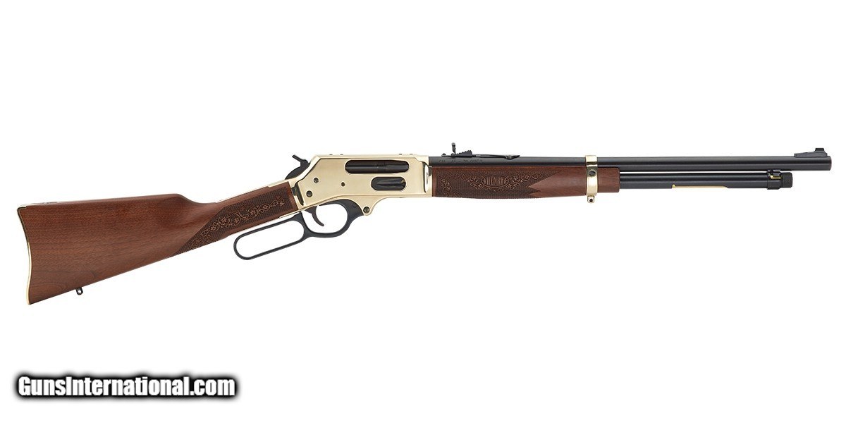 Description: NEW IN STOCK Henry Repeating Arms Side Gate Lever Action, 45-70 Government, 20" Brass Receiver, Walnut Stock, 4Rd, Fully Adjustable Semi-Buckhorn Sights H024-4570