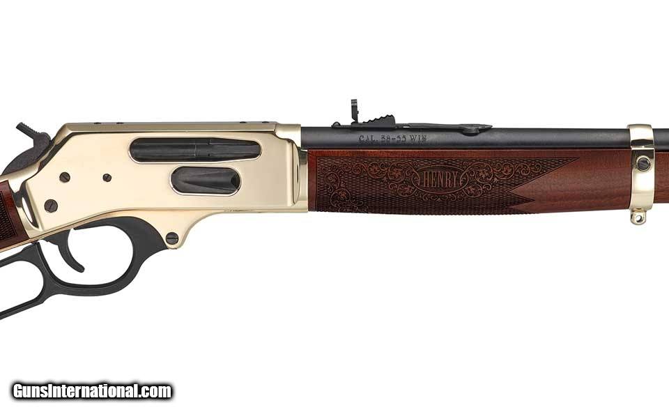 Description: Guns Listing ID: 23701 Henry‚‚s Side Gate Lever Action offers up the best of both worlds with a standard removable tube magazine for safe and easy unloading and a side loading gate to keep the magazine topped off. The hardened brass receiver is as reliable as it is handsome with the same yield and tensile strength as steel. The brass accents continue through the rifle with the buttplate and barrel band. Its American walnut furniture is set off by intricate, deep checkering that will ensure a firm purchase on the stocks. A semi-buckhorn rear and ivory bead front sight accompanies a 20\" round blued steel barrel to deliver the accuracy. From whitetail hunting to days at the range, to standing as a favorite show-piece in the gun cabinet, the Side Gate Lever Action is a must-have for any lever action aficionado, and it solidifies Henry as the first name in lever action rifles SOLD Manufacturer: HENRY Model: SIDE GATE Caliber Info: .38-55 WIN Condition: new Barrels: 20 BARREL |