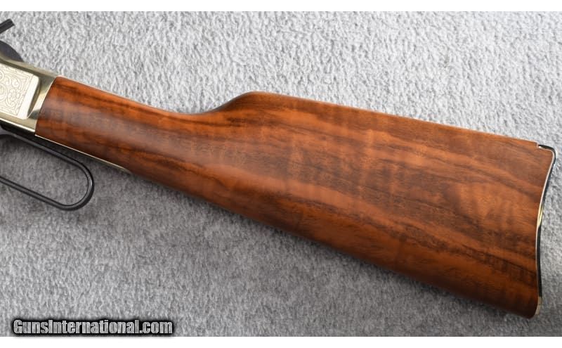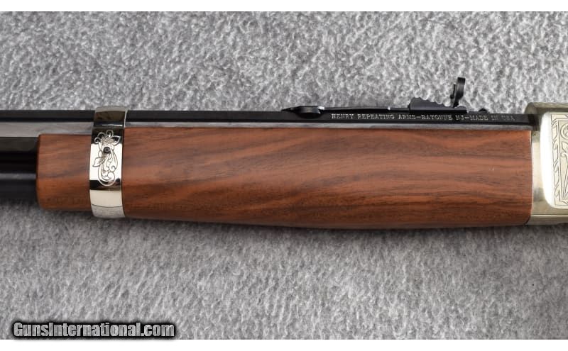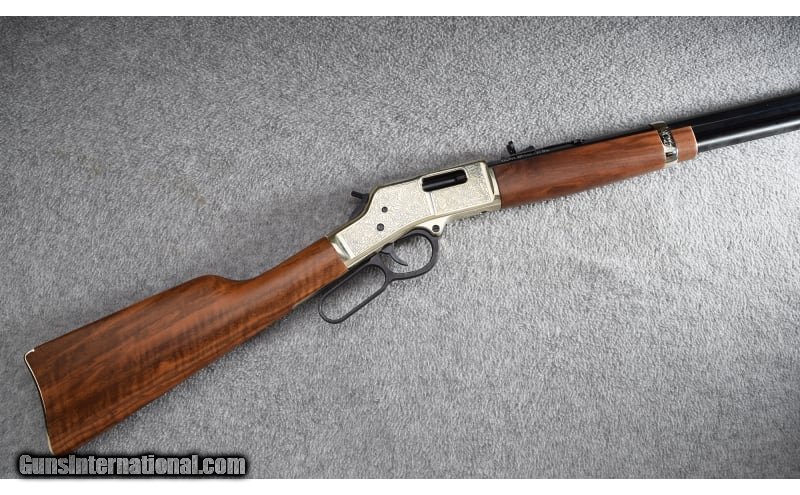 Description: This Henry Silver Deluxe Engraved in .375 Mag / .38 Spl remains is in excellent condition. There are a few handling marks on the barrel and some wear shows on the receiver. The bore is bright and shiny and the wood is fantastic! This rifle features detail engraving on the receiver. The original Henry factory box is included with this firearm. Very nice rifle!! .357 Mag./.38 Special SOLD Metal Condition: Excellent Wood Condition: Excellent Bore Condition: Excellent Barrels: 20 Triggers: Factory Stock Dimensions: 14 1/2" LOP Fore End: Uncheckered Walnut Straight Stock - Uncheckered Walnut Forend Butt Pad: Silver Metal Butt Plate Weight: 8 1/2 lbs Sights: Post & Bead Front - V Notch Rear With White Diamond Inlay Item Location: Wheeling |