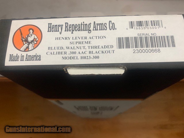 Description: 16.5” Threaded Barrel Walnut Stock New in Box SOLD Rifle Caliber: .300 AAC Blackout Manufacturer: Henry Model: Supreme |