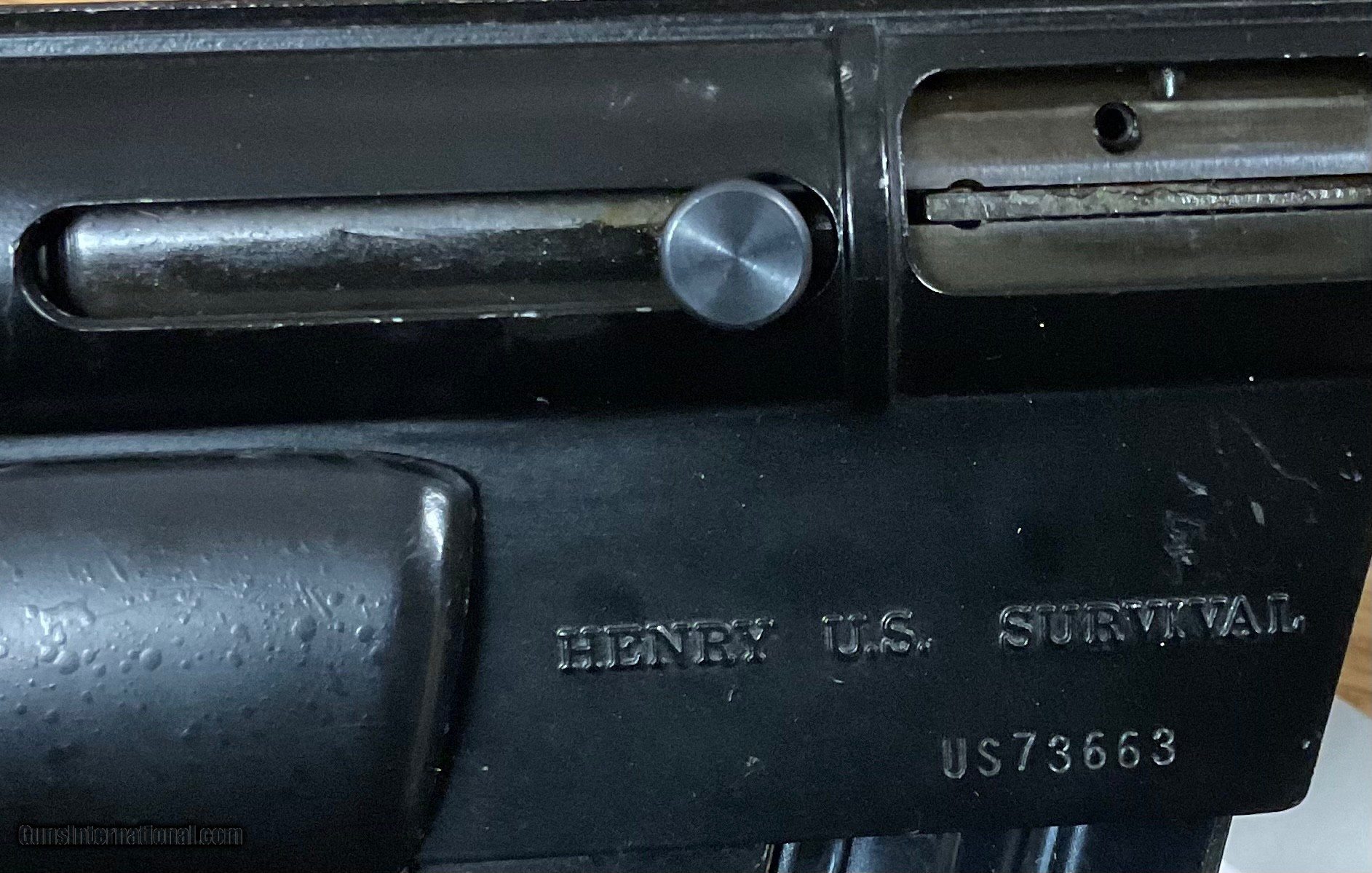 Description: Henry Survival Rifle Semi Automatic .22LR Rifle. Very cool ultra lightweight 22 Rifle. Minor wear on the finish. See all photos for details. Buyer is responsible for a 35 dollar shipping charge. SOLD Rifle Caliber: .22 Long Rifle Manufacturer: Henry Model: Survival Rifle Serial Number: US73663 Barrel Length: 16” Condition: Very good |