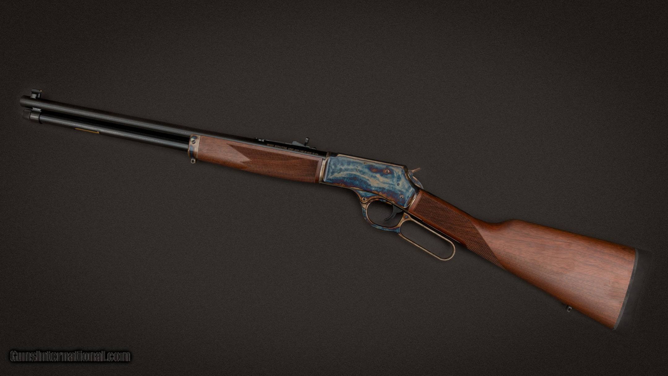 Description: This Henry-Turnbull rifle starts with an all American-made Henry Repeating Arms Big Boy Steel .45 Colt Side Gate rifle, built to precise standards by American craftsmen. Each example features Henry’s famous smooth action, crisp trigger and rich walnut stock. Turnbull Restoration then adds our classic era, bone charcoal color case hardening to the receiver, lever, hammer and forend cap. Contact us for more information and additional photographs. SOLD Rifle Caliber: .45 Colt Manufacturer: Henry Model: H012GC Serial Number: THR45012 Barrel Length: 20 Condition: New Action: Lever Stock: American Black Walnut Butt Pad: Black Solid Rubber Recoil Pad LOP: 14" L.O.P. Finish: Turnbull Bone Charcoal Color Case Hardened Receiver Weight: 7.00 lbs. Sights: Fully Adjustable Semi-Buckhorn with Diamond Insert Rear, brass bead front Item Location: NY |