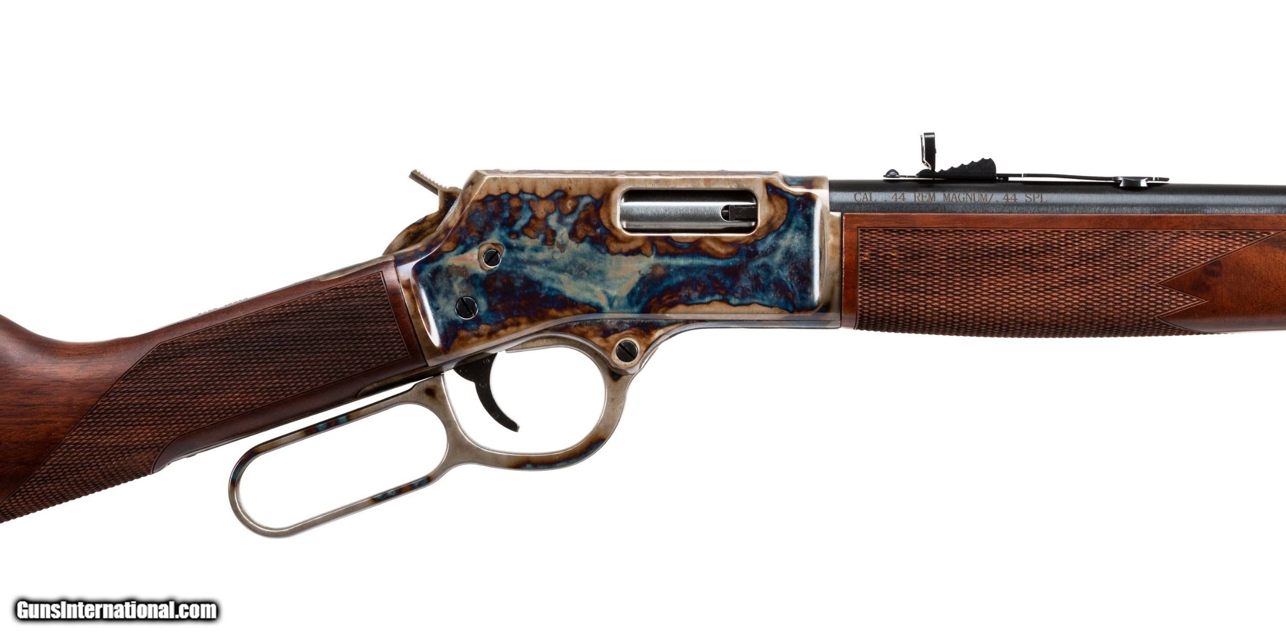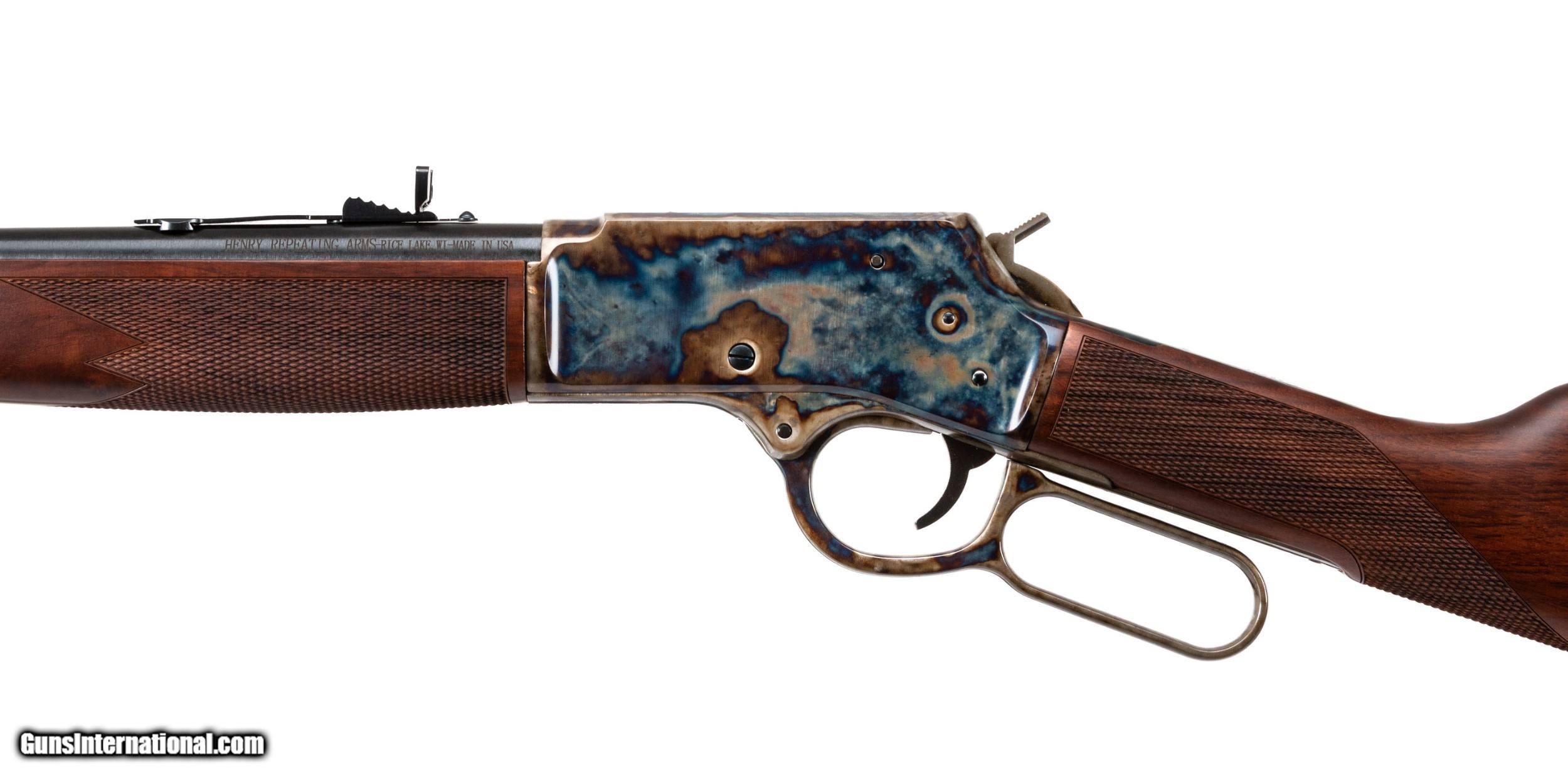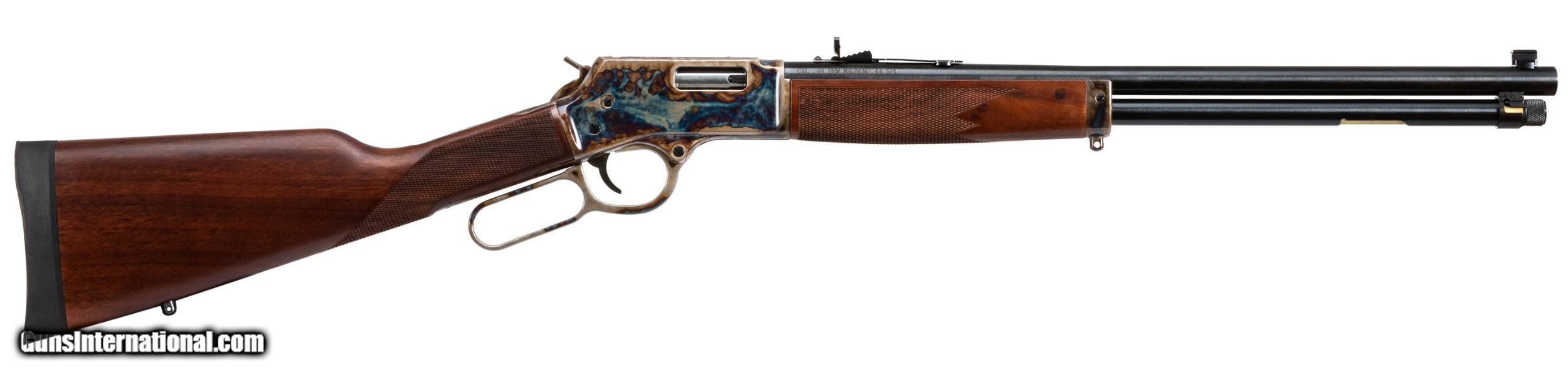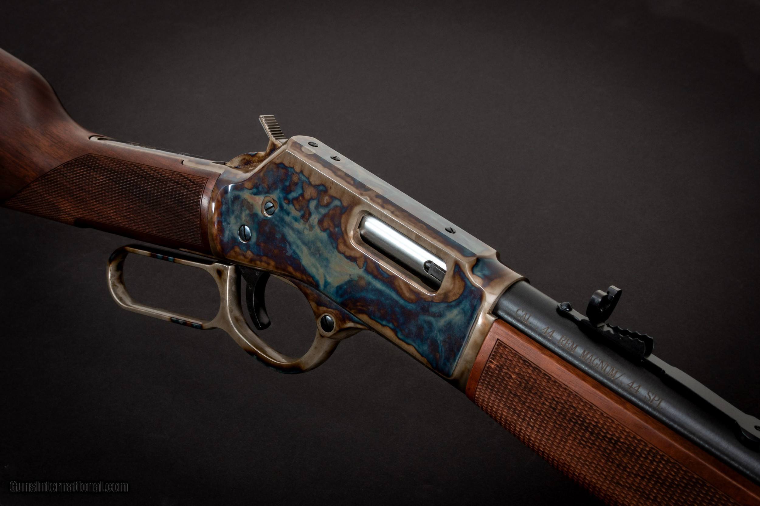 Description: Henry Repeating Arms, Turnbull Restoration and Top Shot Armory: A collaboration dedicated to preserving the legacy of great American lever guns. The Henry-Turnbull rifle starts with an all American-made Henry Repeating Arms lever action rifle, built to precise standards by American craftsmen. Each example features Henry’s famous smooth action, crisp trigger and rich walnut stock. Turnbull Restoration then adds our classic era, bone charcoal color case hardening to the receiver, lever, hammer and forend cap. The family of rifles is available in seven popular calibers: .30 WCF, .41 Rem Mag, .44 Magnum/.44 Spl, .45-70 Gov’t, .45 Colt, .327 Fed, and .357 Mag. Each of which can be purchased exclusively through Top Shot Armory, LLC. But today we have one example in .44 Magnum/.44 Spl. It’s in our own showroom now, ready for its new home. SOLD Manufacturer: Henry Repeating Arms Model: H012 Serial Number: THR44007 Caliber Info: .44 Rem Mag Condition: New Barrels: 20 Barrel Type: Round Action: Lever Butt Pad: Black Solid Rubber Recoil Pad LOP: 14 Finish: Bone charcoal color case hardened receiver, lever, hammer and forend cap Weight: 7 lbs Sights: Brass bead front, fully adjustable semi-buckhorn rear w/ diamond insert Item Location: NY |