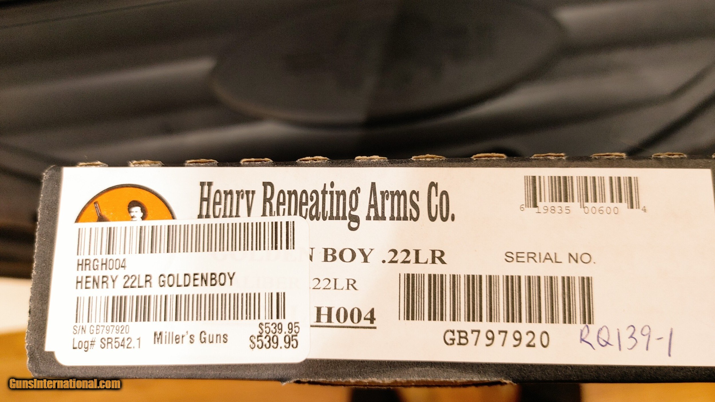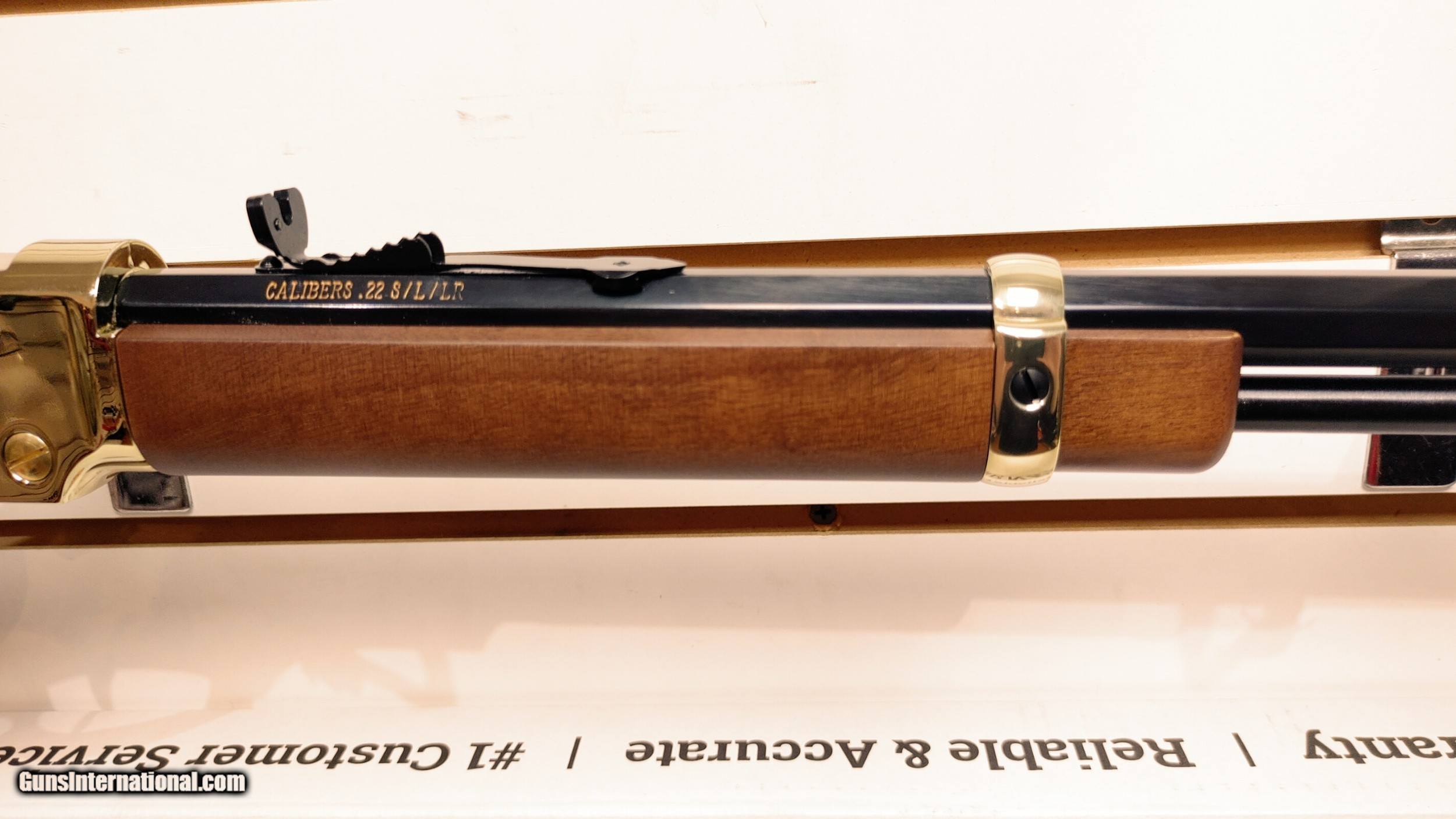 Description: new HEN Golden BOY LVR 22LR (CALIBER:22LR); (MAG CAPACITY:16+1); (MODEL SERIES:GOLDEN BOY); (CAPACITY:16+1); (FINISH:BLUE BARREL/ BRASSLITE RECEIVER); (STOCK:WALNUT STRAIGHT NON-CHECKERED); (SIGHTS:FT:BEADED RR:ADJUSTABLE SEMI-BUCKHORN W/ DIAMOND); (OVERALL LENGTH:38.5); (FEATURES:BARREL BAND/ OCTAGONAL BARREL); (GUN TYPE:RIFLE: LEVER ACTION); (ACTION:LEVER ACTION); (BARREL LENGTH:20); (DEPT:LONG GUN) SOLD Serial Number: GB797920 |