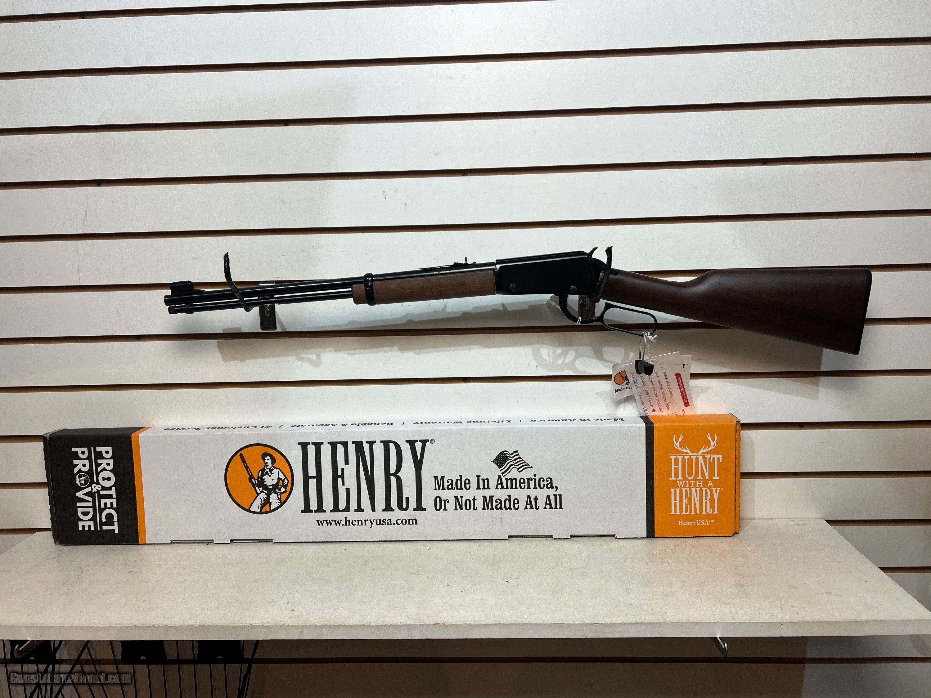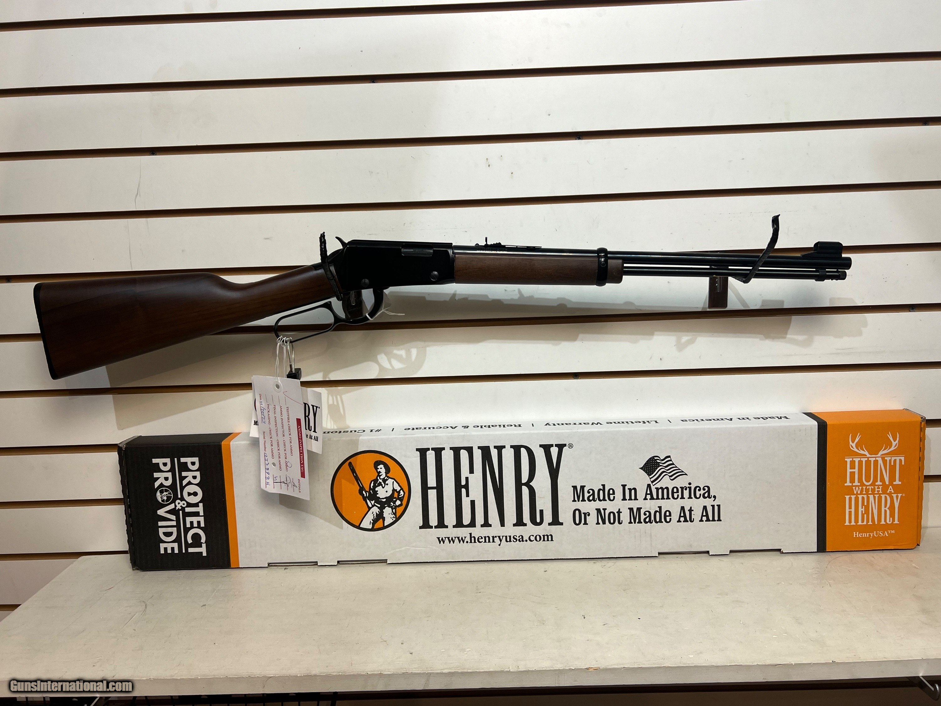 Description: new HEN STANDARD LVR 22LR new in box (CALIBER:22LR); (MAG CAPACITY:15+1); (MODEL SERIES:HENRY LEVER); (CAPACITY:15+1); (FINISH:BLUE); (STOCK:WALNUT STRAIGHT NON-CHECKERED); (SIGHTS:FRONT: HOODED REAR: ADJUSTABLE); (OVERALL LENGTH:36.5); (FEATURES:BARREL BAND/ TUBULAR MAGAZINE); (GUN TYPE:RIFLE: LEVER ACTION); (ACTION:LEVER ACTION); (BARREL LENGTH:18.25); (DEPT:LONG) Buyer pays shipping Millers Gun Center Located in New Castle, Delaware "Home of TAX-Free shopping" No Credit Card Fees Send Gun international inquiry and then call 302-328-9747 to complete your purchase SOLD Serial Number: 1237898H |