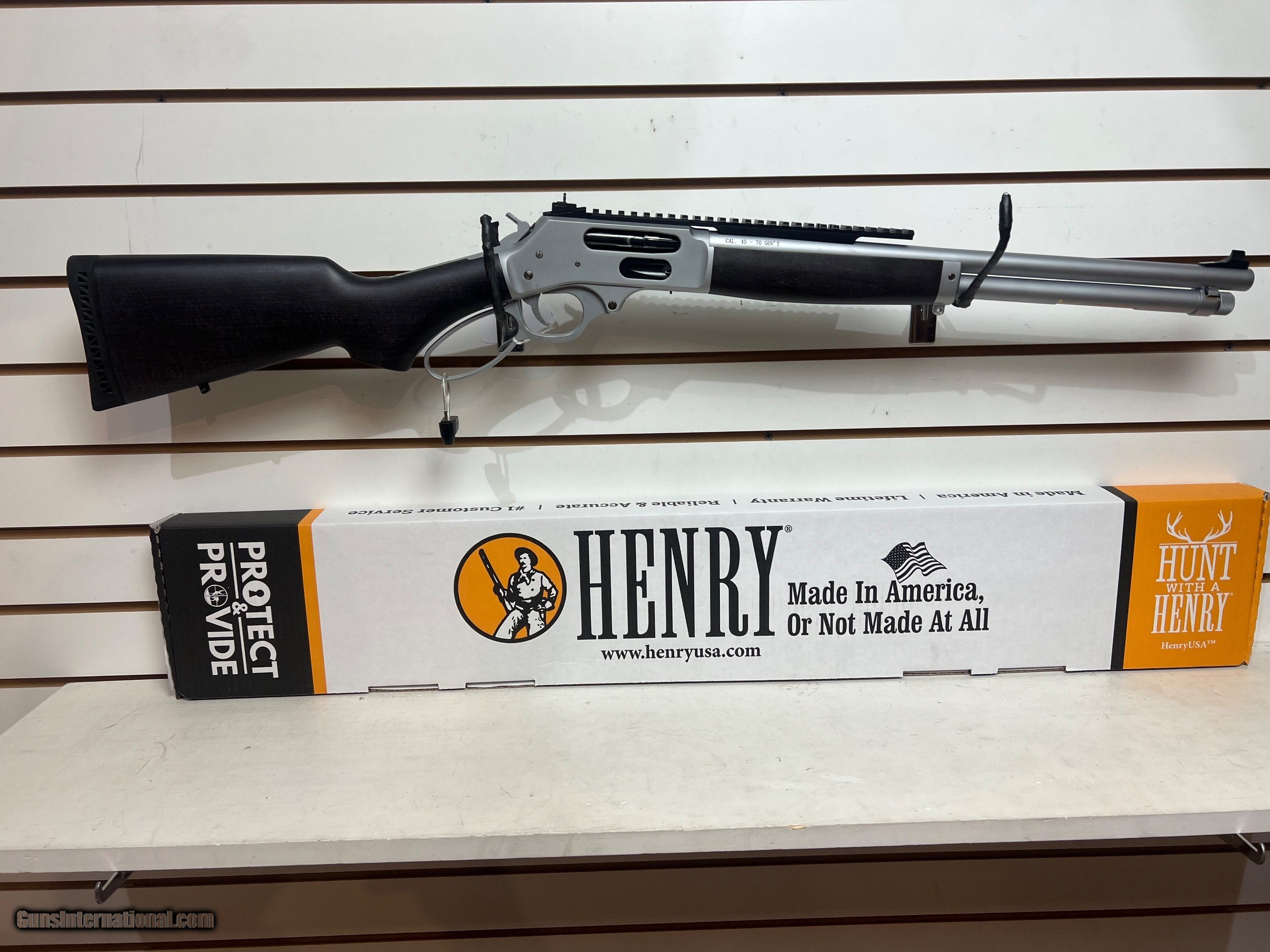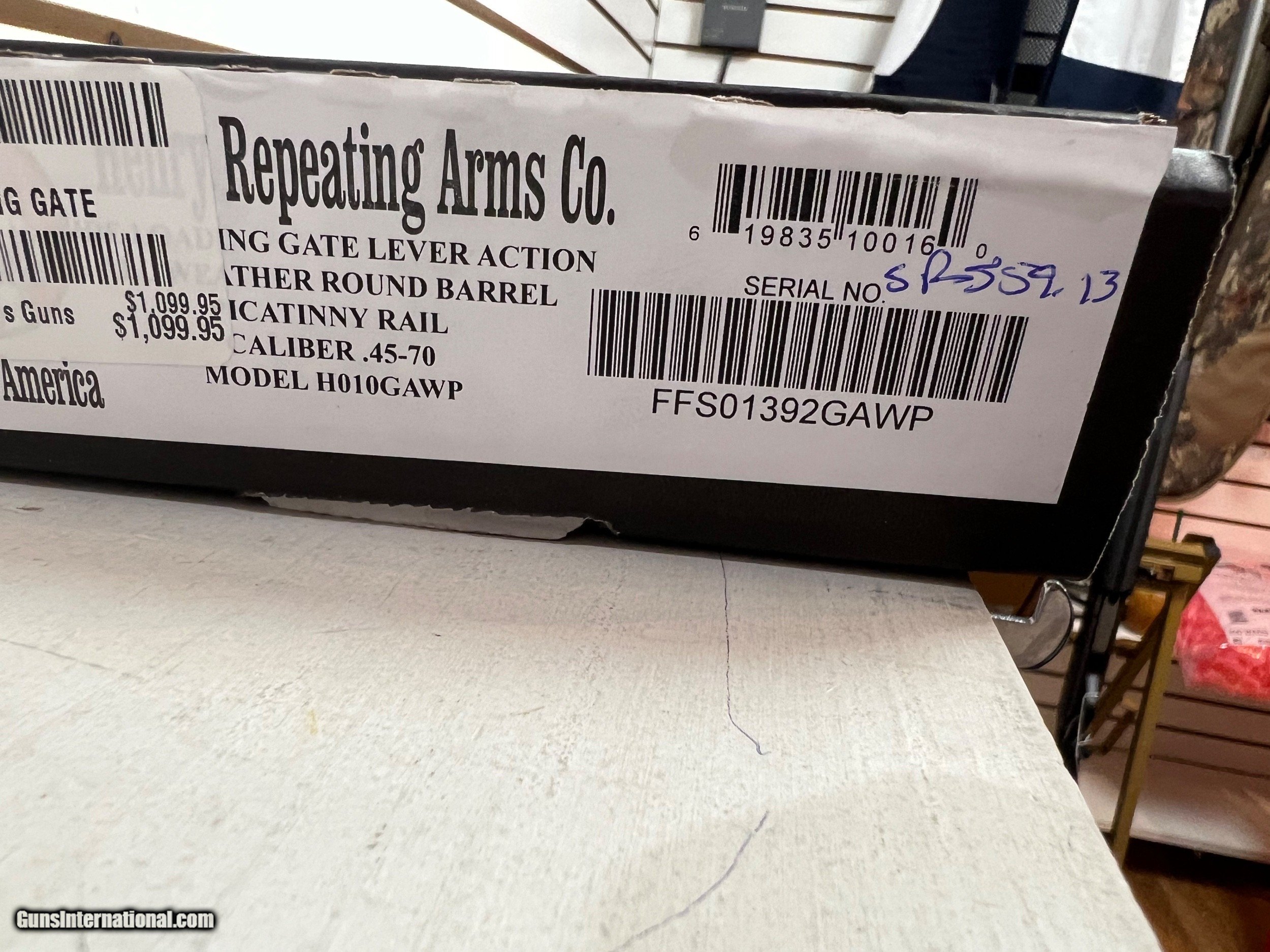 Description: new Henry LEVER ACTION 45-70 AW RAIL SIDE GATE ALL WEATHER new in box (MODEL:LEVER ACTION ALL WEATHER); (ACTION:LEVER ACTION); (BARREL LENGTH:18.43); (CAPACITY:4 + 1); (OVERALLLENGTH:39); (RECEIVER:INDUSTRIAL HARD CHROME); (SIGHTS:FS:BRASS BEAD / RS:PEEP); (STOCKFRAMEGRIPS:WOOD STOCK STAINED HARDWOOD); (WEIGHT:7.10 LBS); (DRILL-TAPPED:TRUE); (RATEOFTWIST:1-IN-20); (RIFLE:RIFLE) Buyer pays shipping Millers Gun Center Located in New Castle, Delaware "Home of TAX-Free shopping" No Credit Card Fees Send Gun international inquiry and then call 302-328-9747 to complete your purchase SOLD Serial Number: FFS01392GAWP |