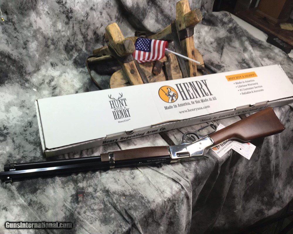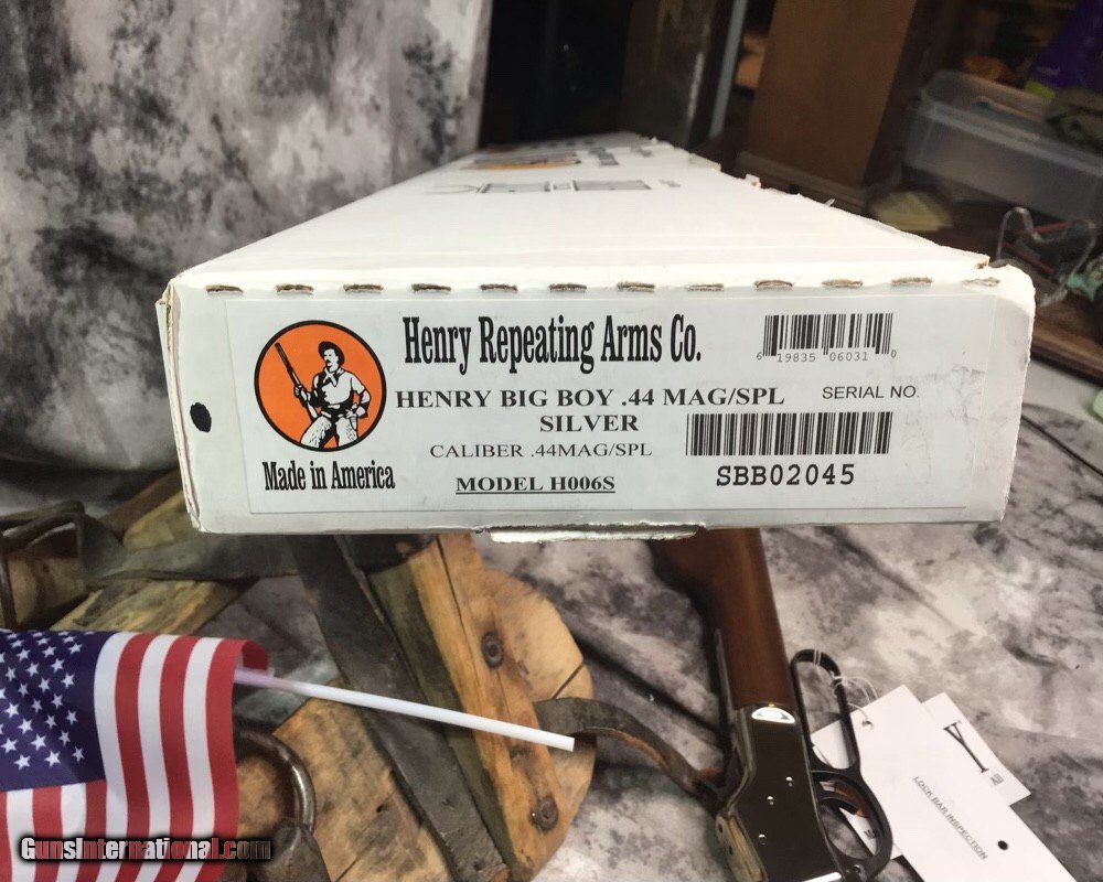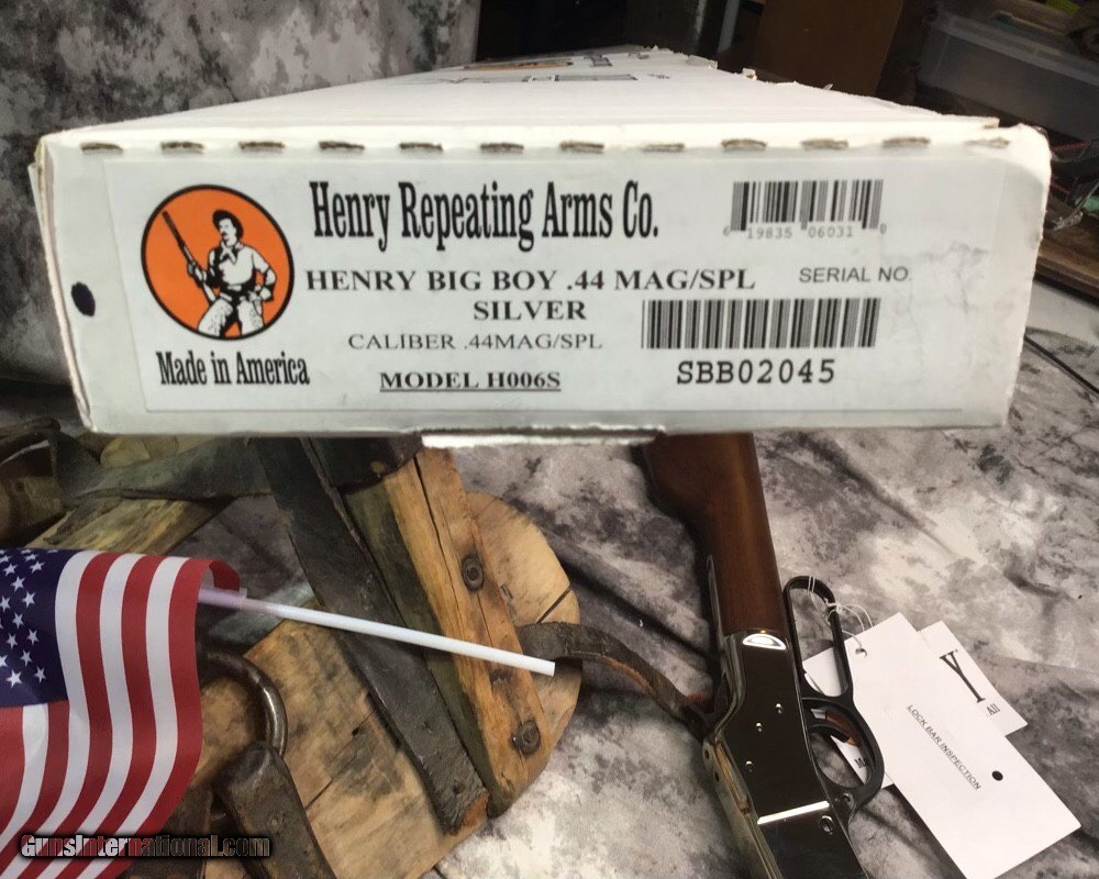 Description: NIB Henry Big Boy Silver in .44 Mag/Spl. Henry Repeating Arms, Big Boy Silver, Lever Action, 44 Magnum, 20" Barrel, Nickel Receiver, Walnut Stock, Adjustable Sights, 10Rd