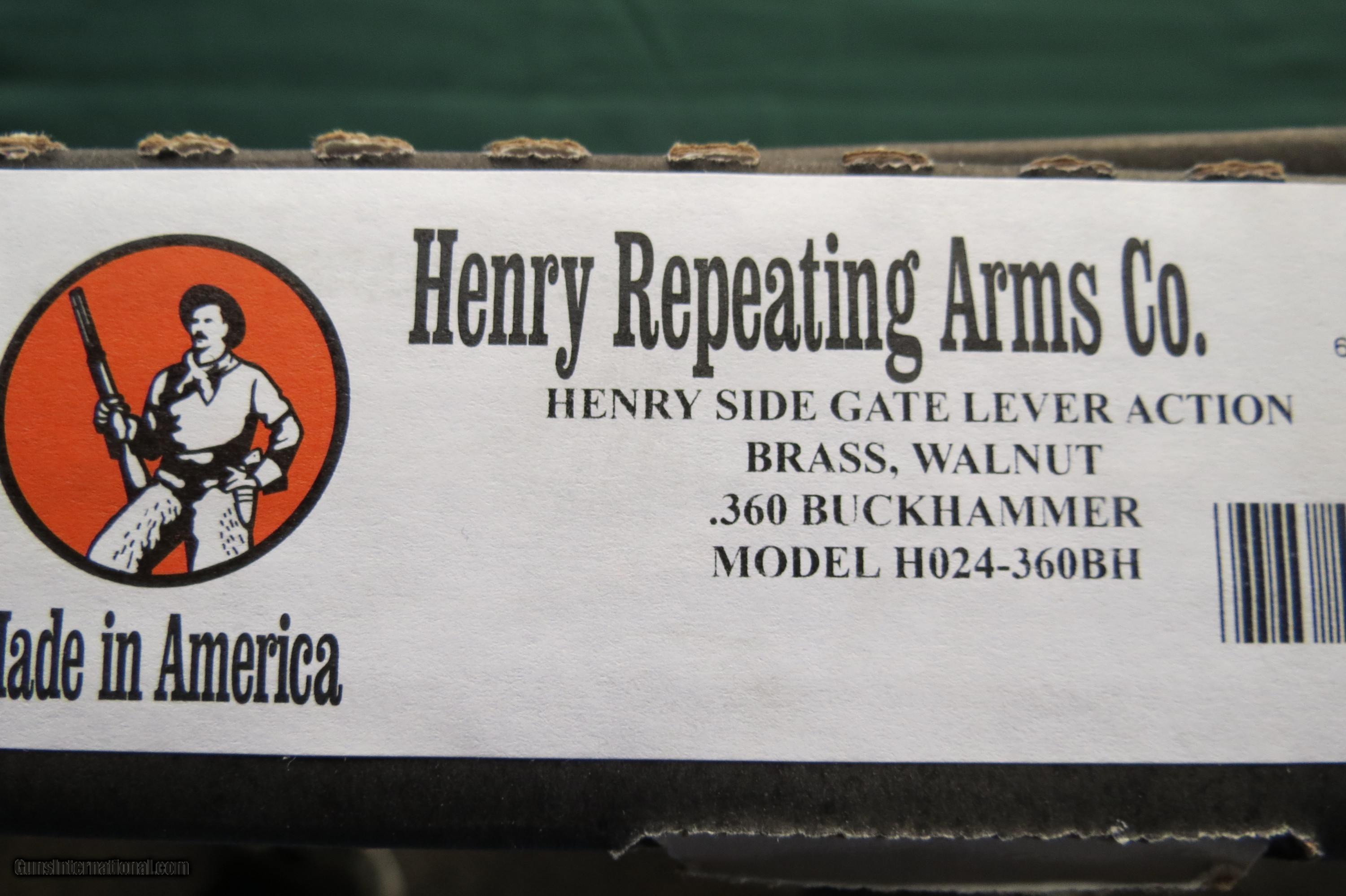 New in Box Henry Side Gate Lever Action Model H024-360BH in 360 Buckhammer
