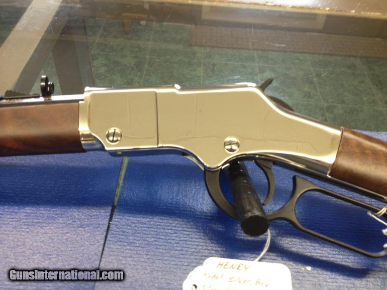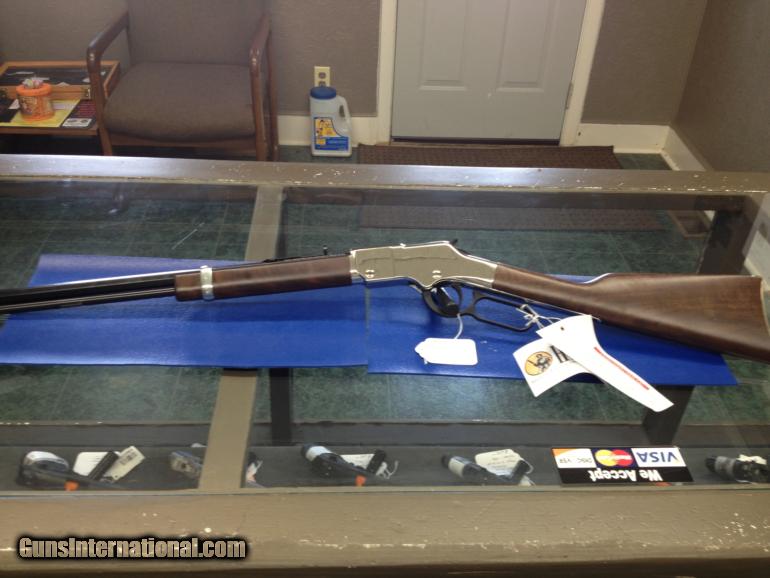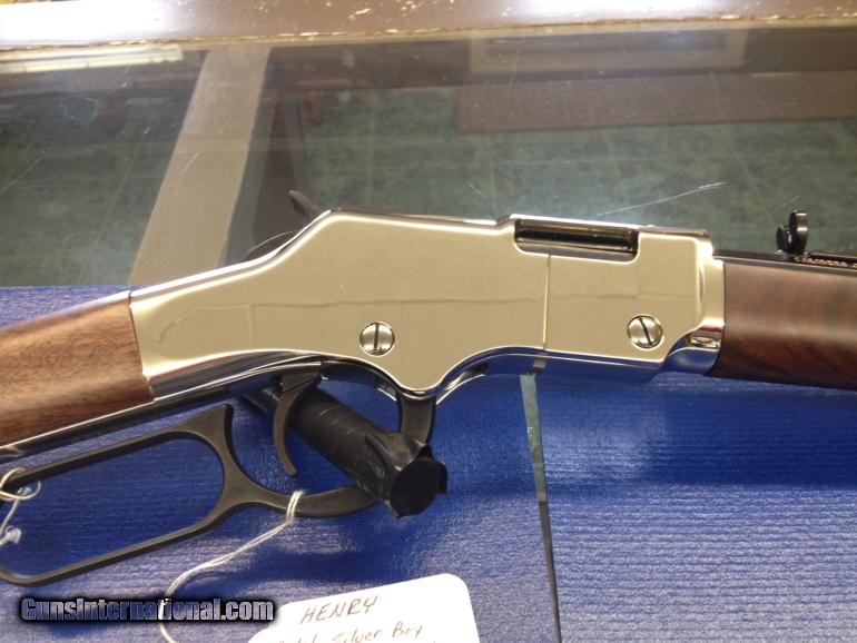 Description: THIS IS A NEW RELEASE FROM HENRY !!!! NEW IN BOX !!!! SILVER BOY !!! MODEL # HNH004S. I BELEIVE THEY ARE NICER THAN THE GOLDEN BOY'S. CAPACITY 16 + 1, WITH A 20" BARREL. BEAUTIFUL WALNUT WITH A SILVER RECEIVER, SILVER BAND, AND SILVER BUTT PLATE. I HAVE 3 LEFT IN STOCK. THEY ARE ALLOCATED!!!! SHIPPING $35. MSRP $595 SOLD |