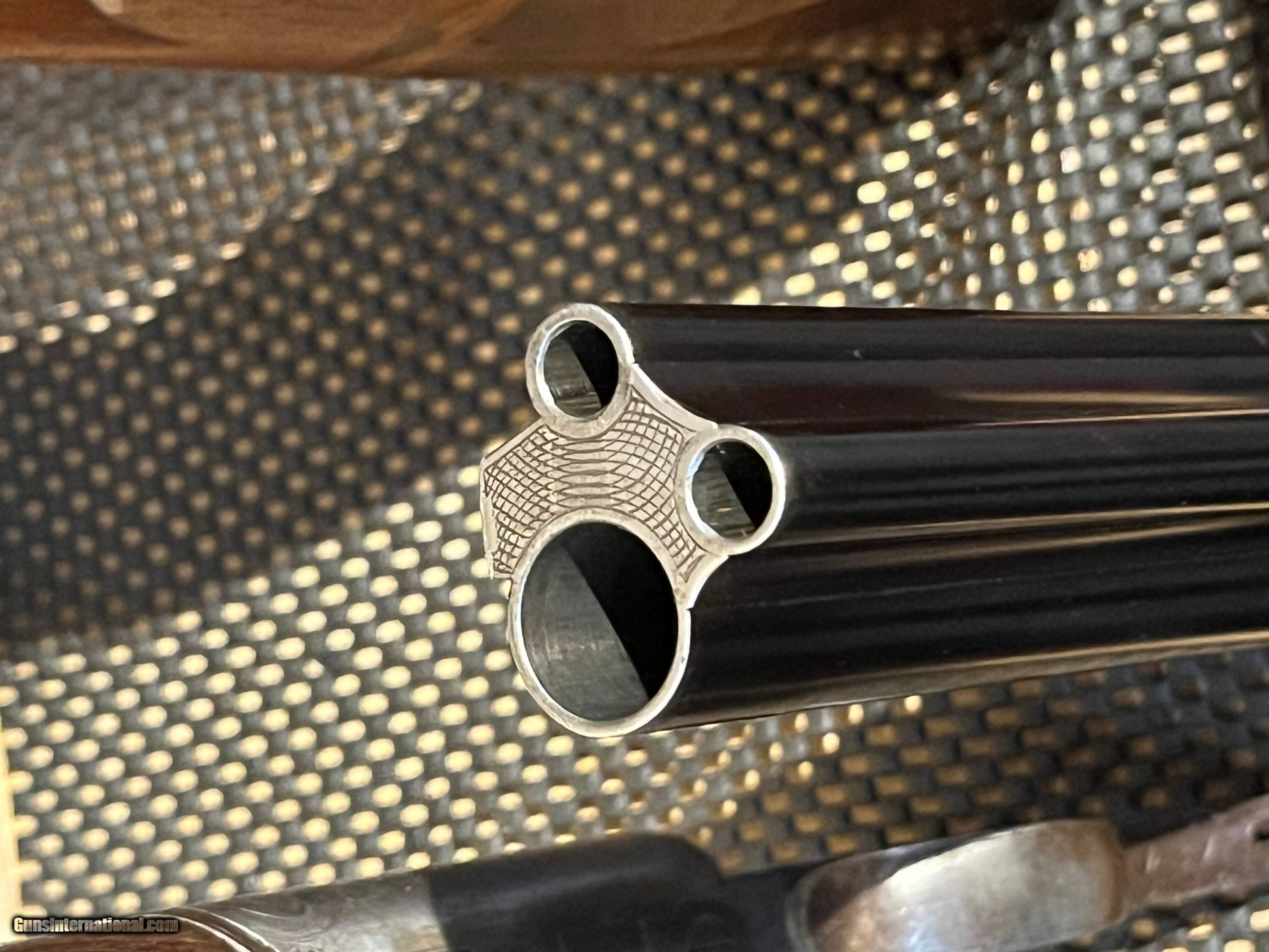 Description: Drillings, Double Rifles, and Rifles - Completed in 1937 this classic double rifle with a 12g. shotgun is in excellent condition. The original case colors are near 100% indicating this fine gun has seen very little use. This would make an outstanding deer and elk gun in country where there are grouse~! *** Note: To see this gun with high resolution photos and a zoom-in feature, go to the vintagedoubles main site and search for the gun ID: 5232 or browse the main site to see our full gun collection. SOLD Manufacturer: Heym Dopplebuchs drilling ~ 8x57JRS x 8x57JRS x 12g. Model: None Serial Number: 26380 Caliber Info: 8x57JRS Ejectors: No Barrels: 23 1/2 Barrel Type: Steel Action: Boxlock Gauge Info: Caliber Stock Comb: 1 5/8 Stock Heel: 2 5/16 Stock Cast: 0 LOP: 14 1/8" with 13 Weight: 7lbs 9ozs Choke Left: NA Choke Right: .048 extra full Proof:Nitro: 2 3/4 Minimum Wall Thickness Left: NA Minimum Wall Thickness Right: .032 |
