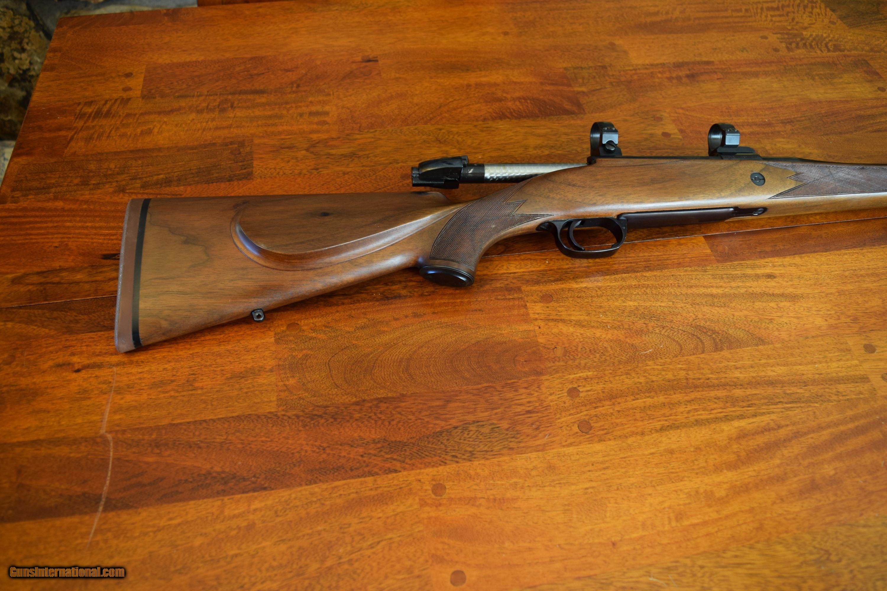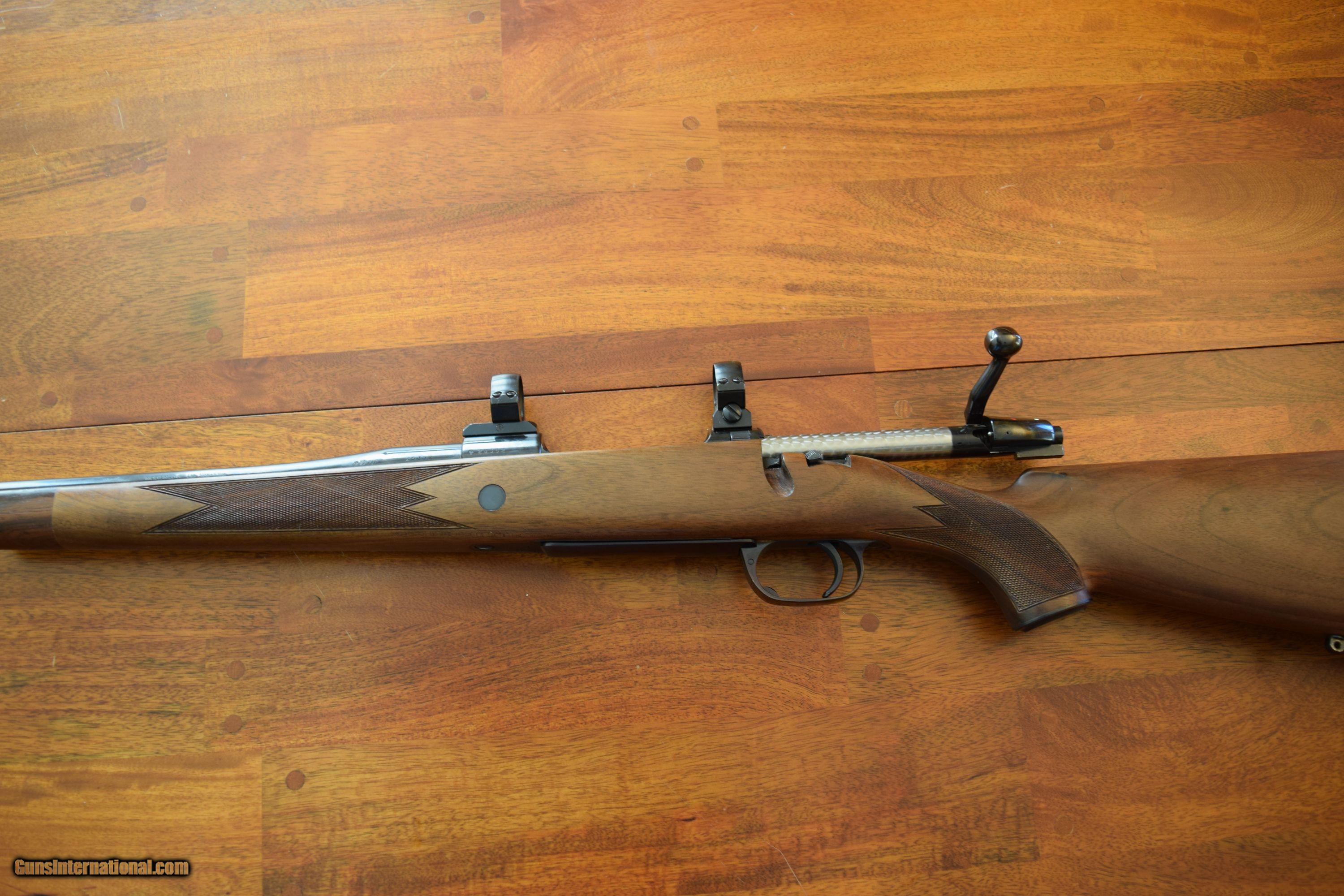 Description: Heym 20G 375 H&H Left Hand Classic Sporter Safari. 375 H&H 25 1/2" barrel or 26" barrell. (RARE BARREL LENGTH). Unfired 100% condition. Rings and bases are 4 screw Recknagel I think. I ussually sell under the name "Ek Mis Afrika" on the other site. I bought the rifle from a man who won it ar SCI in 2007. He won a Right hand model so Heym replaced it with this rifle. I bought it for my LH daughter but she prefers to use a RH rifle. What makes this rifle special is the long barrell. Ive used a 375 H&H exclusively since 1998, Put more than 4500 rounds through my 22 1/2" Sako which I wish had a longer barrell. Mainly light loads. Recoil is not too bad even with full power loads. Ballistically the 375 H&H is identical to a 30-06 except you are using 300 &270 grain bullets versus 180 & 150 grain. The barrel is marked: Heym SR 20 G 375 H & H Magnum Paul Jeager Jenkintown, PA 2835*? The action is marked: Frederick Wm Heym Made in Germany 2835* The barrel is 26". Paul Jeager Jenkintown, PA is the importer. he was a German gunsmith who had a business in Americaeft hand Heym. LH Heym. Heym 375 H&H SOLD Manufacturer: Heym Model: 20G Classic Sporter Safari Serial Number: 2835* Caliber Info: 375 H&H Condition: 100% |