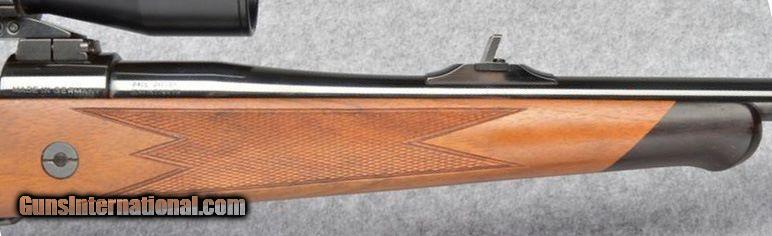 The 37th Edition of the Blue Book shows the basic SR 20 valued at $1,425 in 98% condition with an add-on of $1,140 for .375 H&H Mag (Mod SR 20 G), making a total of $ 2,565. Add $425 for the German EAR QD 30mm swivel steel rings, and $900 for the scope, would bring the Grand Total to $3,890.00