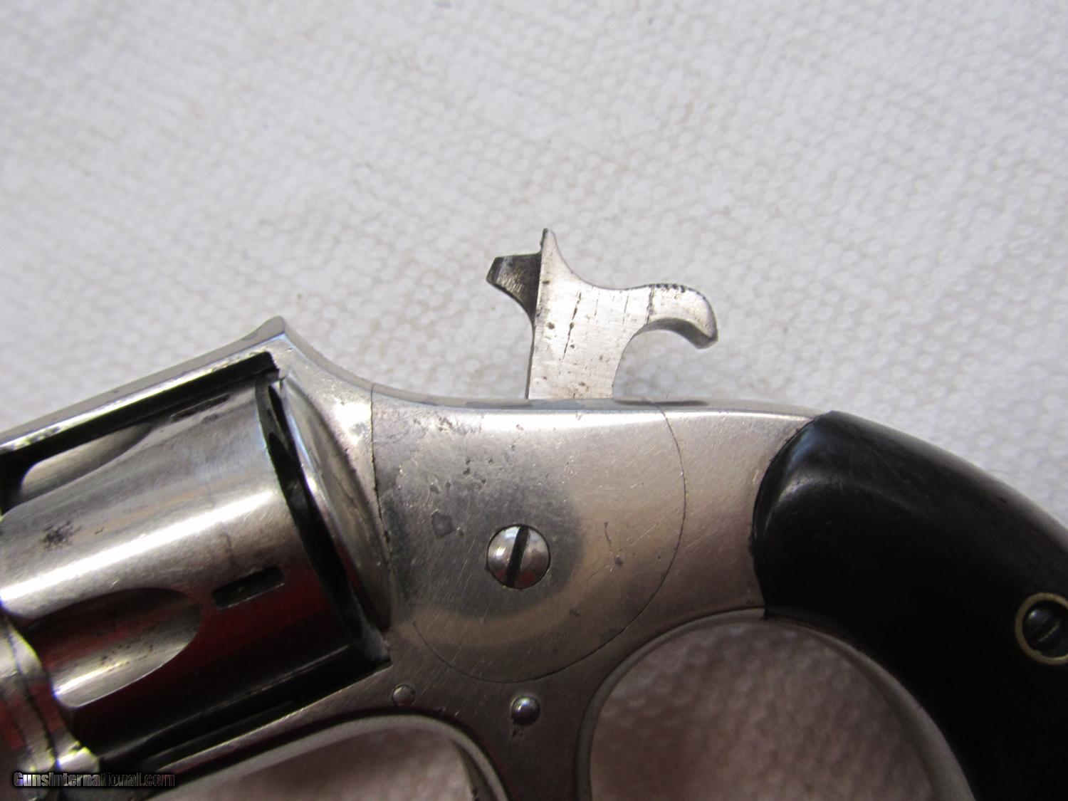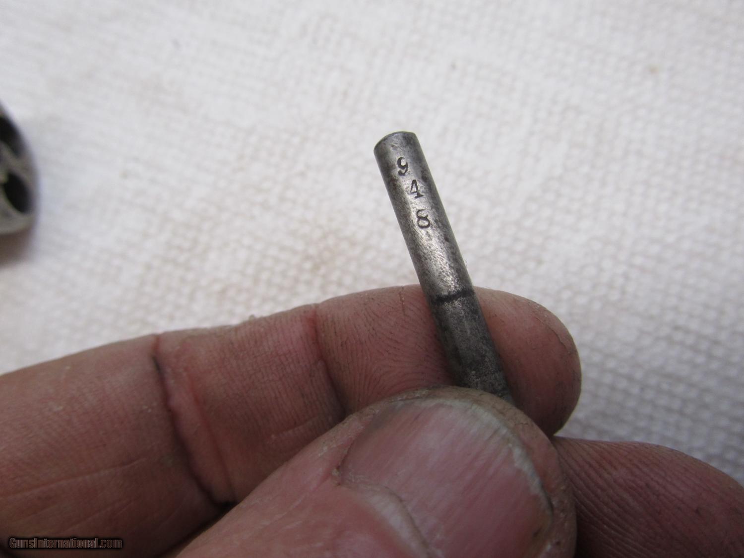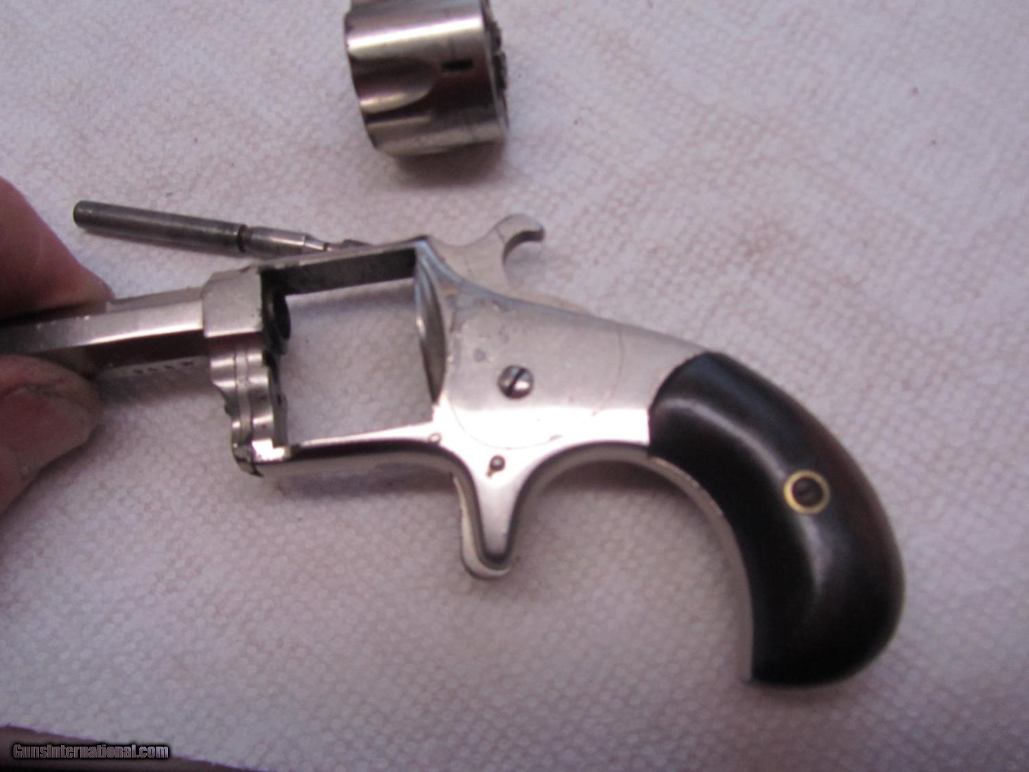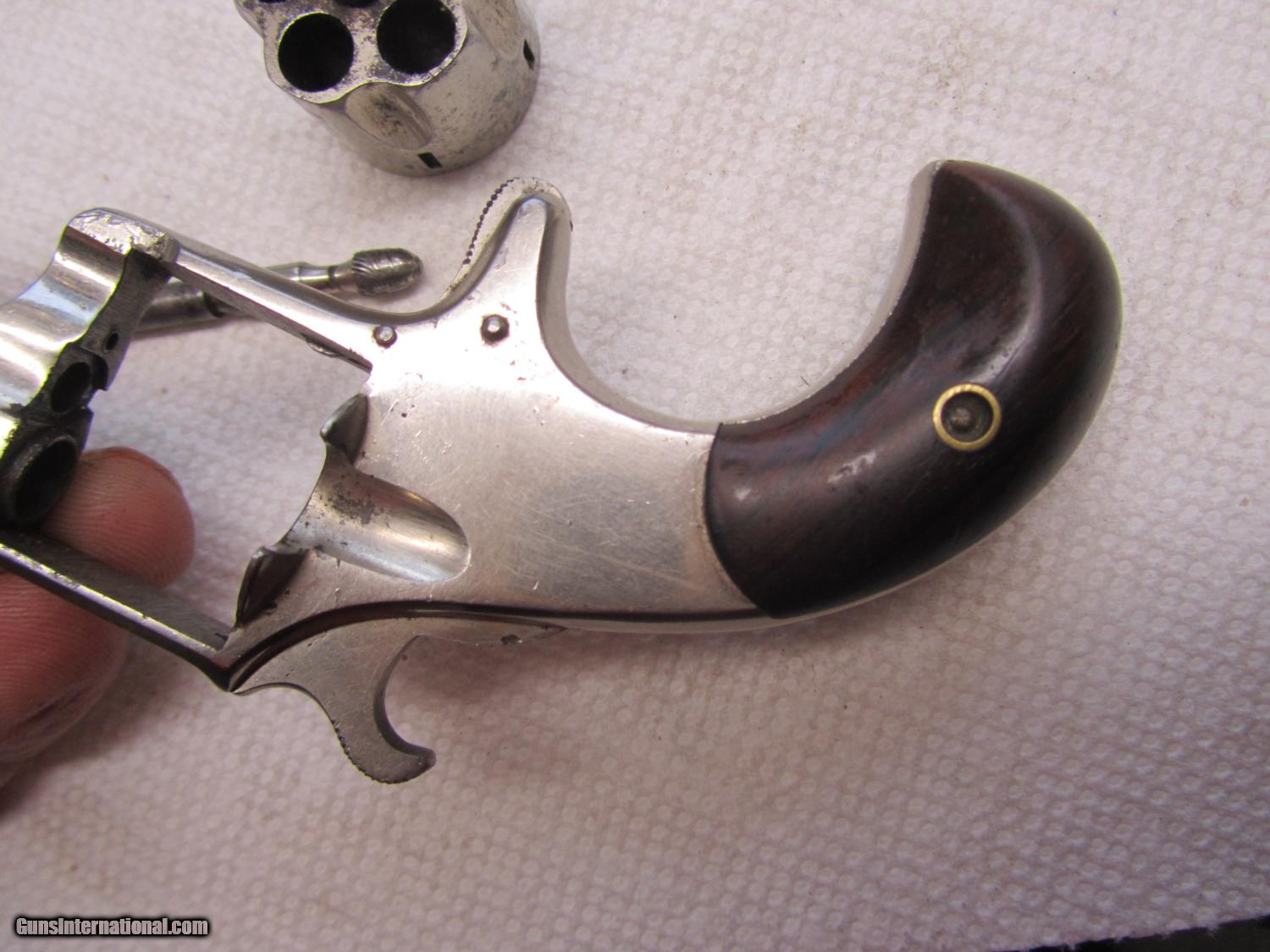 Description: Nickel plated Hopkins and Allen 32 cal rimfire revolver .2 and 1/2 inch barrel . maked XL no2 on topstrap . 70% nickel . All matching numbers . 948w marker on bottom of barrel, cylinder and cylinder pin . I have lots of photos . Thanks for looking . Call any time thanks Darrel SOLD Antique: Yes Manufacturer: Hopkins and Allen Model: XL no 2 Serial Number: 948 w Caliber Info: 32 rimfire Bore: 2 1/2 Chambers: 5 Condition: nice Metal Condition: 70% nickel Wood Condition: very good Bore Condition: some pits ,some rust Action: single Item Location: kansas |