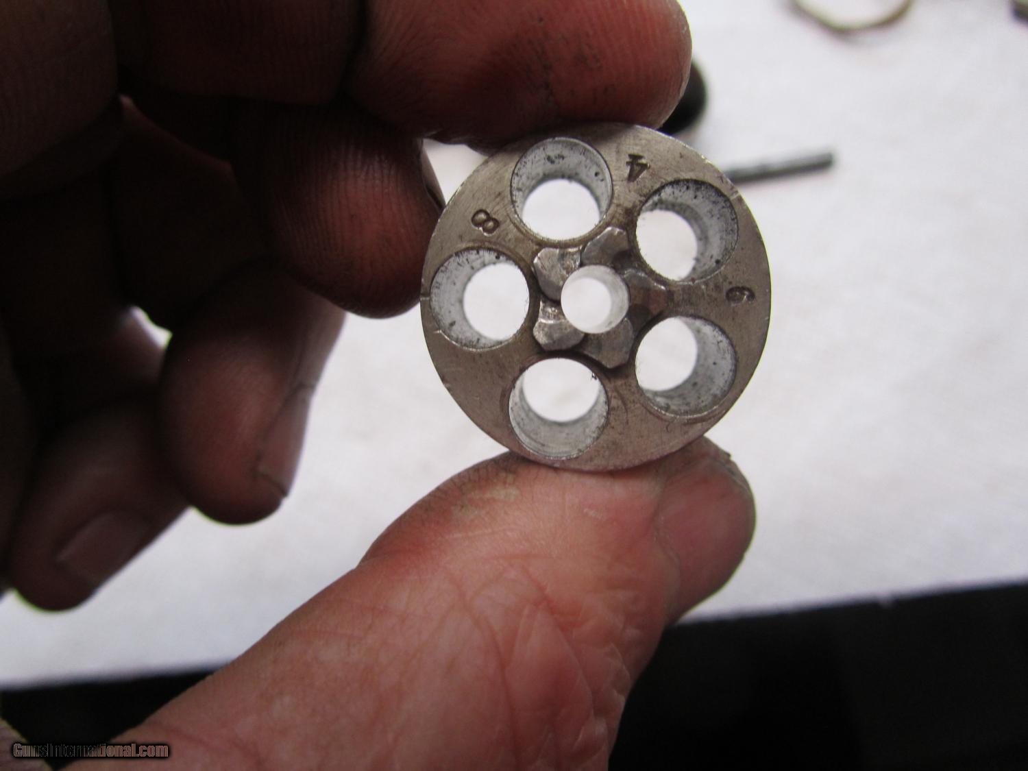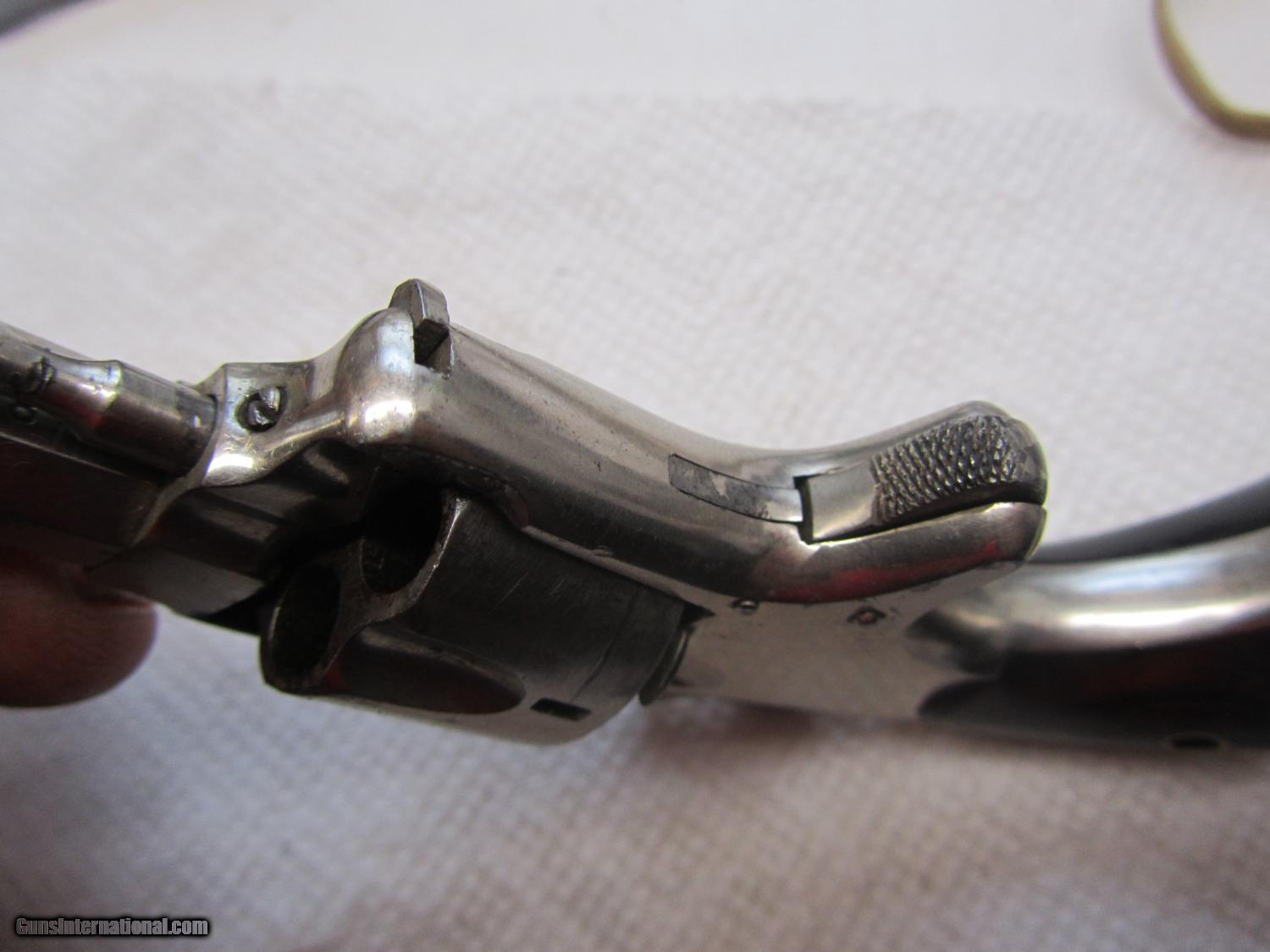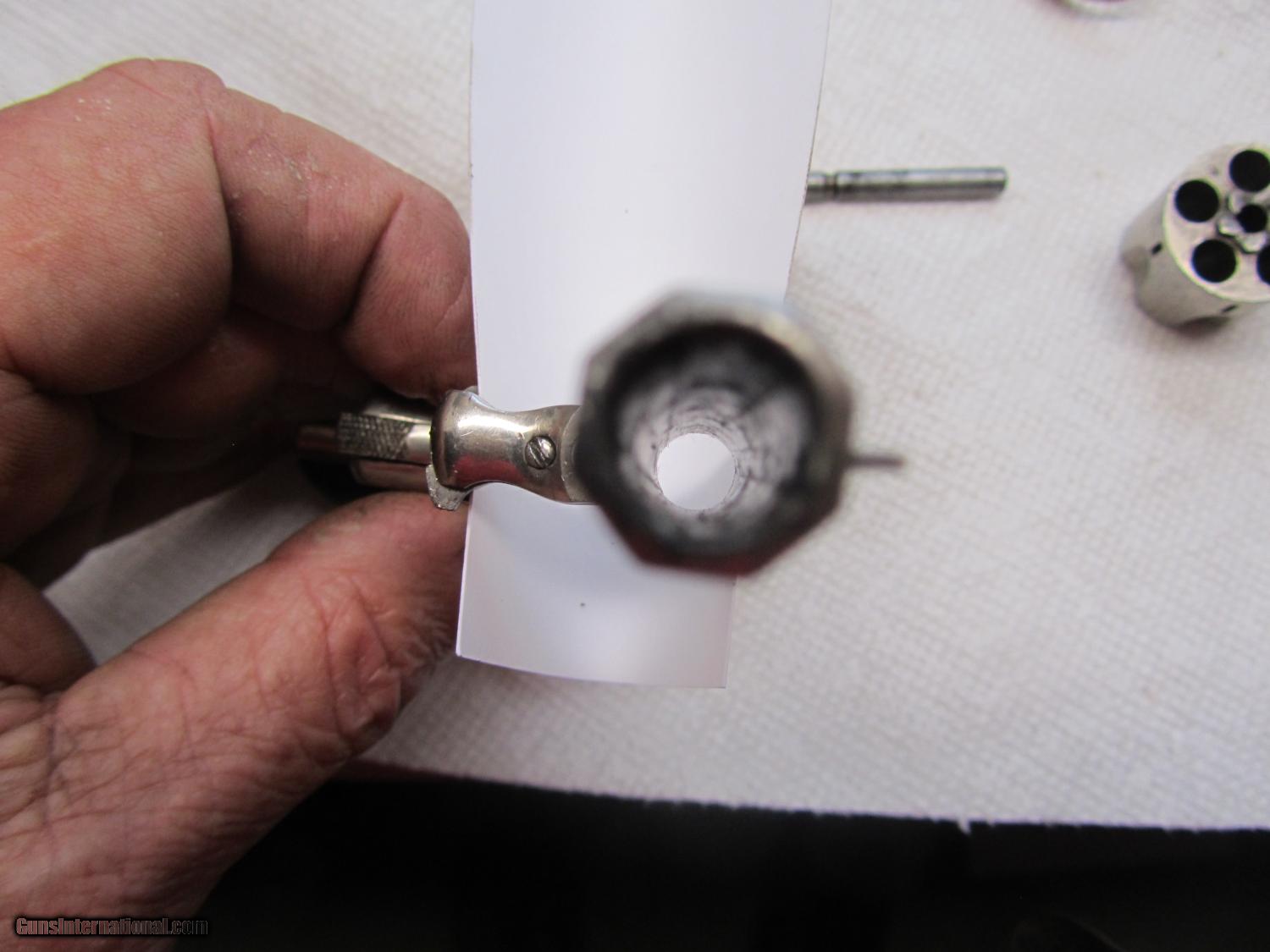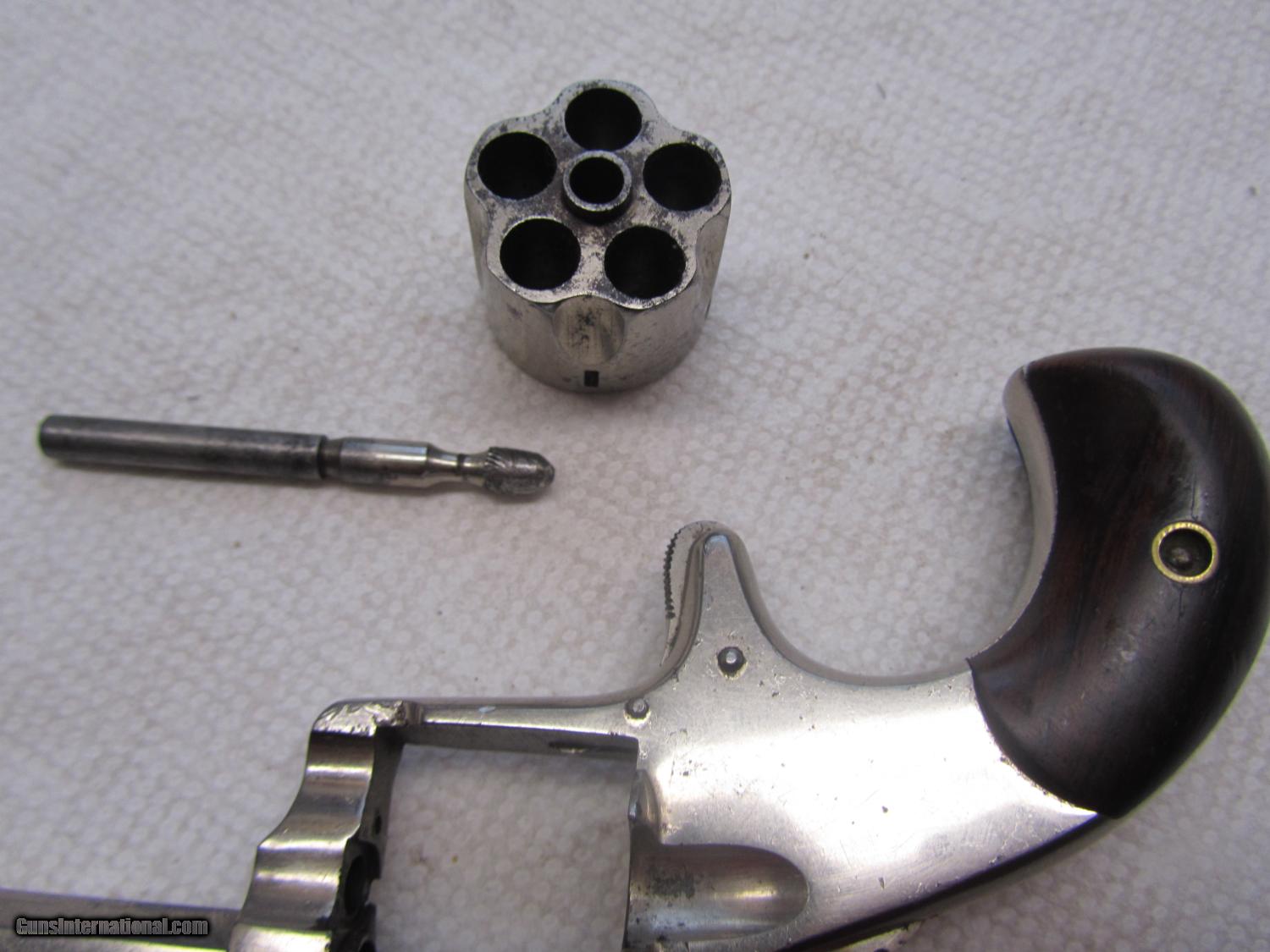 Description: Nickel plated Hopkins and Allen 32 cal rimfire revolver .2 and 1/2 inch barrel . maked XL no2 on topstrap . 70% nickel . All matching numbers . 948w marker on bottom of barrel, cylinder and cylinder pin . I have lots of photos . Thanks for looking . Call any time thanks Darrel SOLD Antique: Yes Manufacturer: Hopkins and Allen Model: XL no 2 Serial Number: 948 w Caliber Info: 32 rimfire Bore: 2 1/2 Chambers: 5 Condition: nice Metal Condition: 70% nickel Wood Condition: very good Bore Condition: some pits ,some rust Action: single Item Location: kansas |