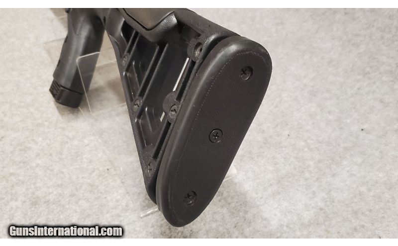 Description: .45 ACP, 20" barrel with a bright very good plus bore showing some light pitting near the muzzle. The metal surfaces retain about 95% original blue and black enamel finishes showing overall light handling marks and high edge and operational silvering. The textured black polymer stock rates very good with numerous small dings and light handling marks. The carbine features a polymer Picatinny rail on the top of the receiver as well as on the underside of the barrel and forend, the original sights are intact, one factory 9-round magazine is included and the action appears to function well mechanically. .45 Auto SOLD Chambers: .45 Auto Metal Condition: Very Good Wood Condition: Very Good Bore Condition: Very Good Barrels: 20 Fore End: Very Good Butt Pad: Very Good Weight: 7lbs 6oz Sights: Open Sights Item Location: Berlin |
