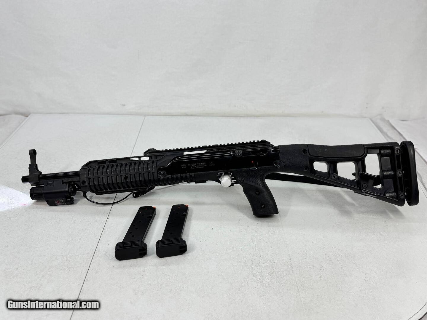 Description: Guns Listing ID: 560788 Hi-Point 4595TS Carbine 45 Auto (ACP) 17.5in Black Semi Automatic Rifle. Includes 2x9rd Magazines And Flash Light/Red Laser Attached. SEE PICTURES FOR MORE DETAILS ON CONDITION. Hi-Point 4595TS Carbine 45 Auto (ACP) 17.5in Black Semi Automatic Rifle - 9+1 Rounds - Hi-Point‚s 4595TS 45 ACP carbine has an all-weather, polymer skeletonized stock with an internal recoil buffer, multiple Weaver-style rails, a sling, swivels, and scope base. It has a quick on/off thumb safety, grip-mounted clip release, last round lock open feature, and fully adjustable sights (post front, peep rear). The 4595TS carbine has a 17.5\" barrel for an OAL of 32\". Hi-Point produces affordable, American-made firearms featuring 100% American parts and assembly. Hi-Point carbines are +P rated and accept all factory ammunition. This model has a black stock with black metal finish and includes a 9-round magazine. Capacity: 9+1 Barrel Length: 17.5in Finish: Black Stock: Polymer Skeleton Black Sights: Adjustable Weight: 7lbs Action: Semi Automatic Cartridge: 45 Auto (ACP) Gun Model: 4095TS Overall Length: 32in RR SOLD Manufacturer: HI-POINT Model: 4595P Caliber Info: .45 ACP Condition: Used - Non-Certified Barrels: 17.5" BARREL Action: SEMI AUTOMATIC Finish: black |