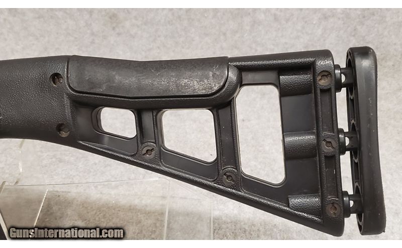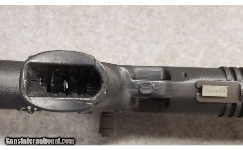 Description: 9 mm, 18 1/2" barrel with a bright near excellent bore. The metal surfaces retain about 97% original blue and black enamel finishes with scattered speckles of light oxidation, light silvering at the muzzle and a few light handling marks. The textured black polymer pistol grip stock rates very good with some scattered dings and light handling marks. The carbine features a polymer Picatinny-style rail on the underside of the barrel and forend and on the top of the receiver, the original sights are intact, no magazine is included, but they remain readily available, and the action appears to function well mechanically. 9mm Luger SOLD Chambers: 9mm Luger Metal Condition: Very Good Bore Condition: Very Good Barrels: 18.5 Fore End: Very Good Butt Pad: Very Good Weight: 5lbs 12oz Sights: Open Sights Item Location: Berlin |