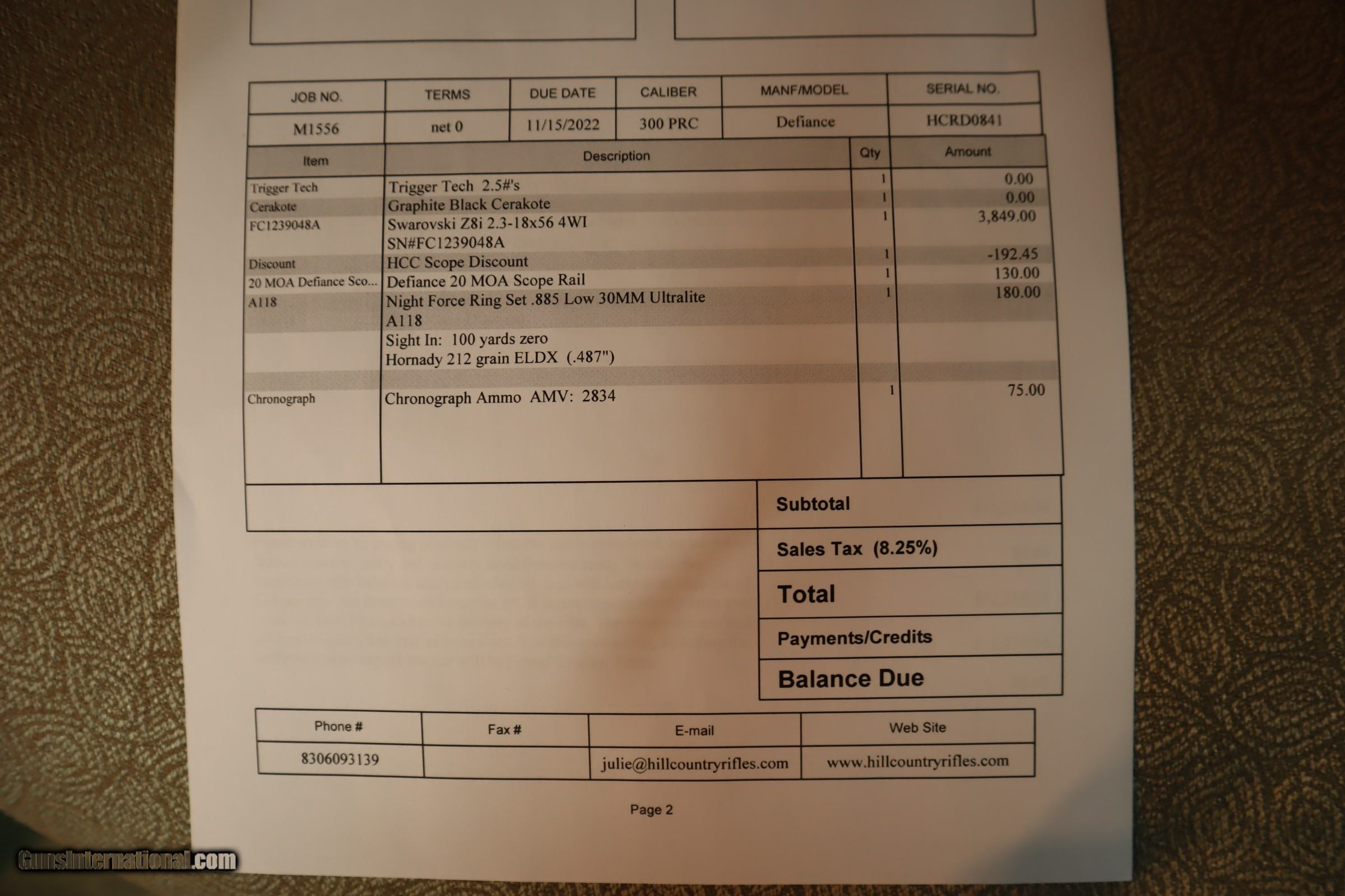 Hill Country Carbon Rifleman 300PRC w/Swarovski z8i scope NEW,ON SALE!!!