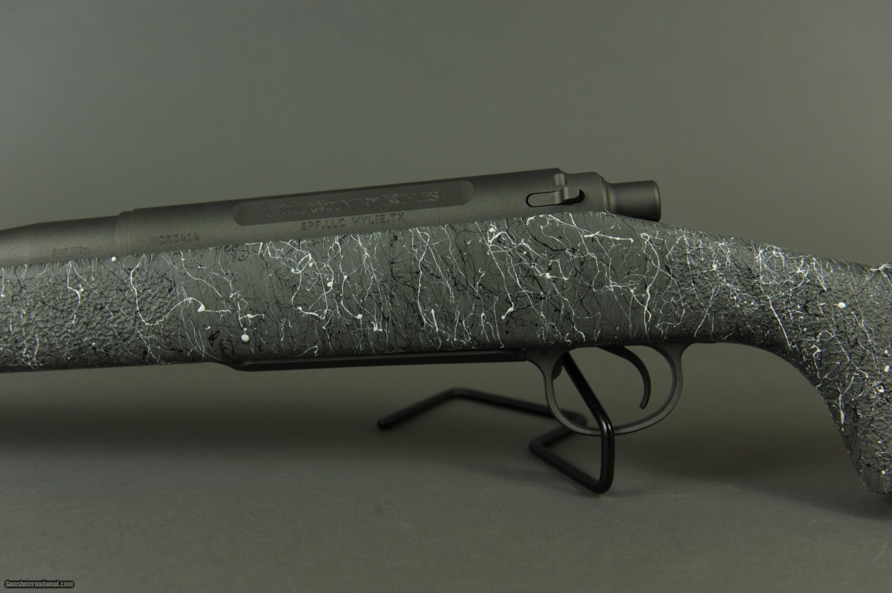 Description: Hill Country Rifle Long Range Hunter 300WM 24" Barrel **ACTUAL FIREARM PICTURED** Serial # HCR0414 *Stiller Predator SS action with fluted one-piece bolt and M-16 style extractor *Benchmark match grade, SS, #3 contour, 1:10 twist, 24" barrel with recessed target crown *Precision Stock Works Rifleman stock, standard LOP, one rear, one front sling stud *1" Pachmayr Decelerator recoil pad *HCR Accurizing with aluminum pillar and glass bedding *Timney trigger tuned to a crisp 2.75 pounds *Rust proof Graphite Black Cerakote finish on all metal surfaces *Barrel Break In Specifications