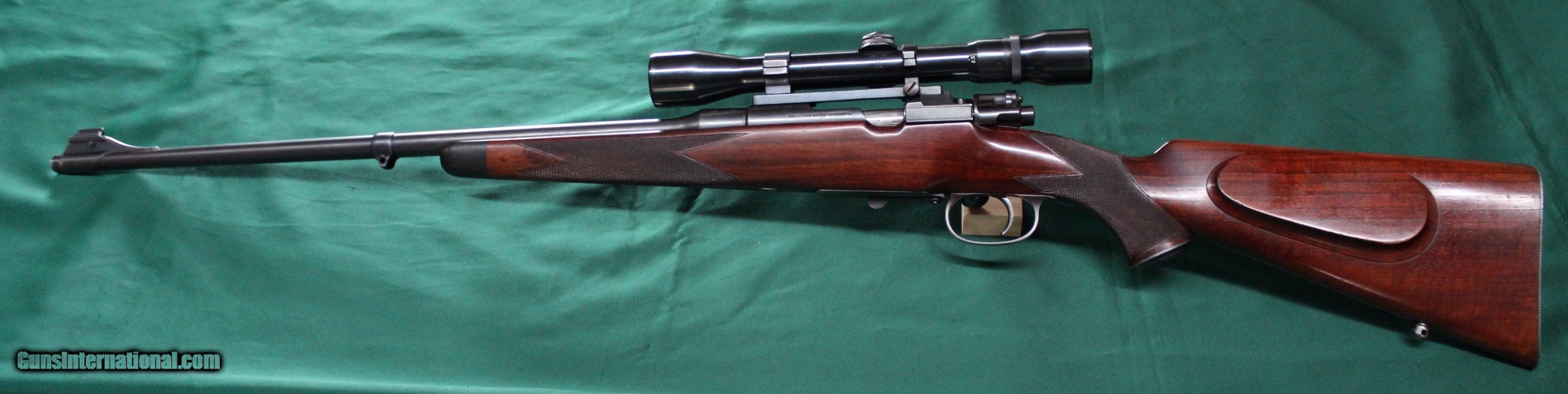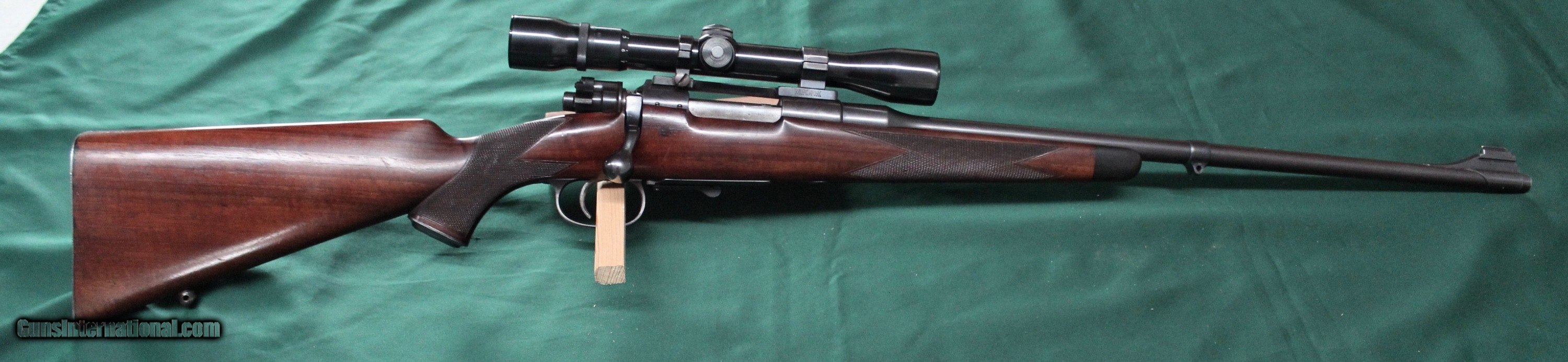 Description: SOLD Hoffman Custom Kurz Mauser in 250 Savage. Overall VG condition. Weaver 2 1/2 - 7 functions only from 2 1/2 - 4 power. ( I doubt if the scope is important here anyway). Good accurate rifle. Very nice Dubiel stock work. Shoots sub 1 inch groups at a 100 yards. Pleasant rifle to use. $9199.95 - Plus $75.00 Shipping to lower 48. AK & HI shipping: 2nd day air 225.00. WILL CONSIDER CASH OFFERS AND TRADE OFFERS ON SIMILAR RIFLES BY HOFFMAN, G&H, MAUSER, ECT. SOLD Rifle Caliber: .250-3000 Savage Manufacturer: Hoffman Arms Co Model: Kurz Serial Number: Non Visible Barrel Length: 22 Bore: VG Condition: VG Metal Condition: 90% Wood Condition: Excellent Bore Condition: VG Weight: 8 lbs. 6.4oz Sights: Scope Manufacture Date: 1930's Chokes: Full |