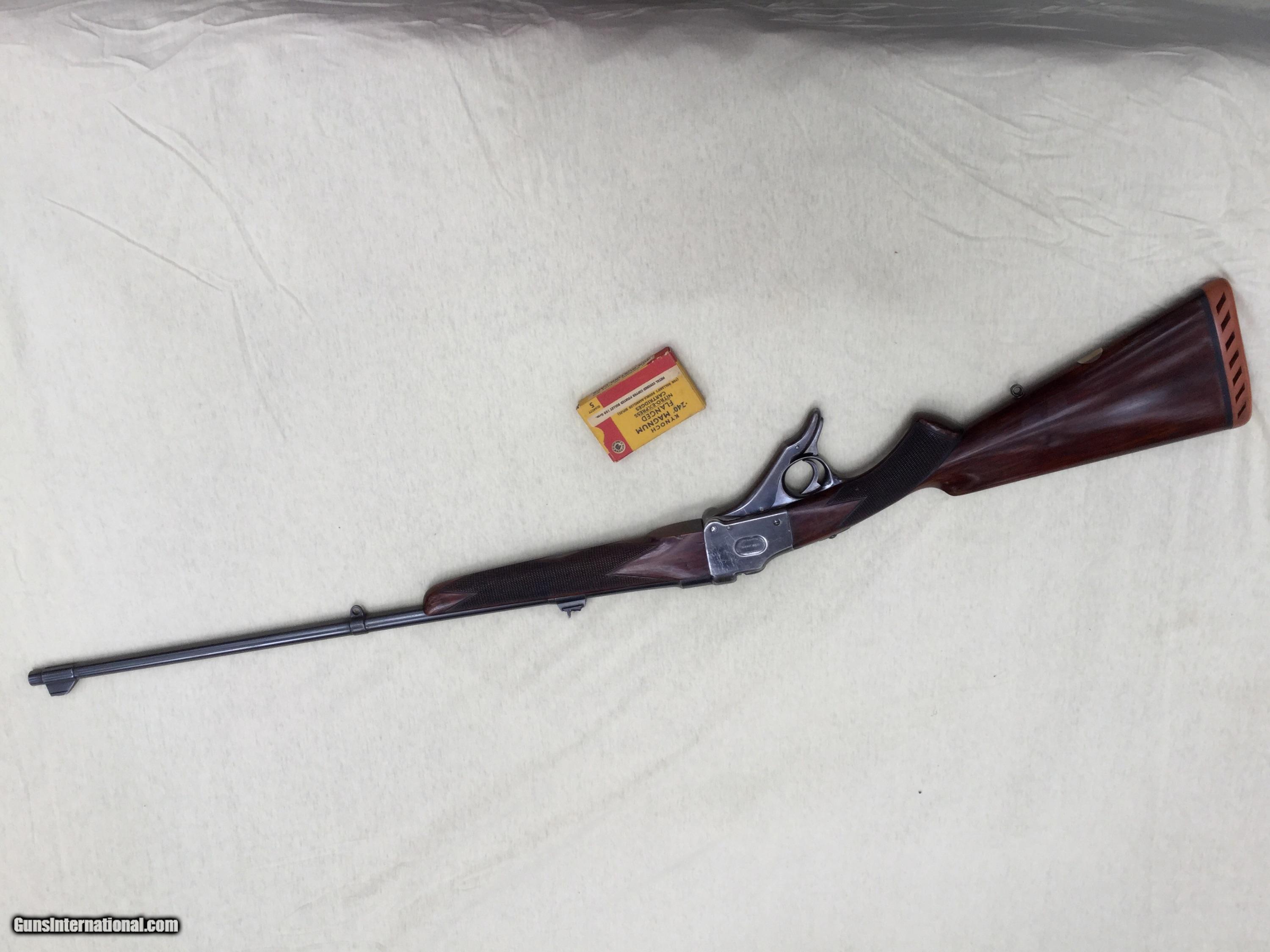 Description: Built on the rare small frame 1902 Webley falling block action chambered in Holland's proprietary small bore cartridge. Exc bore and mechanical. Metal finish is original and excellent, however the stock has been revarnished. Previous owner assured me the recoil pad is original, evidently an experimental effort by the maker. Included are RCBS reloading dies, 4 boxes of vintage ammo and a custom snap cap (necessary for this action). A hard to find little gem. SOLD Curio/Relic: Yes |
