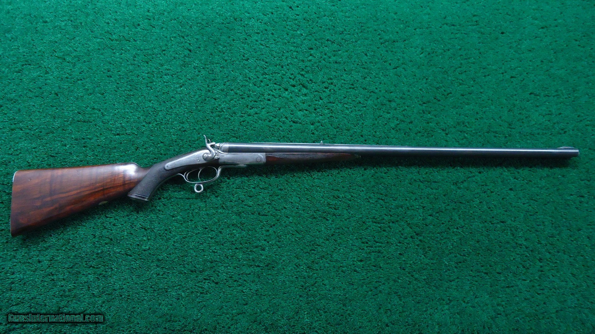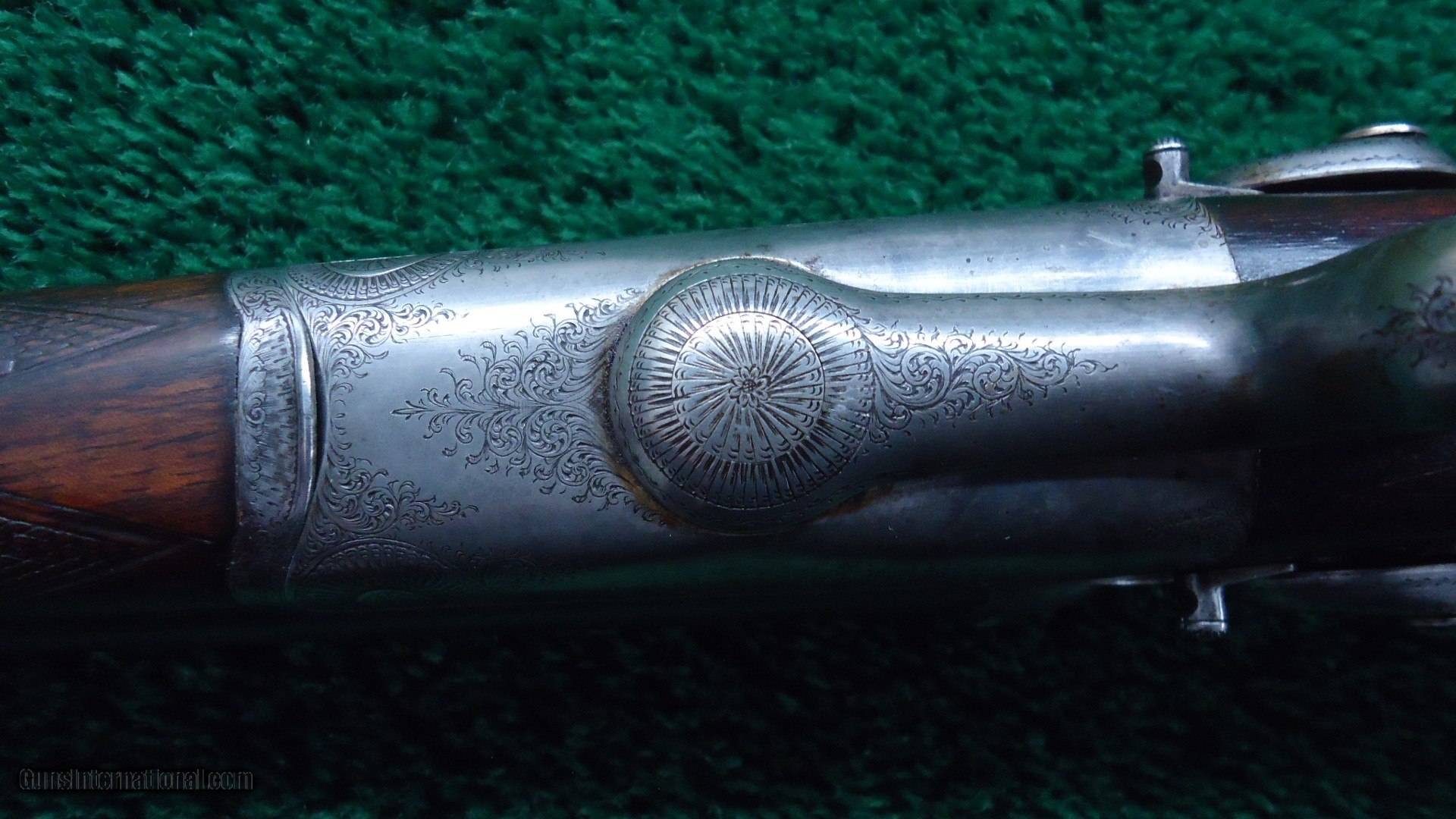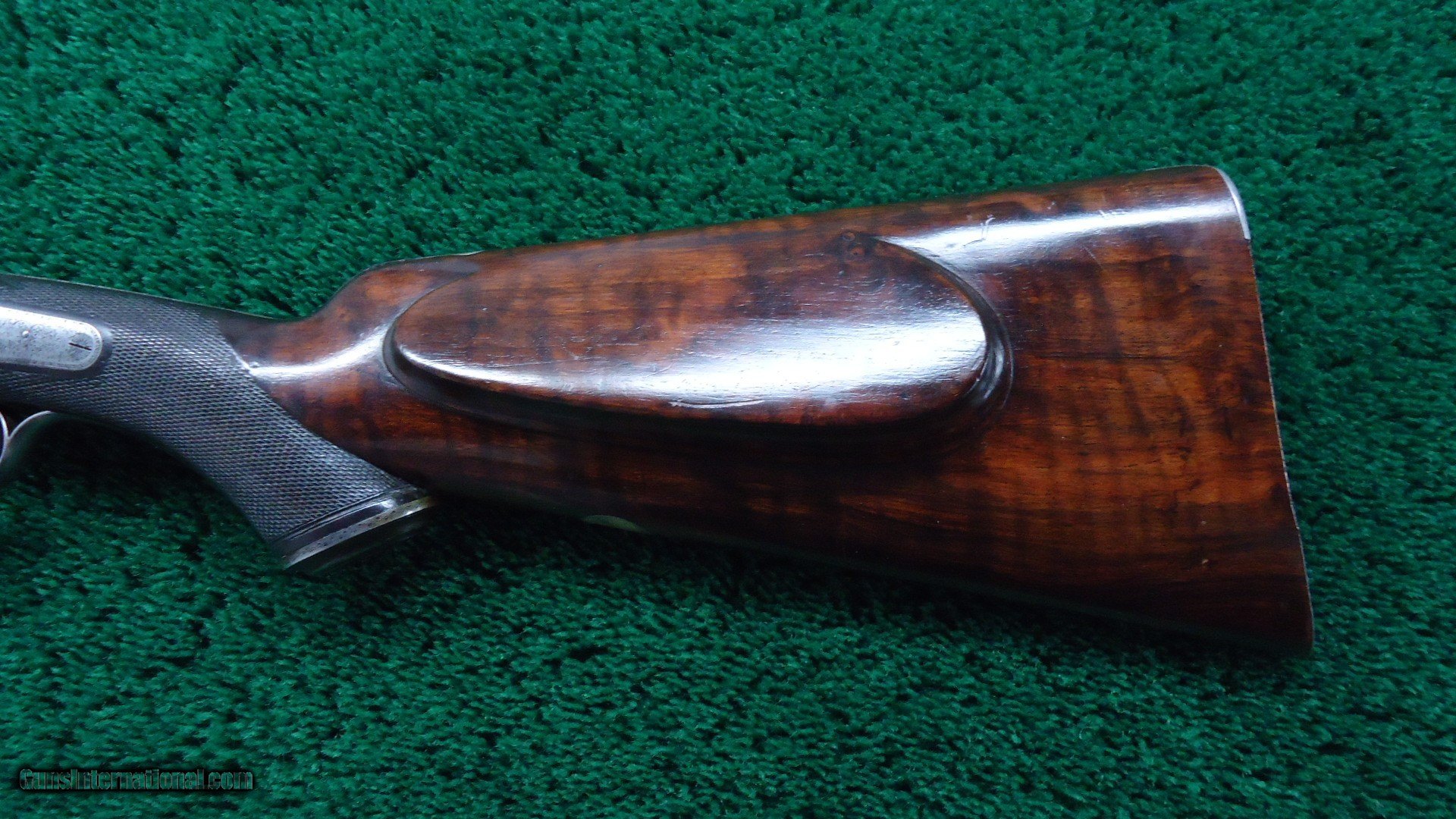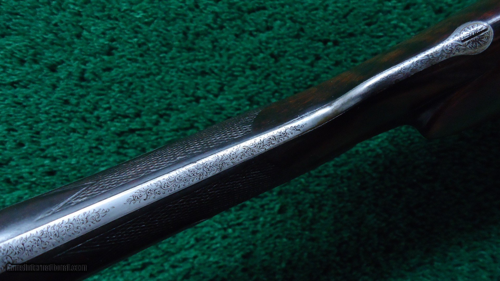 Description: Gun is in excellent condition features 26 inch barrels both with excellent bores that have bright and shiny with sharp crisp rifling. The barrel probably retains about 90% slightly fading blue. Original sights and features a under leaver opening device. It also has a checkered cheek piece and the wood is in excellent condition with good sharp checkering complete with a steel toed skeleton buttplate. The top action has an upper tang coming back to roughly the end of the stock that is nicely engraved and has safety locks. The metal contains about 60%-70% nice case colors showing off the engraving quite nicely. The gun comes complete with a letter from H&H stating all the guns features from manufacturer. And it comes in the H&H case that is in overall good shape. Leroy Merz Antique Firearms specializes in antique and vintage Winchesters and other fine American firearms. Since 1965 Mr. Merz has taken part in the world of firearms and has been a contributor to many well known reference books. We have hundreds of additional guns in every price range at our home online. Search for Merz Antiques in google. SOLD Antique: Yes |