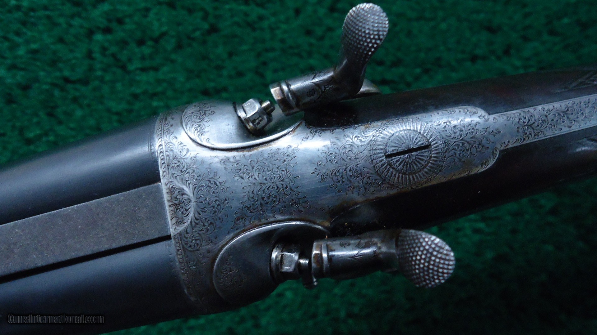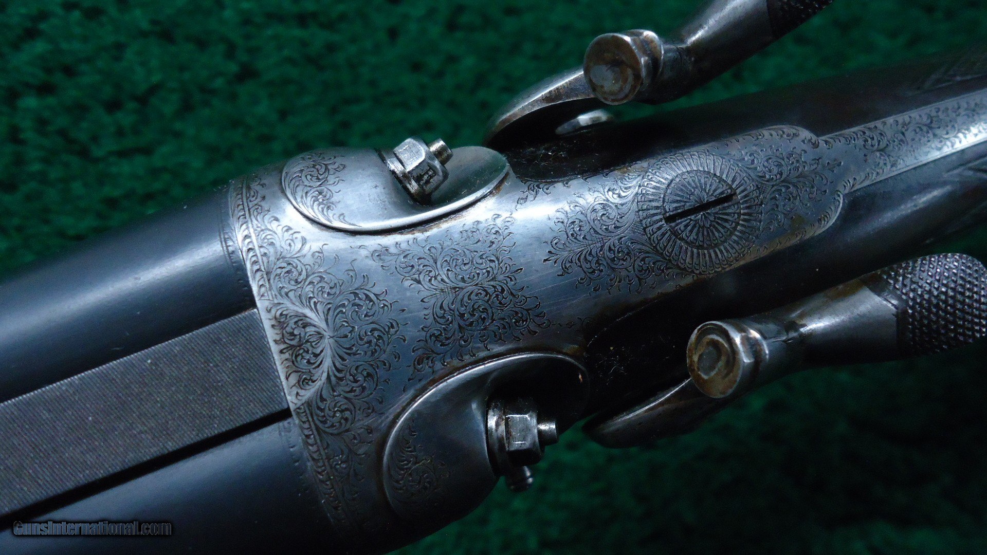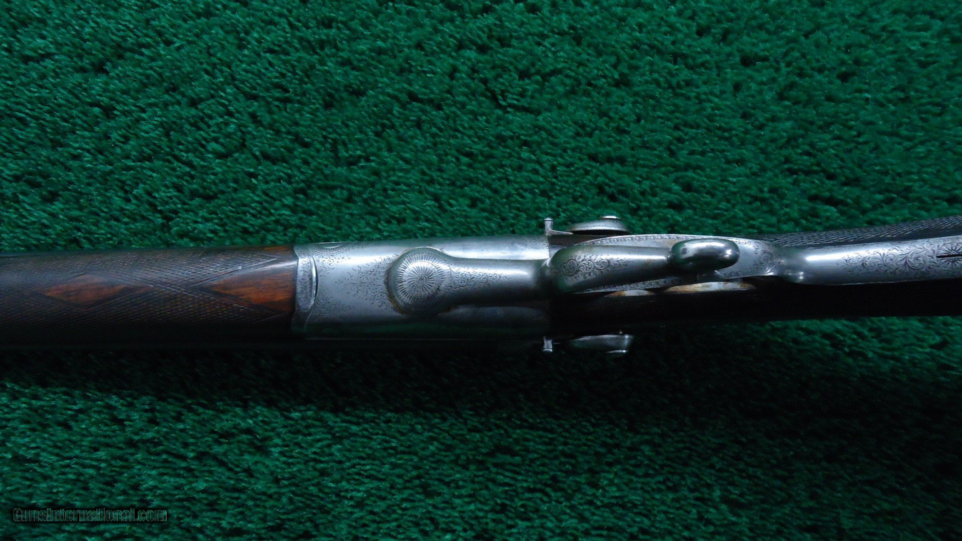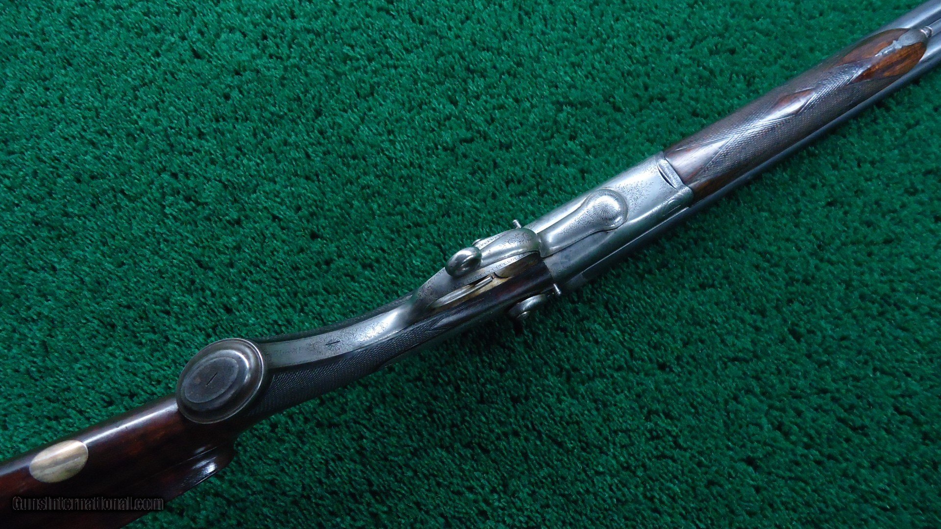 Description: Gun is in excellent condition features 26 inch barrels both with excellent bores that have bright and shiny with sharp crisp rifling. The barrel probably retains about 90% slightly fading blue. Original sights and features a under leaver opening device. It also has a checkered cheek piece and the wood is in excellent condition with good sharp checkering complete with a steel toed skeleton buttplate. The top action has an upper tang coming back to roughly the end of the stock that is nicely engraved and has safety locks. The metal contains about 60%-70% nice case colors showing off the engraving quite nicely. The gun comes complete with a letter from H&H stating all the guns features from manufacturer. And it comes in the H&H case that is in overall good shape. Leroy Merz Antique Firearms specializes in antique and vintage Winchesters and other fine American firearms. Since 1965 Mr. Merz has taken part in the world of firearms and has been a contributor to many well known reference books. We have hundreds of additional guns in every price range at our home online. Search for Merz Antiques in google. SOLD Antique: Yes |