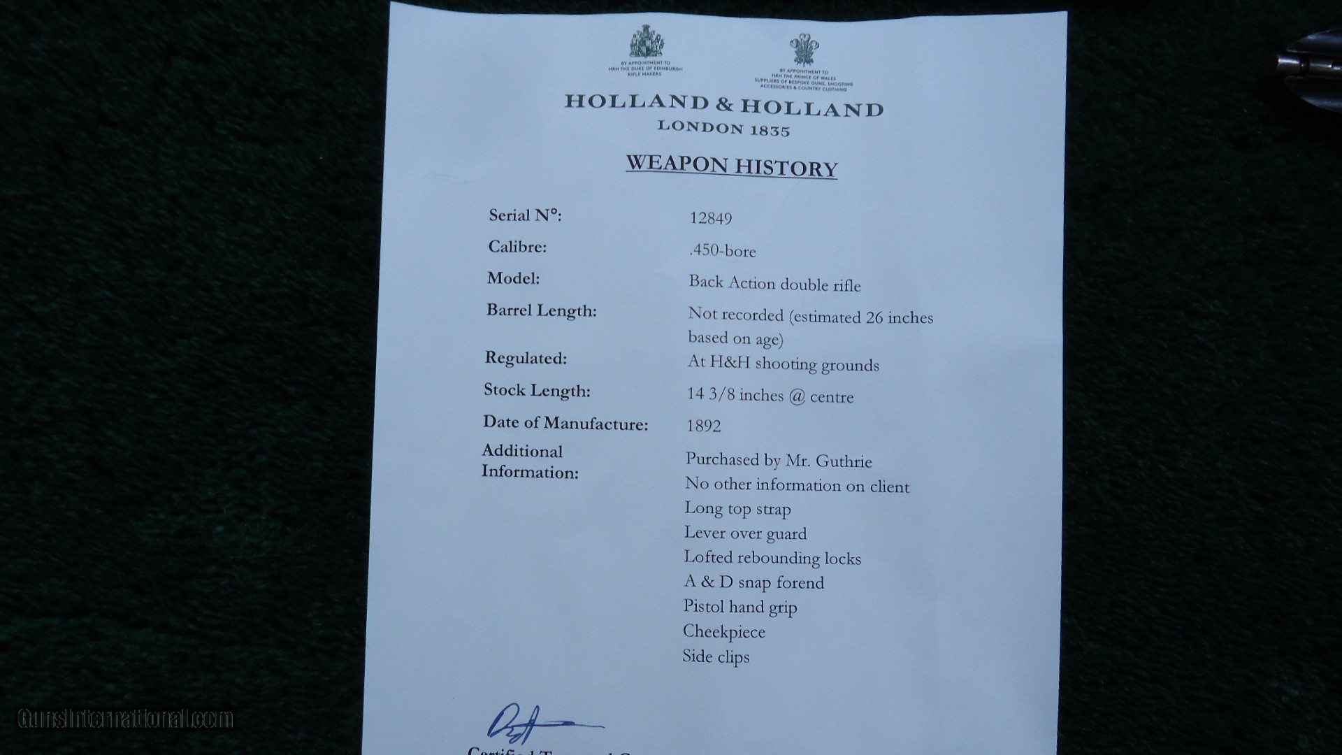 *Sale Pending* - CASED HOLLAND & HOLLAND DBL BARREL HAMMER RIFLE IN CAL 450