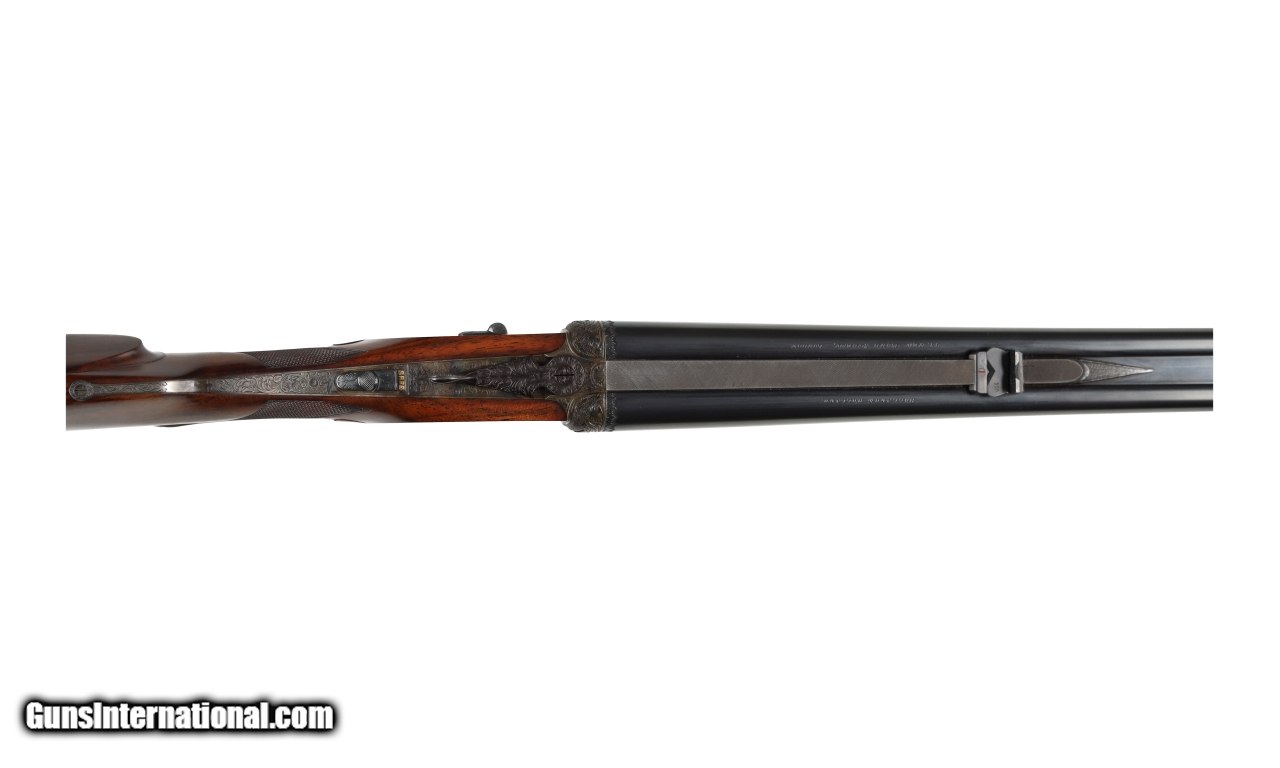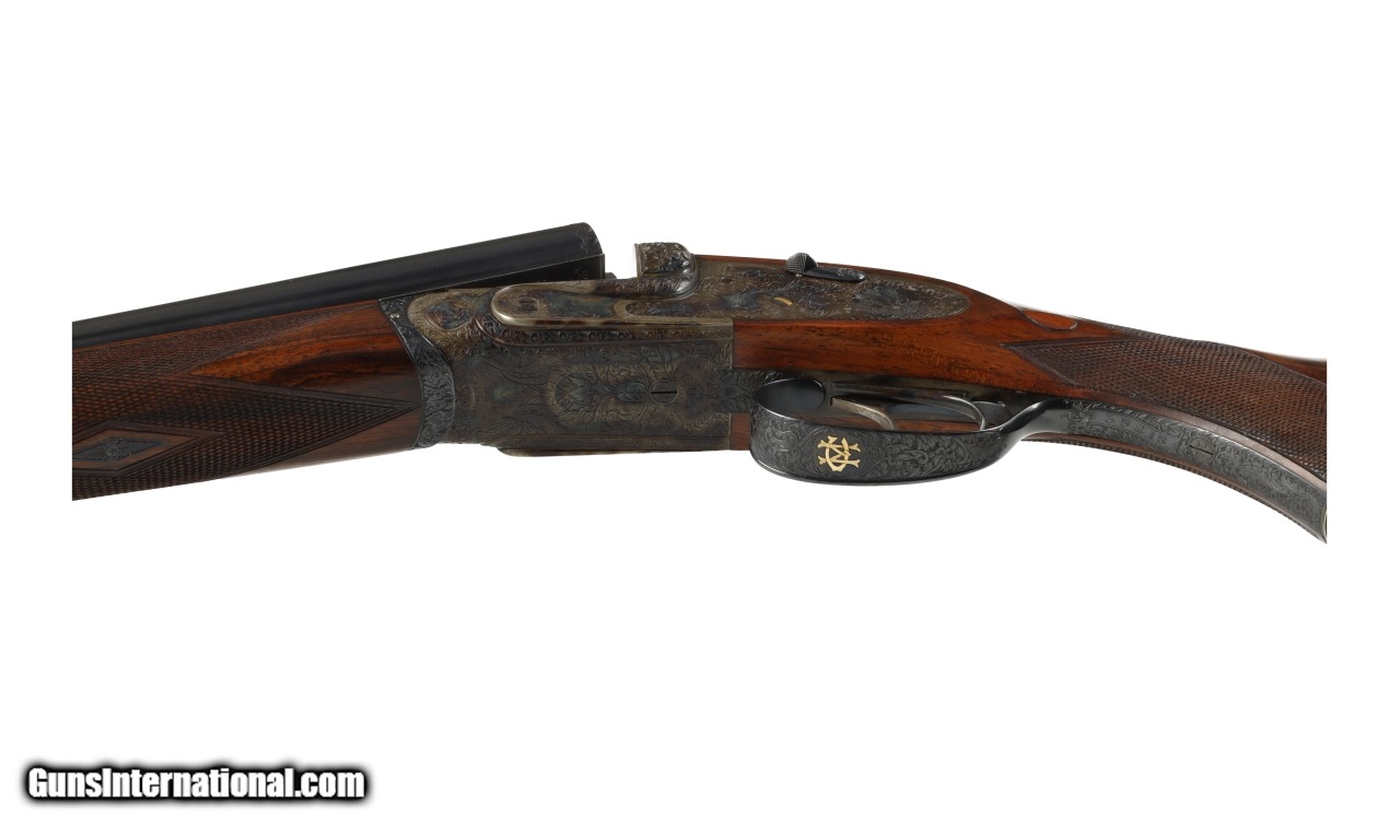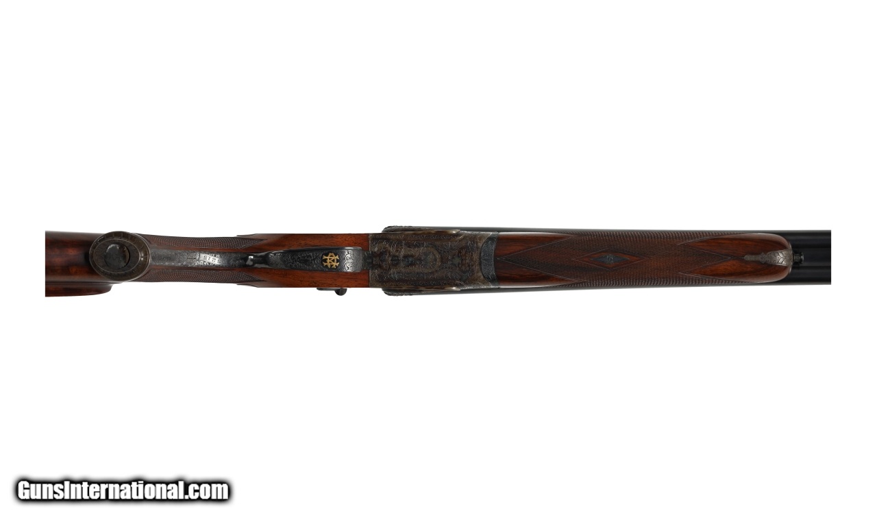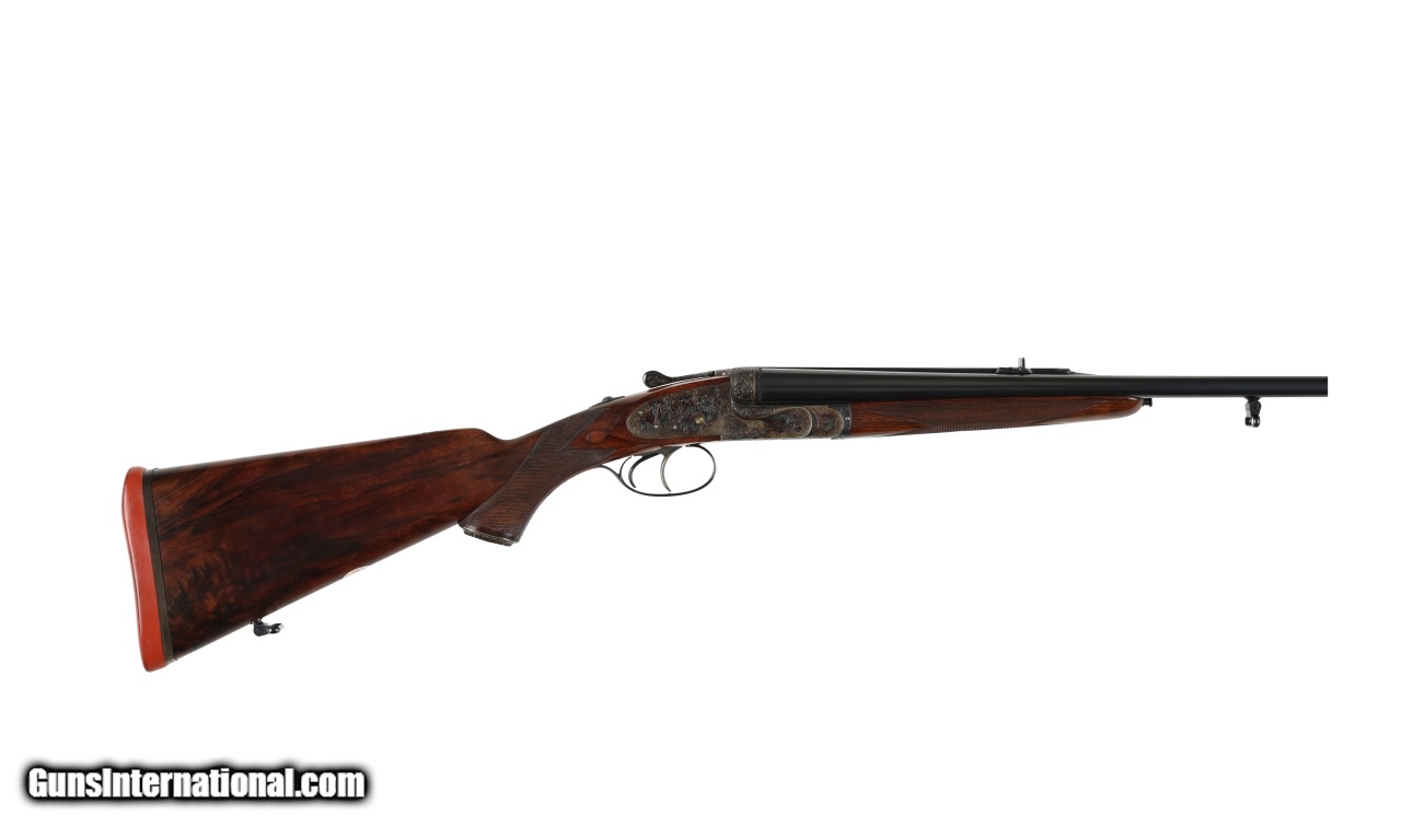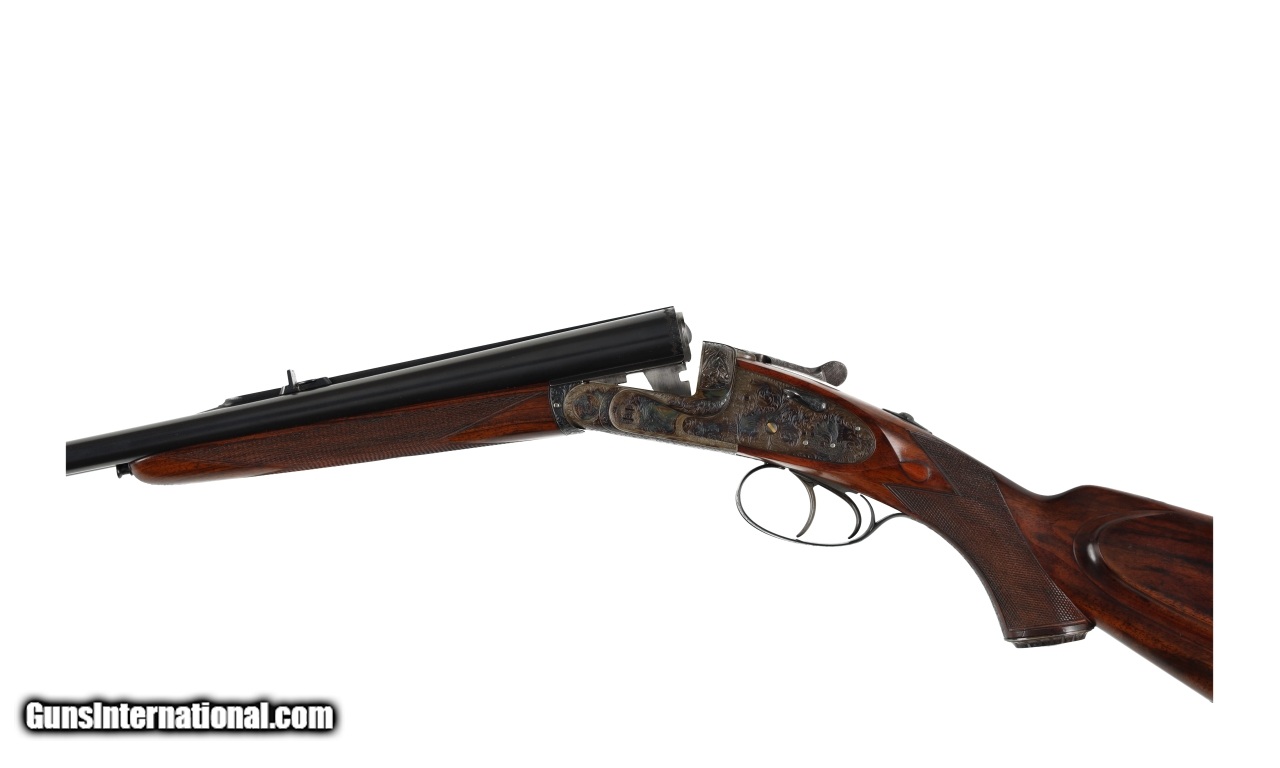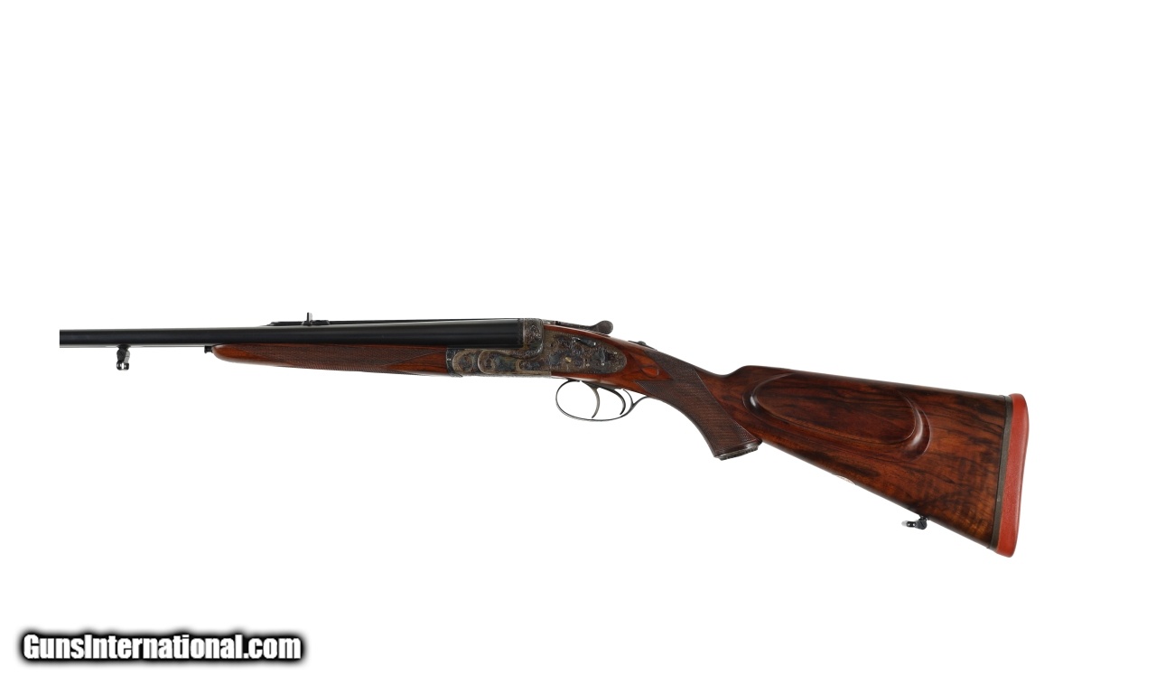 Description: Rifle is in very good condition. Butt pad has been compressed from cabinet storage. Manufactured in: England Hand: Right Hand Action Finish: Case Colored Metal Finish: Original Barrel Length: 25 Inches Barrel Condition: Very Good Stock Finish: Original Stock Condition: Very Good Type of Butt: Rubber Pad Pad Thickness: 1" Grip: Pistol Forend: Checkered SOLD Manufacturer: Holland & Holland Model: Deluxe Caliber Info: .375 Flanged Condition: Preowned Metal Condition: Very Good Action: Sidelock Triggers: Double Fore End: Checkered Butt Pad: 1 LOP: 14 1/2 Finish: Original Weight: 9 Case: Oak & Leather |
