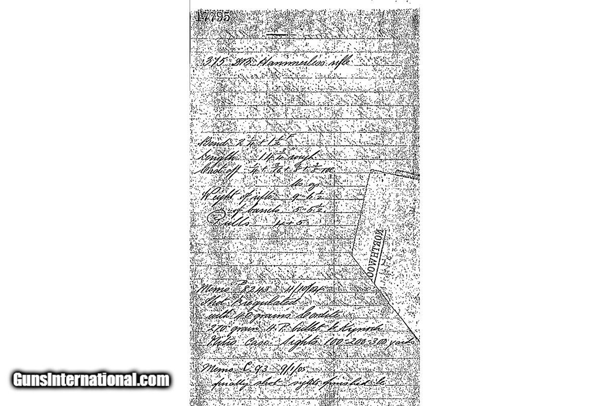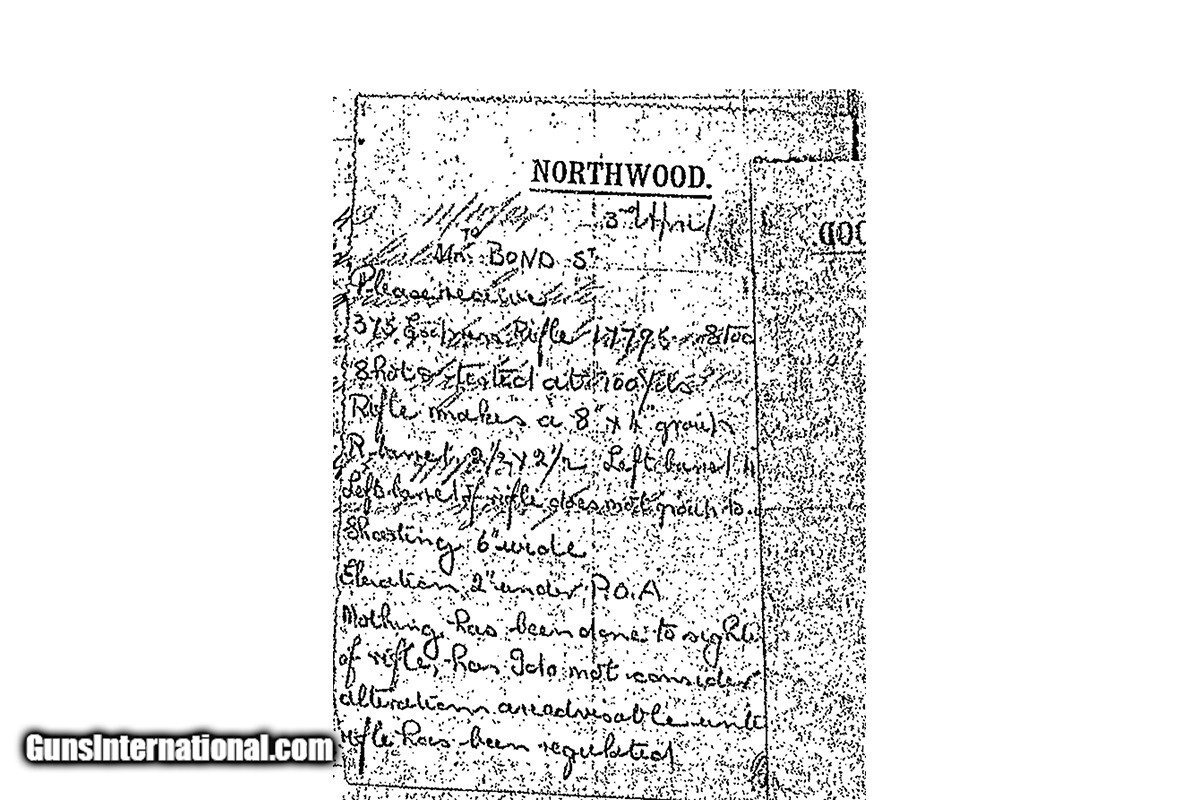 Description: 26" BARREL, QUARTER RIB, EXPRESS SIGHTS, DOUBLE TRIGGERS, FOLIATE SCROLL ENGRAVING, CASE COLOR HARDENED FINISH, 3RD FASTENER, BUSHED FIRING PINS, PISTOL HAND GRIP, ENGRAVED METAL CAP BOX, CHEEK PIECE, 15" LOP, LEATHER PAD, 9 LBS 2 OZ A Back-Action Sidelock H&H .375 Magnum (Not Flanged) Double Rifle. It has 26” ejector rifled barrels, Left barrel is marked ‘Winners Of All The “Field” Rifle Trials’, Rib has ‘Holland & Holland, London.’ in gold. Quarter rib with express rear sight - 1 standing (100 yds) and 2 folding leaves (200 & 300 Yds). Island base foresight with fold up night (moon) sight. Double triggers, An extended top strap over the comb, Bold foliate engraving with bright and vivid case colors, Holland & Holland name in gold on lock plates and ‘Safe’ in gold, Full length trigger guard tang to an engraved steel cap box, Best quality walnut stock has shadow line (beaded) cheek piece, Loops for sling, Drop points, Pistol grip, Splinter forend with Anson release, 15” LOP over a 1” leather pad, 9 Lbs. 2 Oz. The whole is presented in an Oak & Leather case with brass corners, it has turnscrews, chamber brush, snap caps, 2 oil bottles.