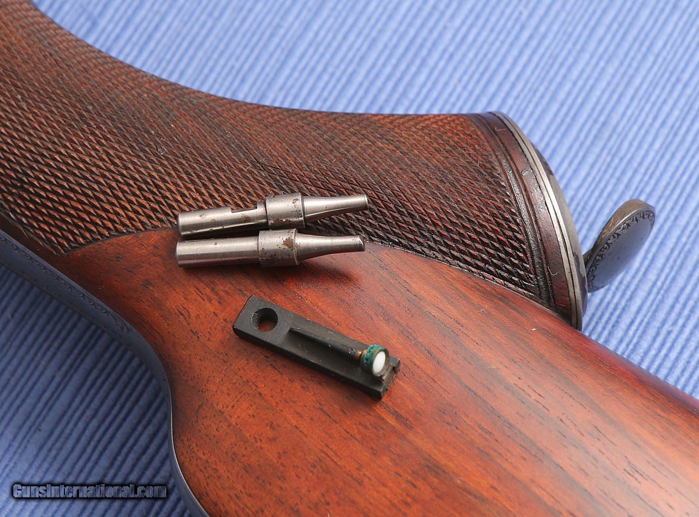 Description: #19073, Holland & Holland, 98 New Bond Street, London, Back Action Dominion Grade Sidelock Non-Ejector 500/450 Nitro Express - 26" Chopper Lump barrels with a rib extension third bite, London proved at 70 cordite & 480 grain bullet, A second front sight was made and tested for 70 Cordite & 365 grain bullet, Also Spare set of firing pins is provided. LOP 14-5/8, Weight 10 lbs. 12 oz. Bore is Excellent Plus with Sharp Rifling the Entire Way. Shipping to CONUS included. PLEASE SEE MY OTHER LISTINGS - I will consider trades on any item, and I am not averse to paying if your trade is more valuable than my listed item. Three day inspection always honored. All Federal and State laws apply. No credit cards. Any Tennessee buyer will have to arrange for transfer through another dealer who will have to collect sales tax on the transaction. PLEASE NOTE THE FOLLOWING: No credit cards. I do not have a retail business location. Therefore, any Tennessee buyer will have to arrange for transfer through another dealer, and will have to pay SALES TAX on the transaction. SOLD Curio/Relic: Yes |