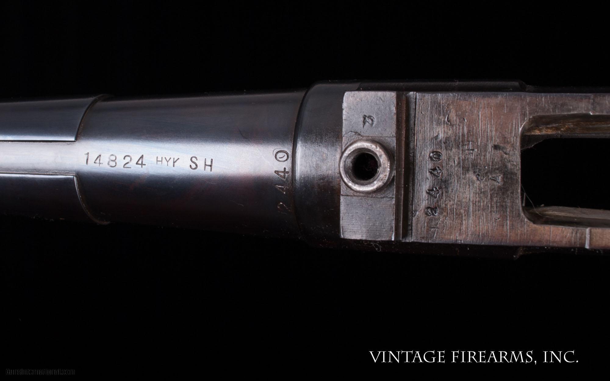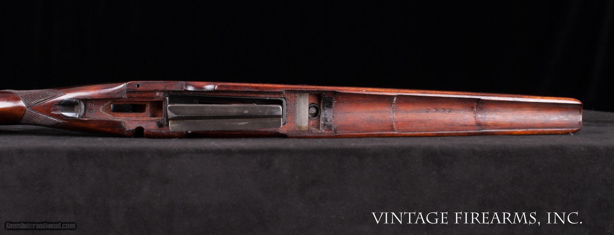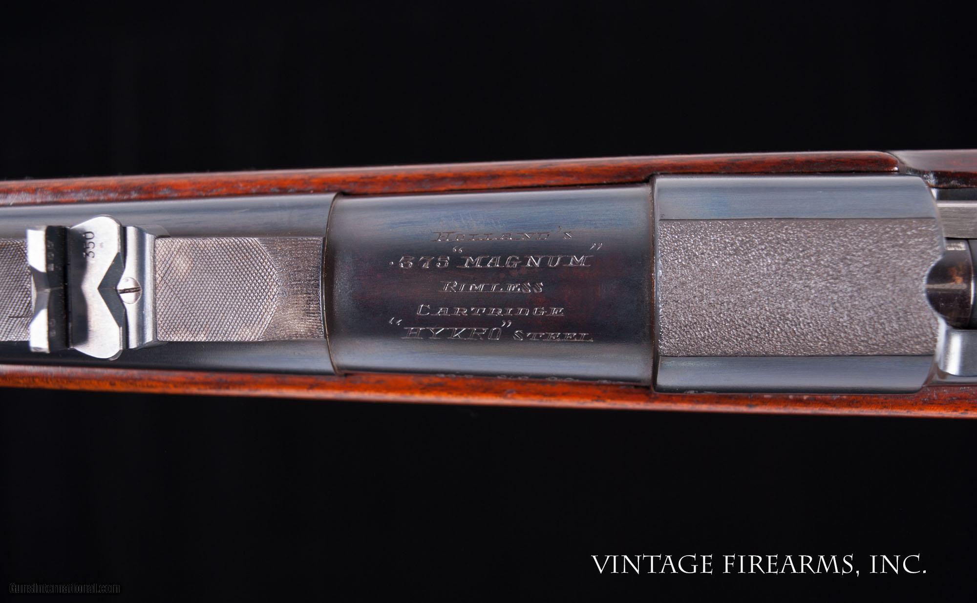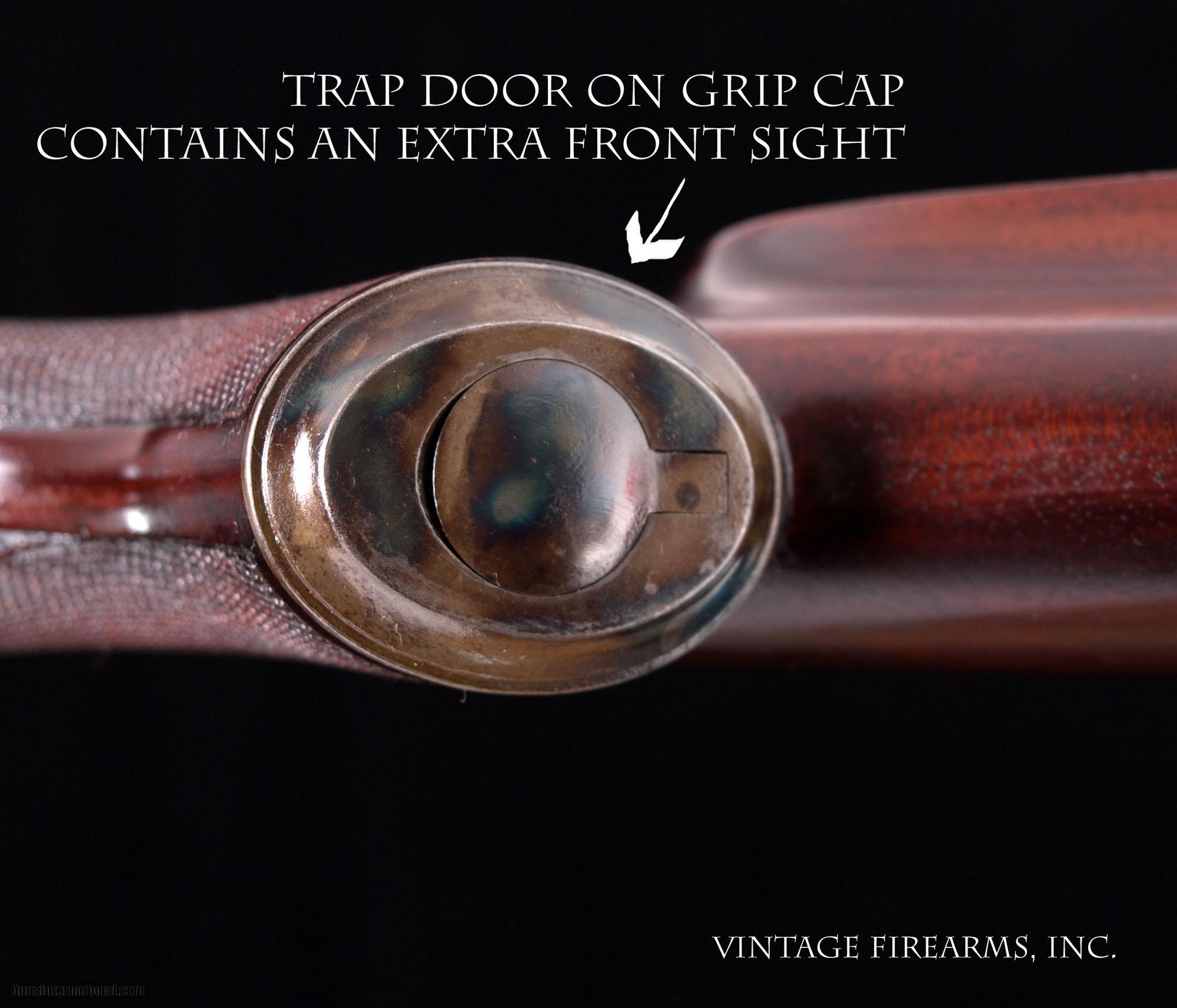 Description: Holland & Holland Magazine Rifle .375 Magnum TAKEDOWN, DOCUMENTED, MAUSER ACTION, 99% General Specs: Holland & Holland, Year 1955, .375 Rimless Magnum, 8lbs 2oz, Bolt Rifle Serial Number: 2440 What a privilege to be able to bring to market a near new Holland & Holland Magazine Sporting Rifle built in 1955 on a Mauser action complete with full factory documentation, original factory leather case, accessories, and in near new condition. This fine rifle, sn2440, chambered for the world renowned .375 Holland & Holland Magnum Rimless cartridge, is the epitome of class and prestige in the world of dangerous game and hunting the dark continent. Equally at home in pursuit of North America’s largest game animals, including the great bears, moose, and elk, this rifle is one of a very small number built as a “take-down” style rifle so that it may travel in the beautiful leather case that H & H made specifically for this gun. This is a highly desirable rifle and in beautiful, factory original condition with only the slightest amount of wear on the gun, including the expanded magazine 4 cartridge capacity floor plate. The gun shows little to no use, and is essentially as new in all ways. The factory pad is rock hard and if you would like we will install a genuine Silvers pad from England on the gun so the recoil pad is functional. We have the exact same pad as the original in stock. There have been no alterations to the gun since it left the factory. The factory supplied leather case is in excellent condition and comes with what looks to be a Huey Case Co. protective canvas cover. The factory supplied cleaning accessories, maker’s label, cartridge charge cards, etc. are all intact and in the case. The top exterior of the case is embossed with the original owner’s name “Major J.G. Defina”. We are offering this treasure at a very affordable price considering its pristine condition, desirable features, and today’s replacement costs. Thanks for looking! Barrels Barrel Length: 24" Hykro steel Chokes: factory Bores: mint bore Bore Diameter: 0.375 % Blue: 99% factory original Sights: 1 standing; 1 folding rear Action Action: converted Militry mauser Case Color: screws and grip cap Screws: excellent Trigger Type: single, crisp Trigger Guard Color: 99.5% factory Stock Type: dark European walnut LOP: 14 5/8" LOP To End Of Wood: 13 3/4" DAH: 2 5/8" DAC: 1 5/8" Cast: 5/16" off Checkering Condition: excellent factory Butt Treatment: silvers pad rock hard ****There are more photos upon request. We have closeups of all the interior metal and wood of the rilfe when it is taken apart, in addition to closeups of interior of case, etc. Please email us to request the full round of photos.***** We offer a 30 day mechanical warranty on this fine shotgun. Call us for full details. PLEASE SEE MY OTHER FINE VINTAGE FIREARMS. Just open one of my ads and click on the line that says “see all items from this seller” and a very nice list of fine sporting and collectible arms will appear. I have many more fine sxs shotguns not yet listed. Thanks for looking! We employ a full time gunsmith on premises and can perform alterations to suit your needs within a few weeks of purchase. Payment Methods: Money Order, Certified Check, Personal Check, Wire Transfer Inspection Period / Return Policy: Three Days from the date the item was received. Sales Tax: 6% Michigan Only Shipping & Insurance: Ground $160.00 We ship internationally! Item Condition: Used Requires FFL?: Yes If you have any questions about this item or payment, please email or call us directly, at #616-292-6240. Thanks! Jay Shachter, Vintage Firearms, Inc We employ a full time gunsmith on premises and can perform alterations to suit your needs within a few weeks of purchase. Common requests are: -stock bending to suit your particular requirements -addition of any specified butt pad to increase length of pull -alteration of chokes to suit your shooting preferences -lengthening of chambers and forcing cones -darkening stock color with penetrating stains -restoring any part of the gun including rust blue, charcoal blue, bone and charcoal case color, wood restoration and checkering recuts. If you like one our guns but it needs "tweaked", let us know and we can quote you a time and price. Some enthusiasts like the guns "as found" and others want them "just so". We often list guns as found and let the particular buyer choose how they want their gun to fit or look. SOLD Curio/Relic: Yes |